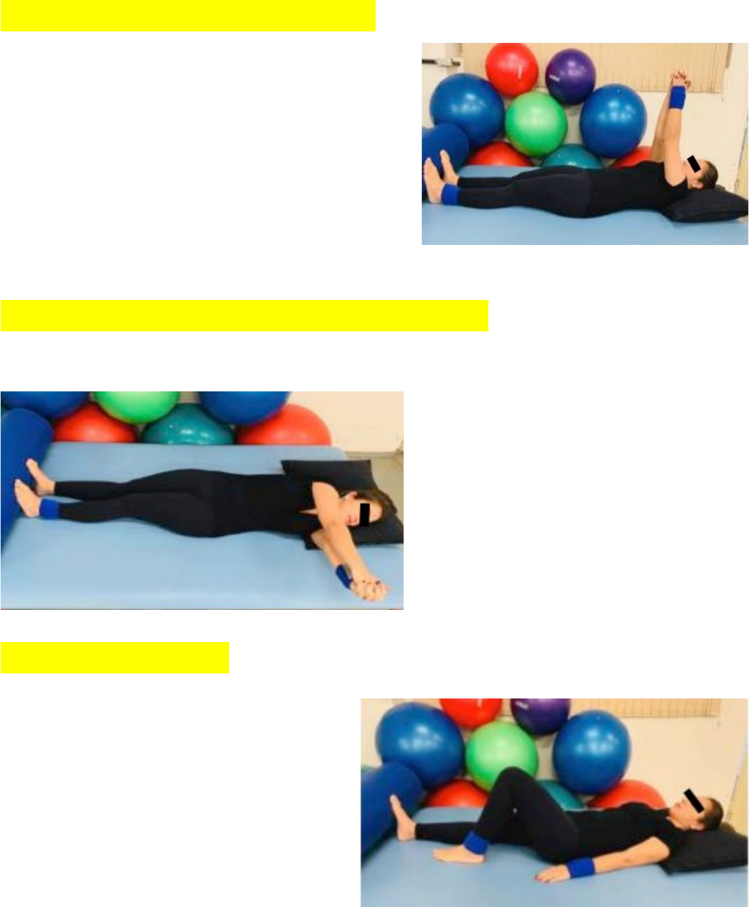 CARTILHA DE EXERCÍCIOS DOMICILIAR PÓS-AVE. Está cartilha constam orientações para exercícios Pós-Acidente Vascular Encefálico (AVE), popularmente conhecido como "AVC" ou "derrame". apresenta, além de outras sequelas, algum déficit sensorial. BRAÇOS PARA CIMA E PARA BAIXO Execução: Na posição deitada entrelace os dedos das mãos e estique os cotovelos (o braço não acometido irá auxiliar o braço afetado). Leve as mãos no sentido da cabeça e depois no sentido dos pés mantendo os cotovelos esticados. Repetições: 5 vezes/ Tempo de descanso: 1 minuto. BRAÇOS PARA A UM LADO E PARA O OUTRO Execução: Na posição deitada entrelace os dedos das mãos e estique os cotovelos (o braço não acometido irá auxiliar o braço afetado). Leve as mãos para o lado direito e depois para o lado esquerdo, mantendo os cotovelos esticados. Repetições: 5 vezes/ Tempo de descanso: 1 minuto. DOBRAR OS JOELHOS Execução: Na posição deitada dobre o joelho o máximo que conseguir sem tirar o calcanhar da cama e depois estique. Repetições: 5 vezes/ Tempo de descanso: 1 minuto. ESTICAR OS JOELHOS Execução: Na posição deitada com um travesseiro ou rolo embaixo do joelho, estique o joelho o máximo que conseguir depois volte à posição inicial. Repetições: 5 vezes/ Tempo de descanso: 1 minuto. - Faça o mesmo com a outra perna. DOBRAR O QUADRIL Execução: Na posição deitada, tente encostar o joelho no peito, o máximo que conseguir depois volte à posição inicial. Repetições: 5 vezes/ Tempo de descanso: 1 minuto. - Faça o mesmo com a outra perna. ABRIR AS PERNAS Execução: Na posição deitada com o joelho esticado, abra e feche a perna sem levantá-la do colchão. Repetições: 5 vezes/ Tempo de descanso: 1 minuto. - Faça o mesmo com a outra perna. PONTE Execução: Na posição deitada com os joelhos dobrados, levante o quadril o máximo que consegui e volte à posição inicial. Repetições: 5 vezes/ Tempo de descanso: 1 minuto. GIRAR O CORPO Execução: Na posição sentada cruze os braços segurando os cotovelos com as mãos. Gire o corpo para direita e para a esquerda sem tirar o quadril da superfície de apoio (o braço não acometido irá auxiliar o braço afetado). Repetições: 5 vezes/ Tempo de descanso: 1 minuto. ESTICAR AS PERNAS Execução: Na posição sentada em uma cadeira e com os pés apoiados no chão, estique o joelho o máximo que conseguir, sem levantar a coxa da cadeira. Repetições: 5 vezes/ Tempo de descanso: 1 minuto. - Faça o mesmo com a outra perna. DOBRAR AS PERNAS Execução: Na posição sentada em uma cadeira e com os pés apoiados no chão, dobre a perna tentando encostar o joelho no peito, levantando a coxa da cadeira. Repetições: 5 vezes/ Tempo de descanso: 1 minuto. - Faça o mesmo com a outra perna. SENTAR E LEVANTAR Execução: Para este exercício será necessário um bastão ou cabo de vassoura e ajuda de outra pessoa. A partir da posição sentada em uma cadeira levante e sente. Repetições: 3 vezes consecutivas de maneira lenta e segurando com as 2 mãos no bastão a sua frente. Tempo de descanso: 1 minuto. UM PÉ NO CHÃO Execução: Para este exercício será necessário um bastão ou cabo de vassoura e ajuda de outra pessoa. - Na posição em pé, segure no bastão com as 2 mãos e levante a perna. Com a perna levantada, conte devagar até 5. Repetições: 5 vezes/ Tempo de descanso: 1 minuto. - Faça o mesmo com a outra perna. REFERÊNCIA: • UNIVERSIDADE FEDERAL DE UBERLÂNDIA. Manual de orientações pós-AVC Disponível no link: Acessado no dia: 03 de setembro de 2022. https://avc.org.br/wp-content/uploads/2021/08/Manual-de-cuidados-pos-AVC-Fisio-UFU.pdf https://avc.org.br/wp-content/uploads/2021/08/Manual-de-cuidados-pos-AVC-Fisio-UFU.pdf