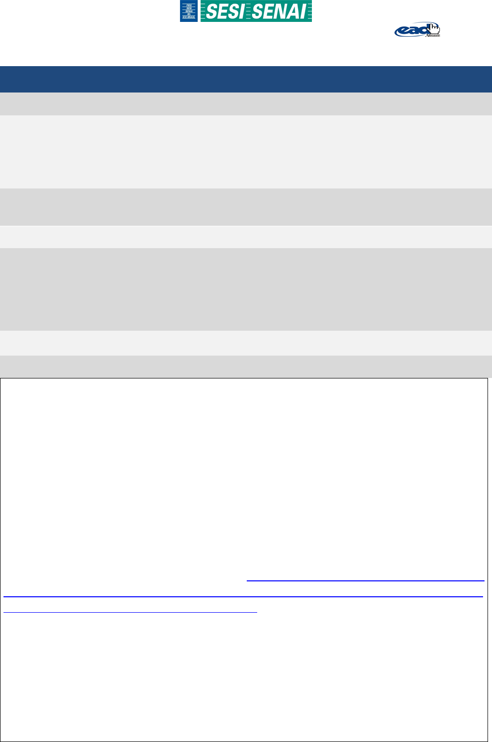 Núcleo Integrado SESI/SENAI de Educação a Distância – NiEAD SITUAÇÃO DE APRENDIZAGEM (SAP) 03 Curso: Técnico em Segurança do Trabalho Modalidade: Educação a Distância Unidade Curricular 7: Planejamento e Execução de Ações Educativas Módulos: ( ) Básico ( ) Específico I ( X ) Específico II ( ) Específico III ( ) Específico IV Estratégia da situação de aprendizagem: (X) Situação - Problema ( ) Projeto ( ) Pesquisa ( ) Estudo de Caso Título da situação de aprendizagem: Situações de risco! O que fazer? (parte 3). Capacidades Técnicas: Correlacionar os itens exigidos na legislação, normas e notas técnicas com as capacitações a serem planejadas; agrupar as funções de acordo com a necessidade de treinamento; reconhecer legislação, e normas e notas técnicas aplicáveis ao ramo de atuação e ou atividade do local; estabelecer treinamentos e metodologias apropriadas ao perfil educacional dos trabalhadores da empresa; identificar os programas de treinamento estabelecido pela empresa. Objetivo: Esta situação de aprendizagem foi construída para identificar Normas Regulamentadoras, conforme os treinamentos que devem ser realizados para cada função exercida na empresa. Descritivo da atividade desafiadora, contextualizada, com suas especificações técnicas: Prezado estudante, Depois de conhecer e compreender as etapas do Programa de Treinamento, bem como outras ações educativas e ainda solucionar problemas relacionados aos treinamentos em saúde e segurança do trabalho, onde você atua como Técnico em Segurança do Trabalho na empresa Alimentos Alu, a direção da empresa solicitou que faça uma relação dos treinamentos e/ou capacitações obrigatórios, de modo que possam ser inseridas no planejamento de atividades, a fim de atender as Normas Regulamentadoras. Para resolver esta demanda, inicialmente você consultou o departamento de recursos humanos da empresa e obteve a Tabela de Cargos (Figura 1) que apresenta o cargo e suas respectivas funções. Com base nessas informações, você deverá acessar as Normas Regulamentadoras (NR) por meio do site: https://www.gov.br/trabalho-e-previdencia/pt- br/composicao/orgaos-especificos/secretaria-de-trabalho/inspecao/seguranca-e-saude-no- trabalho/ctpp-nrs/normas-regulamentadoras-nrs. https://www.gov.br/trabalho-e-previdencia/pt-br/composicao/orgaos-especificos/secretaria-de-trabalho/inspecao/seguranca-e-saude-no-trabalho/ctpp-nrs/normas-regulamentadoras-nrs https://www.gov.br/trabalho-e-previdencia/pt-br/composicao/orgaos-especificos/secretaria-de-trabalho/inspecao/seguranca-e-saude-no-trabalho/ctpp-nrs/normas-regulamentadoras-nrs https://www.gov.br/trabalho-e-previdencia/pt-br/composicao/orgaos-especificos/secretaria-de-trabalho/inspecao/seguranca-e-saude-no-trabalho/ctpp-nrs/normas-regulamentadoras-nrs Núcleo Integrado SESI/SENAI de Educação a Distância – NiEAD Figura 1 – Tabela de cargos da empresa Alimentos Alu. Após fazer as leituras do conteúdo no Ambiente Virtual de Aprendizagem (AVA) pertinentes a essa atividade e acessar o site, você realizará a Etapa 1. Etapa 1 Pesquisar nas Normas Regulamentadoras quais os treinamentos e capacitações que são obrigatórios para cada função apresentada na Figura 1. Em seguida, preencher a Tabela de Treinamentos e Capacitações (Folha Resposta_SAP 3): ▪ Norma Regulamentadora consultada; ▪ Carga horária; ▪ Periodicidade; ▪ Carga horaria da reciclagem; ▪ Profissionais que podem ministrar os cursos. Esta etapa será postada no AVA. Bons estudos!
