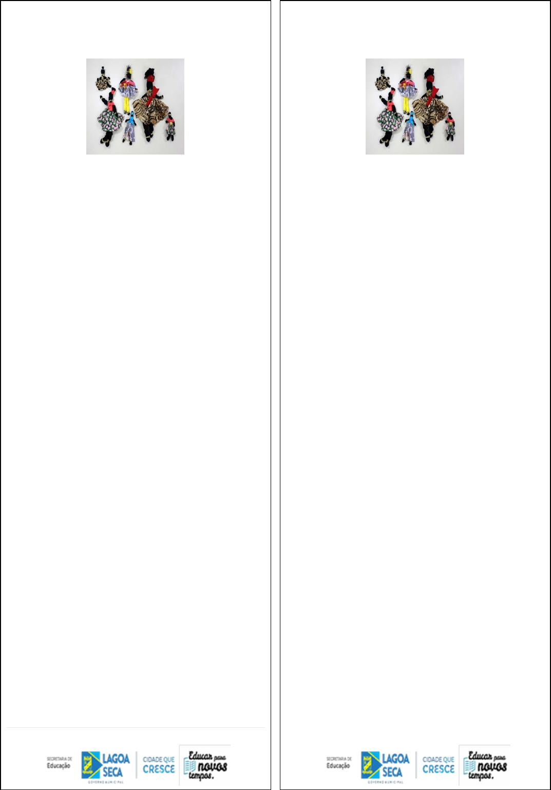 BONECA ABAYOMI A emocionante história das crianças nos navios negreiros Durante a época da escravatura, os escravos que eram transportadas nos navios, da África para o Brasil, eram submetidos a verdadeiras torturas. As mães negras encontravam na confecção das bonecas uma solução para acalmar o choro de seus filhos, que choravam assustadas, porque viam a dor e o desespero dos adultos. As mães escravas então, rasgavam tiras de pano de suas saias e faziam bonecas com elas para as crianças brincarem. Essas bonecas são chamadas de Abayomi. As Abayomi são pequenas bonecas pretas, feitas de pano e sem costura alguma, apenas com nós ou tranças. A boneca Abayomi valoriza a cultura africana, contribui para o reconhecimento da cultura afro-brasileira e também contribui no combate ao preconceito. A palavra Abayomi significa: encontro feliz, ou encontro precioso, aquele que traz felicidade e alegria. Quando você dá uma boneca Abayomi para alguém, esse gesto significa que você está oferecendo o que você tem de melhor para essa pessoa. A palavra Abayomi, do ioruba, significa aquele que traz felicidade e alegria. Quer dizer encontro precioso: abay = encontro e omi = precioso Desejamos muitas abayomis(feliz encontro) para você! Ciclo de Alfabetização- Elis Basilio BONECA ABAYOMI A emocionante história das crianças nos navios negreiros Durante a época da escravatura, os escravos que eram transportadas nos navios, da África para o Brasil, eram submetidos a verdadeiras torturas. As mães negras encontravam na confecção das bonecas uma solução para acalmar o choro de seus filhos, que choravam assustadas, porque viam a dor e o desespero dos adultos. As mães escravas então, rasgavam tiras de pano de suas saias e faziam bonecas com elas para as crianças brincarem. Essas bonecas são chamadas de Abayomi. As Abayomi são pequenas bonecas pretas, feitas de pano e sem costura alguma, apenas com nós ou tranças. A boneca Abayomi valoriza a cultura africana, contribui para o reconhecimento da cultura afro-brasileira e também contribui no combate ao preconceito. A palavra Abayomi significa: encontro feliz, ou encontro precioso, aquele que traz felicidade e alegria. Quando você dá uma boneca Abayomi para alguém, esse gesto significa que você está oferecendo o que você tem de melhor para essa pessoa. A palavra Abayomi, do ioruba, significa aquele que traz felicidade e alegria. Quer dizer encontro precioso: abay = encontro e omi = precioso Desejamos muitas abayomis(feliz encontro) para você! Ciclo de Alfabetização – Elis Basilio