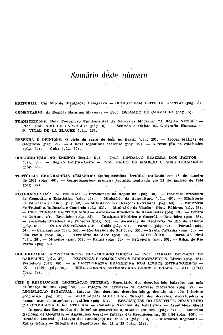 ·de março de 1944 (pág. 73). - íntegra da legislaçãu de interêsse geográfico (pág. 77). -