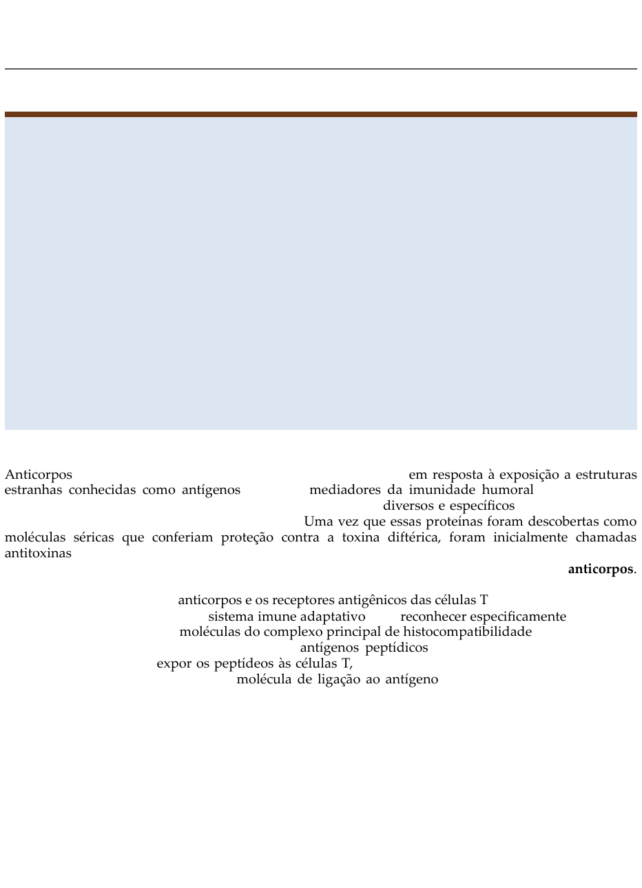 Anticorpos e Antígenos ESTRUTURA DO ANTICORPO Características Gerais da Estrutura dos Anticorpos Características Estruturais das Regiões Variáveis dos Anticorpos Características Estruturais das Regiões Constantes dos Anticorpos Anticorpos Monoclonais SÍNTESE, MONTAGEM E EXPRESSÃO DAS MOLÉCULAS DE IMUNOGLOBULINA Meia-vida dos Anticorpos LIGAÇÃO DOS ANTICORPOS AOS ANTÍGENOS Características dos Antígenos Biológicos Bases Estrutural e Química da Ligação Antigênica RELAÇÕES ESTRUTURA-FUNÇÃO NAS MOLÉCULAS DE ANTICORPOS Características Relacionadas ao Reconhecimento do Antígeno Características Relacionadas às Funções Efetoras RESUMO Anticorpos são proteínas circulantes produzidas em vertebrados em resposta à exposição a estruturas estranhas conhecidas como antígenos, e são os mediadores da imunidade humoral contra todas as classes de microrganismos. Os anticorpos são extremamente diversos e específicos em sua capacidade de reconhecer estruturas moleculares estranhas. Uma vez que essas proteínas foram descobertas como moléculas séricas que conferiam proteção contra a toxina diftérica, foram inicialmente chamadas antitoxinas. Quando se descobriu que proteínas semelhantes poderiam ser geradas contra muitas substâncias, não somente toxinas microbianas, essas proteínas receberam o nome geral de anticorpos. As substâncias que estimulavam a produção de anticorpos ou eram reconhecidas por eles foram então denominadas antígenos. Os anticorpos e os receptores antigênicos das células T (Capítulo 7) são as duas classes de moléculas usadas pelo sistema imune adaptativo para reconhecer especificamente e combater os antígenos (Tabela 5.1). As moléculas do complexo principal de histocompatibilidade (MHC, do inglês major histocompatibility complex) também ligam antígenos peptídicos, mas sua especificidade é muito diferente e sua função é expor os peptídeos às células T, não responder aos antígenos (Capítulo 6). Os anticorpos foram o primeiro tipo de molécula de ligação ao antígeno descoberta, reconhecem a mais ampla variedade de estruturas antigênicas, têm a maior capacidade de discriminar entre diferentes antígenos e ligam antígenos com a maior força. Neste capítulo, descreveremos a estrutura e as propriedades de ligação antigênica dos anticorpos. Gabs Realce Gabs Realce Gabs Realce Gabs Realce Gabs Realce Gabs Realce Gabs Realce Gabs Realce Gabs Realce Gabs Realce Gabs Realce Gabs Realce Gabs Realce Tabela 5.1 Características da Ligação ao Antígeno pelos Receptores Antigênicos Característica Imunoglobulina (Ig) Receptor da Célula T (TCR) Sítio de ligação antigênica Formado por três CDRs no domínio VH e três CDRs no domínio VL Formado por três CDRs no domínio Vα e três CDRs no domínio Vβ (na forma mais comum de TCR) Natureza do antígeno que pode ser ligado Macromoléculas (proteínas, lipídeos, polissacarídeos) e pequenos agentes químicos Complexos peptídeo-MHC Natureza dos determinantes antigênicos reconhecidos Determinantes lineares e conformacionais de várias macromoléculas e agentes químicos Determinantes lineares de peptídeos; somente alguns resíduos de aminoácidos de um peptídeo ligado a uma molécula de MHC Afinidade da ligação ao antígeno Kd 10-7 – 10-11 M; afinidade média das Igs aumenta durante as respostas imunes Kd 10-5 – 10-7 M Taxa de associação e taxa de dissociação Taxa de associação rápida, taxa de dissociação variável Taxa de associação lenta, taxa de dissociação lenta A estrutura e função das moléculas de TCR serão discutidas no Capítulo 7. CDR, região determinante de complementariedade; Kd, constante de dissociação; MHC, complexo principal de histocompatibilidade; VH, domínio variável da cadeia pesada de Ig; VL, domínio variável da cadeia leve de Ig. Os anticorpos são sintetizados somente pelas células da linhagem de linfócitos B e existem em duas formas: anticorpos ligados à membrana na superfície dos linfócitos B que atuam como receptores antigênicos, e anticorpos secretados que atuam na proteção contra microrganismos. O reconhecimento dos antígenos pelos anticorpos ligados à membrana nas células B naive ativa esses linfócitos e inicia a resposta imune humoral. As células B ativadas se diferenciam em plasmócitos que secretam anticorpos com a mesma especificidade do receptor antigênico. As formas secretadas dos anticorpos estão presentes no plasma (a porção fluida do sangue), nas secreções mucosas e no fluido intersticial dos tecidos. Na fase efetora da imunidade humoral, esses anticorpos secretados neutralizam toxinas microbianas, previnem a entrada e disseminação dos patógenos e desencadeiam vários mecanismos efetores que eliminam os microrganismos. A eliminação dos antígenos frequentemente requer a interação do anticorpo com outros componentes do sistema imune, incluindo moléculas como proteínas do complemento, e células como fagócitos e mastócitos. As funções efetoras mediadas pelos anticorpos incluem: neutralização dos microrganismos ou produtos microbianos tóxicos; ativação do sistema complemento; opsonização dos patógenos para aumento da fagocitose; citotoxicidade celular dependente de anticorpo, pela qual os anticorpos têm como alvo células infectadas para a lise pelas células do sistema imune inato; e ativação de mastócitos mediada por anticorpo para expelir vermes parasitas. Descreveremos essas funções dos anticorpos em detalhes no Capítulo 13. Quando o sangue ou plasma removido de um indivíduo forma um coágulo, os anticorpos permanecem no fluido residual, o que é denominado soro. O soro não possui os fatores da coagulação (os quais são consumidos durante a formação do coágulo), mas contém todas as outras proteínas encontradas no plasma. Qualquer amostra de soro que contenha moléculas detectáveis de anticorpo que se ligam a um antígeno em particular é norma