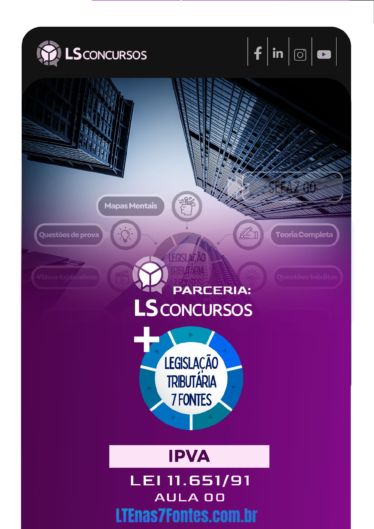 1 22 33 4 Sumário SUMÁRIO 4 APRESENTAÇÃO DO CURSO 1 APRESENTAÇÃO PROF. ELIEZER SANTOS 6 APRESENTAÇÃO PROF. RENATO CAMPOS 7 IMPOSTO SOBRE A PROPRIEDADE DE VEÍCULOS AUTOMOTORES - IPVA LEI 11.651/91 8 DA INCIDÊNCIA (ART. 90 AO 94-B) 9 Do Fato gerador ......................................................................................................................................................................................................................9 Do Momento da Ocorrência do Fato Gerador ................................................................................................................................................................ 12 Da Base de Cálculo .............................................................................................................................................................................................................. 17 Das Alíquotas........................................................................................................................................................................................................................ 22 Da Isenção............................................................................................................................................................................................................................. 25 Da Redução de Base de Cálculo ........................................................................................................................................................................................ 35 DA NÃO INCIDÊNCIA (ART. 95) 41 DA SUJEIÇÃO PASSIVA (ART. 96 AO 99) 44 Do contribuinte .................................................................................................................................................................................................................... 44 Do substituto tributário ...................................................................................................................................................................................................... 44 Do responsável pessoal ........................................................................................................................................................................................................46 Do responsável solidário ......................................................................................................................................................................................................46 DO PAGAMENTO (ART. 100 AO 102) 52 DAS OBRIGAÇÕES TRIBUTÁRIAS ACESSÓRIAS (ART. 103 AO 104) 58 DA REPARTIÇÃO DA RECEITA (ART. 105) 58 DAS PENALIDADES (ART. 106 A 111) 59 RESUMO FACILITADO DA AULA 63 DO FATO GERADOR 63 DO MOMENTO DA OCORRÊNCIA DO FATO GERADOR 63 DA BASE DE CÁLCULO 64 DAS ALÍQUOTAS 65 DA ISENÇÃO 65 DA REDUÇÃO DE BASE DE CÁLCULO 67 DA NÃO INCIDÊNCIA (ART. 95) 67 DA SUJEIÇÃO PASSIVA (ART. 96 AO 99) 68 DO PAGAMENTO (ART. 100 AO 102) 69 DAS PENALIDADES (ART. 106 A 111) 69 LISTA DE QUESTÕES 70 GABARITOS 89 QUESTÕES COMENTADAS 90 5 Apresentação do curso Bem-vindos, valorosos candidatos! É com imenso entusiasmo que iniciamos o nosso curso de Legislação Tributária do Estado de Goiás, desenvolvido especialmente para o concurso da SEFAZ GO. Nossa jornada, juntos, será marcada por foco, estratégia e um objetivo claro: garantir que você esteja 100% preparado para qualquer questão que a prova apresente. Nosso Compromisso com Sua Aprovação Este curso foi cuidadosamente planejado para otimizar seu tempo de estudo, oferecendo um conteúdo abrangente, atualizado e em perfeita sintonia com o edital mais recente. Nos dedicamos a proporcionar a melhor relação custo-benefício para que você conquiste uma preparação completa sem desperdiçar tempo. Para isso, desenvolvemos a exclusiva metodologia Legislação Tributária Estadual nas 7 Fontes (LTEnas7fontes), que reúne todos os elementos essenciais para uma preparação efetiva e objetiva: 1. Teoria Completa - Conteúdo aprofundado, cobrindo cada ponto relevante do edital; 2. Mapas Mentais - Ferramentas visuais para memorização e compreensão rápidas; 3. Vídeos Explicativos Curtos - Aulas objetivas, focadas nos tópicos mais cobrados; 4. Questões de Provas Anteriores - Prática com questões reais para reconhecimento de padrões; 5. Questões Inéditas - Exercícios novos para ampliar sua capacidade de interpretação e resolução; 6. Lei Seca - A legislação pura e essencial para consulta direta e aprofundamento; 7. Resumo Facilitado - Síntese clara e prática para revisão. Preparação Especial e Estratégica Além desses recursos, na semana anterior ao concurso, oferecemos lives com resolução de questões, para que você possa revisar, tirar dúvidas e fixar os pontos cruciais na reta final. Nosso curso foi desenhado para descomplicar a complexidade da legislação estadual, usando uma linguagem clara e direta, mapas mentais e vídeos que trazem exemplos práticos dos nossos professores – profissionais que vivem o dia a dia do fisco goiano. Vamos juntos rumo à aprovação, no conteúdo que teve o maior peso no último concurso e é crucial para seu sucesso! 6 Apresentação Prof. Eliezer Santos Futuro aprovado (a), meu nome é Eliezer Santos e, atualmente, exerço o cargo de Auditor fiscal no belíssimo Estado de Goiás. Sou servidor público desde os meus 18 anos e hoje meu propósito de vida é ajudar alunos e alunas, como você, a realizarem o sonho de ser aprovados e conquistarem a tão sonhada estabilidade. Meu primeiro cargo público foi no Exército brasileiro, como sargento de carreira formado pela Escola de Sargentos das Armas (EsSA). Em minha turma, tive a honra de ser o 1° colocado entre os mais de mil formandos. Em 2013, contudo, decidi que queria voos mais altos. Queria possibilitar à minha família, mais segurança e qualidade de vida.