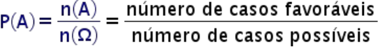 Sendo assim, podemos encontrar a probabilidade de ocorrer um determinado resultado através da divisão entre o número de eventos favoráveis e o número total de resultados possíveis: