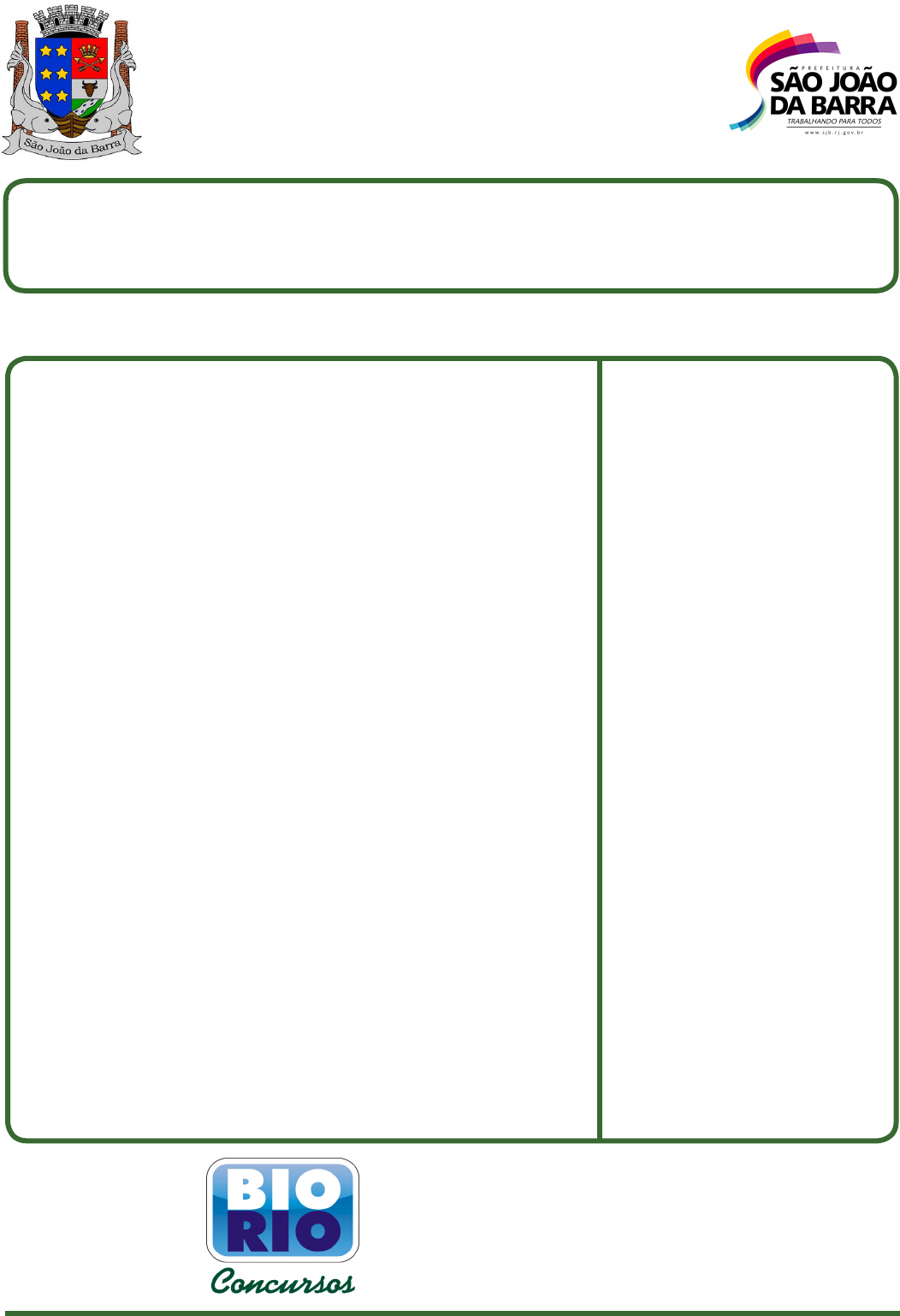 www.pciconcursos.com.br MÉDICO - GINECOLOGISTA/OBSTETRA LEIA COM ATENÇÃO AS INSTRUÇÕES 1 - A duração das provas será de 4 (quatro) horas, já incluído o tempo de preenchimento do Cartão de Respostas. 2 - O candidato que, na primeira hora de prova, se ausentar da sala e a ela não retornar, será eliminado. 3 - Os 3 (três) últimos candidatos a terminar a prova deverão permanecer na sala até que todos tenham finalizado suas provas e somente poderão sair juntos do recinto, após aposição em ata de suas respectivas assinaturas. 4 - O candidato NÃO poderá levar o seu Caderno de Questões (Provas Objetivas) e NÃO poderá copiar o gabarito (assinalamentos). A imagem do seu Cartão de Respostas será disponibilizada na página do concurso em http://concursos.biorio.org.br na data prevista no cronograma. INSTRUÇÕES - PROVA OBJETIVA 1 - Confira atentamente se este Caderno de Questões (Provas), que contém 60 (sessenta) questões objetivas, está completo. 2 - Cada questão da Prova Objetiva conterá 5 (cinco) opções e somente uma correta. 3 - Confira se os seus dados pessoais, o cargo escolhido, indicados no cartão de respostas, estão corretos. Se notar qualquer divergência, notifique imediatamente ao Fiscal de Sala ou ao Chefe de Local. Terminada a conferência, você deve assinar o cartão de respostas no espaço apropriado. 4 - Confira atentamente se o cargo e o número do caderno que estão no caderno de questões é o mesmo do que consta em seu cartão de respostas e na etiqueta com seus dados colada na mesa/cadeira onde foi designado para sentar. Se notar qualquer divergência, notifique imediatamente ao Fiscal de Sala ou ao Chefe de Local. 5 - Cuide de seu cartão de respostas. Ele não pode ser rasurado, amassado, dobrado nem manchado. 6 - Se você marcar mais de uma alternativa, sua resposta será considerada errada mesmo que uma das alternativas indicadas seja a correta. 7 - No decorrer da prova objetiva o fiscal de sala irá colher a sua digital no selo que está no seu cartão de respostas. AGENDA l 28/03 e 29/03/2015, Provas Objetivas. l 30/03/2015, Divulgação dos Exemplares dos Cadernos de Questões (Provas) das Provas Objetivas. l 30/03/2015, Divulgação dos Gabaritos Preliminares das Provas Objetivas. l 01/04/2015, Disponibilização das Imagens dos Cartões Respostas das Provas Objetivas. l 02/04 e 06/04/2015, Interposição de Recursos contra as questões das Provas Objetivas. l 14/04/2015, Divulgação dos Gabaritos Definitivos das Provas Objetivas. l 15/04/2015, Relação Final de Notas das Provas Objetivas. l 15/04/2015, Resultado Final do Concurso. CADERNO: 1 INFORMAÇÕES: l Tel: (21) 3525-2480 das 9 às 18h l Internet: http://concursos.biorio.org.br l E-mail: sjbarra2014@biorio.org.br CÓDIGO: MGO21 Prefeitura Municipal de São João da Barra www.pciconcursos.com.br MÉDICO - GINECOLOGISTA/OBSTETRA CADERNO 1 2 LÍNGUA PORTUGUESA QUESTÃO 1 Observe a charge abaixo Sobre a charge, a afirmação INCORRETA é a de que: (A) Há muitos interesses políticos na criação de ciclovias. (B) Os ciclistas têm preocupações com as ciclovias. (C) Os pedestres se veem prejudicados com as ciclovias. (D) As ciclovias mostram interesses em choque. (E) A dúvida do ciclista é com a segurança nas ciclovias. TEXTO Ciclovia As ciclovias exercem um grande fascínio sobre a população em geral, em especial nos ciclistas leigos. A crença que só a segregação do ciclista em relação ao trânsito proporciona segurança no pedalar é muito enraizada. A realidade apresentada por pesquisas mostra que não é bem assim. Não resta dúvidas que ciclovias têm qualidades, mas não existe milagre e elas também apresentam seus pontos fracos. Talvez o ponto mais forte do conceito ciclovia esteja no imaginário das pessoas. Ciclovia é uma dentre várias opções técnicas de segurança de trânsito para melhoria da vida do ciclista. Ela pode ou não ser a opção mais segura ou apropriada. Em várias situações é mais apropriado ter faixas para ciclistas, sinalização, trânsito partilhado ou mesmo não fazer absolutamente nada. Em cidades de pequeno porte ou no interior de bairros onde o trânsito é de baixa velocidade e tranquilo, ciclovias provavelmente são totalmente desnecessárias. A matemática é simples: a quase totalidade dos acidentes envolvendo ciclistas acontece em cruzamentos, portanto resolvendo estes pontos, o índice de acidentes envolvendo ciclistas praticamente zera. E aí vem o detalhe: não existe ciclovia sem algum tipo de cruzamento. Mas há outros fatores a ponderar antes de optar pela ciclovia. Para criar uma via apropriada é necessário tirar espaço de alguém, seja dos veículos motorizados ou até mesmo dos pedestres, o que faz com que processo de implementação seja realizado no mínimo com alguma espécie de atrito. Ciclovia é sempre a opção mais complicada de ser implementada e a mais cara. Os altos custos de sua manutenção também devem ser levados em consideração ou então o dinheiro investido será jogado no lixo. QUESTÃO 2 “As ciclovias exercem um grande fascínio sobre a população em geral, em especial nos ciclistas leigos”; essa observação inicial do texto: (A) é explicada na progressão do texto. (B) é contrariada pelo conteúdo do texto. (C) é discutida em seus vários aspectos. (D) é confirmada por estudos especializados. (E) é vista como uma opinião equivocada. QUESTÃO 3 A frase do primeiro parágrafo que mostra um erro de norma culta é: (A) “As ciclovias exercem um grande fascínio sobre a população em geral, em especial nos ciclistas leigos”. (B) “A crença que só a segregação do ciclista em relação ao trânsito proporciona segurança no pedalar é muito enraizada”. (C) “A realidade apresentada por pesquisas mostra que não é bem assim”. (D) “Não resta dúvidas que ciclovias têm qualidades, mas não existe milagre e elas também apresentam seus pontos fracos”. (E) “T