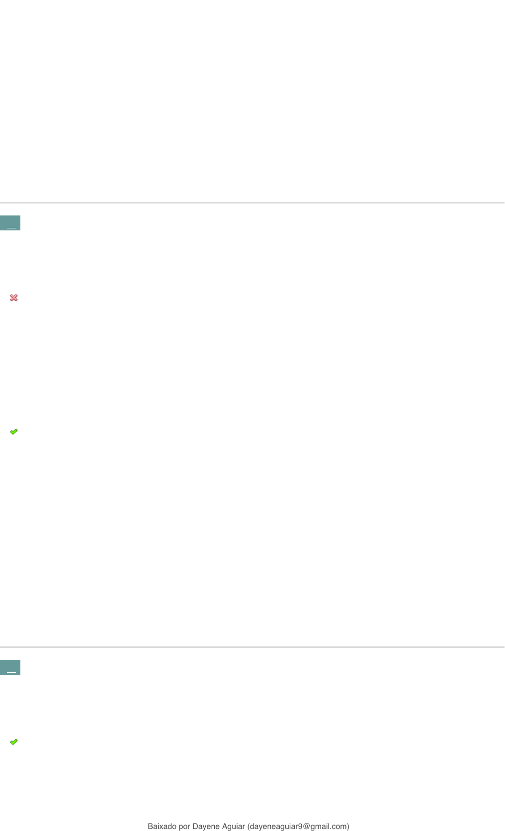 Explicação: O legado grego só pode chegar ao português por meio de sua língua de formação básica, o latim. Desse modo, as demais alternativas estão incorretas porque não descrevem adequadamente a relação entre o grego e o português. 3. Indique a opção que completa corretamente a seguinte afirmação: Filósofo é uma palavra de origem grega e significa: amigo dos astros. amigo da cidade. amigo da vaidade. amigo do saber. amigo do dinheiro. Data Resp.: 08/11/2023 19:57:19 Explicação: Filo- significa amigo e sofos está ligado à ideia de saber. As demais alternativas atribuem sentido incorreto ao termo filosofia. 4. De acordo com as particularidades das três pronúncias latinas, sabe-se que as palavras podem ser pronunciadas de forma diferente em cada uma delas, mas algumas podem ter a mesma pronúncia nas três. Marque a única opção em que a palavra será pronunciada do mesmo jeito nas três pronúncias. rex. Baixado por Dayene Aguiar (dayeneaguiar9@gmail.com) lOMoARcPSD|48644674 Mobile User patientia. regnum. germen. philosophia. Data Resp.: 08/11/2023 19:57:20 Explicação: O gn na pronúncia eclesiástica é pronunciado como nh. O ti nas pronúncias eclesiástica e tradicional é pronunciado como ci. O s intervocálico na pronúncia tradicional tem som de z. O ge na pronúncia tradicional tem o som de je, na eclesiástica o som dje e na reconstituída o som ge. Apenas rex se pronúncia igualmente nas três pronúncias como reks. 5. Até mesmo a política atual sofreu influência do legado romano, como vemos em palavras como senado de senatus, cônsul de consul, Império de imperium. Também a palavra república veio do latim. Marque a opção que define da melhor maneira o significado da palavra em latim. Oligarquia. Regime político. Coisa do povo. Democracia. Presidencialismo. Baixado por Dayene Aguiar (dayeneaguiar9@gmail.com) lOMoARcPSD|48644674 Mobile User Data Resp.: 08/11/2023 19:57:22 Explicação: A palavra é composta do substantivo res (coisa) e do adjetivo publica (pública, do povo). As demais alternativas, ainda que contenham termos relacionados com a política, não condizem com o sentido literal do termo república. 6. De acordo com as regras para o uso da quantidade, marque a opção em que o sinal está usado de forma correta. dŭx (general). deūs (deus). Herăcles (Héracles). maestitīa (tristeza). prouĕctus (adiantado). Data Resp.: 08/11/2023 19:57:23 Explicação: Segundo as regras, é breve vogal antes de vogal, portanto, maestitīa e deūs estão erradas. Vogal antes de x é longa, portanto, a letra dŭx está errado. Vogal antes de duas consoantes é longa e, por isso, prouĕctus está errada, exceção feita aos grupos consonantais que tenham l ou r como segundo elemento, no qual a vogal que o antecede é breve, como é o caso da palavra Herăcles, cujo encontro é cl. Baixado por Dayene Aguiar (dayeneaguiar9@gmail.com) lOMoARcPSD|48644674 Mobile User 7. Marque a única opção em que o encontro vocálico deve ser classificado como um ditongo. Insolentia (insolência). Gladiator (gladiador). Ardeo (arder). Desolatio (desolação). Caesar (césar). Data Resp.: 08/11/2023 19:57:24 Explicação: Há apenas três ditongos no latim clássico ae, oe e au. Apenas Caesar é uma palavra com uma dessas combinações. As demais alternativas apresentam palavras em que não ocorrem um dos ditongos ae, oe e au. 8. As palavras comédia e tragédia, tão utilizadas no cotidiano da língua portuguesa, estavam originalmente relacionadas a qual área da cultura no ambiente grego? Indique a opção que apresenta a resposta correta. Atletismo. Astronomia. Filosofia. Baixado por Dayene Aguiar (dayeneaguiar9@gmail.com) lOMoARcPSD|48644674 Mobile User Teatro. Geometria. Data Resp.: 08/11/2023 19:57:26 Explicação: Comédia e tragédia são termos relativos às festas para o deus Dioniso e que deram origem ao teatro grego. As demais alternativas estão incorretas porque o atletismo, a filosofia, a astronomia e a geometria, por motivos óbvios, não se vinculam diretamente com a dramaturgia e a encenação das comédias e das tragédias. 9. Há, hoje em dia, três possibilidades de pronúncia para o latim: a tradicional, a reconstituída e a eclesiástica. Sabemos que cada uma delas é usada em áreas de saber diferentes. Marque a opção que indica em qual é usada a pronúncia eclesiástica. Na Filosofia. Na Biologia. No Direito. No Vaticano. Nos cursos de Letras. Data Resp.: 08/11/2023 19:57:27 Explicação: A pronúncia eclesiástica é usada pela Igreja Católica. As demais alternativas estão incorretas porque são áreas nas quais se utiliza ou a pronúncia restaurada ou a pronúncia tradicional. Baixado por Dayene Aguiar (dayeneaguiar9@gmail.com) lOMoARcPSD|48644674 Mobile User 10. Marque a alternativa em que a combinação do uso do sinal e sua regra está correta. enōrmis (enorme) - vogal antes de r é longa. mansĭo (morada) - vogal antes de ditongo é breve. quadrŭplex (quádruplo) - vogal antes de duas consoantes é longa. exsilĭum (exílio) - vogal antes de vogal é breve. pōndus (peso) - vogal antes de n é longa. 2. A respeito da vogal temática na língua latina, podemos afirmar que: Ela serve para indicar a pessoa e o número nos verbos. Somente os verbos possuem vogal temática. Ela serve para indicar a função sintática das palavras na oração. Ela agrupa os substantivos em declinações e os verbos em conjugações. Ela agrupa os nomes em conjugações e os verbos em declinações. 1. Analise a afirmativa a seguir: I - Os tempos verbais no latim se agrupam, em relação ao aspecto, em dois Baixado por Dayene Aguiar (dayeneaguiar9@gmail.com) lOMoARcPSD|48644674 Mobile User grupos: o infectum e o perfectum. Assinale a alternativa que apresenta, respectivamente, o sentido do infectum e do perfectum. O presente e o futuro do presente. O feito e o não realizado. Ativo e passivo. O não feito e o feito ou realizado. O futuro do presente e