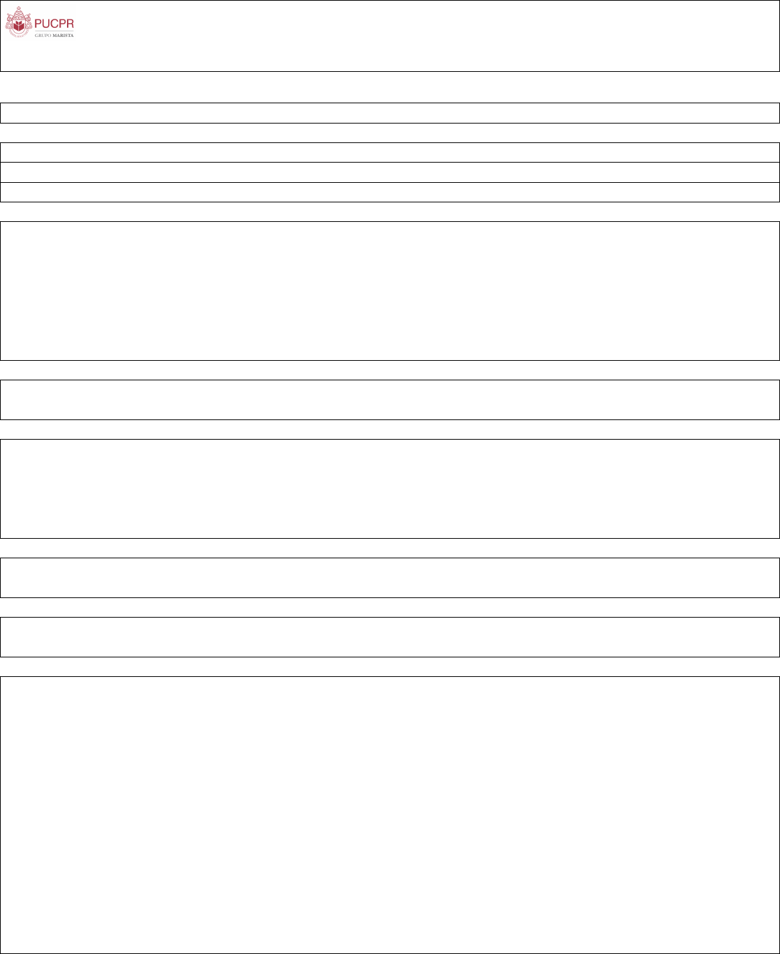 Pontifícia Universidade Católica Do Paraná Rua Imaculada Conceição, 1155 - Prado Velho - CEP: 80215901 Curitiba - Paraná - Brasil - (41) 3271-1555 - http://www.pucpr.br/ PROGRAMA DO CURSO DE PSICOLOGIA Disciplina : ELE100A - Leitura e Escrita Acadêmica Período : 1 Ano/Semestre : 2019/1 Carga Horária : 60 horas EMENTA Esta disciplina, comum a cursos por competência da PUCPR, aborda aspectos da leitura e daescrita acadêmicas, e pode ser o primeiro contato do estudante com artigos científicos. Nela, osestudantes identificam fontes confiáveis de informação e aplicam técnicas de leitura acadêmica, asquais subsidiam o processo de interpretação textual e permitem selecionar ideias-chave, auxiliandona elaboração de paráfrases. Ao final, o acadêmico é capaz de produzir revisões autorais de literaturacientífica conforme normas da ABNT. OBJETIVO / COMPETÊNCIA TEMAS DE ESTUDO Estratégias de Leitura 1.1 Leitura inspecional/averiguativa; 1.2 Seleção deideias-chave; 1.3 Estratégias de anotação no texto: levantar e registrar hipóteses, questionamentos;1.4 Registrar inferências comprovadas no texto; 1.5 Técnica de sublinho; 2 1.6 Segmentação do texto:1.6.1 por microestrutura/partes; 1.6.2 por ideias-chave. RESULTADOS DE APRENDIZAGEM CONTEÚDO PROGRAMÁTICO BIBLIOGRAFIA COMPLEMENTAR 1. ADLER, Mortimer I.; Van DOREN. Como ler um livro. Rio de Janeiro: Guanabara, 1990. 2. MEDEIROS, João Bosco. Redação científica: a prática de fichamentos, resumos, resenhas. 2. ed. São Paulo: Atlas, 1996. 3. KOCK, Ingedore V; ELIAS, Vanda M. Ler e escrever. São Paulo: Contexto, 2016. 4. FARACO, Carlos A; TEZZA, Cristovão. Oficina de texto. Curitiba: Editora Vozes, 2014. 5. FIORIN, José L. Argumentação. São Paulo: Contexto, 2015. BÁSICA 1. PONTIFÍCIA UNIVERSIDADE CATÓLICA DO PARANÁ. Biblioteca Central. Guia de normalização para trabalhos acadêmicos. Curitiba, 2011. Disponível em: