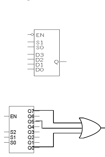 Bacharelado em Ciência da Computação – UFRJ Circuitos Lógicos - 2009/1 Prof. Gabriel P. Silva 2a Lista de Exercícios 1) Implementar F(x,y,z) = ∑m(2,4,5,6) usando um multiplexador de quatro entradas e um “enable” ativo em nível lógico baixo. 2) Qual a função implementada pelo circuito abaixo? O decodificador tem saídas ativas em nível lógico alto. 3) Correlacione as colunas a seguir: a) O valor binário correspondente à entrada de maior valor que estiver ativada é apresentado na saída. ( ) Multiplexador b) Uma das saídas é ativada de acordo com o valor da entrada. Há versões com as saídas ativas em nível lógico alto ou baixo. ( ) Decodificador c) O valor binário correspondente à entrada ativada é apresentado nas saídas. Apenas uma entrada pode estar ativa de cada vez. ( ) Comparador de Magnitude d) A saída acompanha o valor (alto ou baixo) de uma das entradas de acordo com o valor das linhas de seleção. ( ) Codificador de Prioridade e) Os valores binários correspondentes aos números presentes nas duas entradas são comparados e o sinal de maior, menor ou igual é ativado na saída de acordo com o resultado da comparação. ( ) Codificador 4) O seguinte seqüência é aplicada na entrada de um codificador de prioridade e também na entrada de um codificador de 8 bits. Quais os valores binários que aparecem na saída? Justifique. (01000000), (00000010), (00001111) e (00100010). A B C '1' F 5) Projete um somador/subtrador de 2 bits cascateável utilizando um multiplexador de 4:1 e outro de 8:1. Considere que um bit na entrada do circuito informa se a operação é de soma ou subtração. 6) Construa um multiplexador com 8 entradas utilizando apenas multiplexadores com 2 entradas. 7) Escreva o código em VHDL para um somador/subtrator cascateável de 2 números de 8 bits. A operação de soma ou subtração é escolhida por um bit na entrada do dispositivo. 8) Escreva o código em VHDL para um deslocador de 8 bits para a esquerda ou direita, considerando que o número de entrada não tem bit de sinal. 9) Quais são os sete erros (de diferentes tipos) no código VHDL abaixo? LIBRARY ieee; USE ieee.std_logic_1164.ALL; ENTITY Mux IS PORT(_A_in, _B_in: IN STD_LOGIC_VECTOR; Sel: IN STD_LOGIC; Data_out: OUT STD_LOGIC_VECTOR); END Mux; ARCHITECTURE behavioral OF Multiplexer IS BEGIN PROCESS (Sel) CONSTANT Mux_delay: TIME := 500 ps; BEGIN IF (Sel == '0') THEN Data_out := _A_in AFTER Mux_delay ELSIF Data_out := _B_in AFTER Mux_delay END IF; END PROCESS; END BEHAVIORAL; 10) A seguinte forma de onda foi aplicada na entrada de um LATCH transparente. Qual será a forma de onda obtida na sua saída? EN D