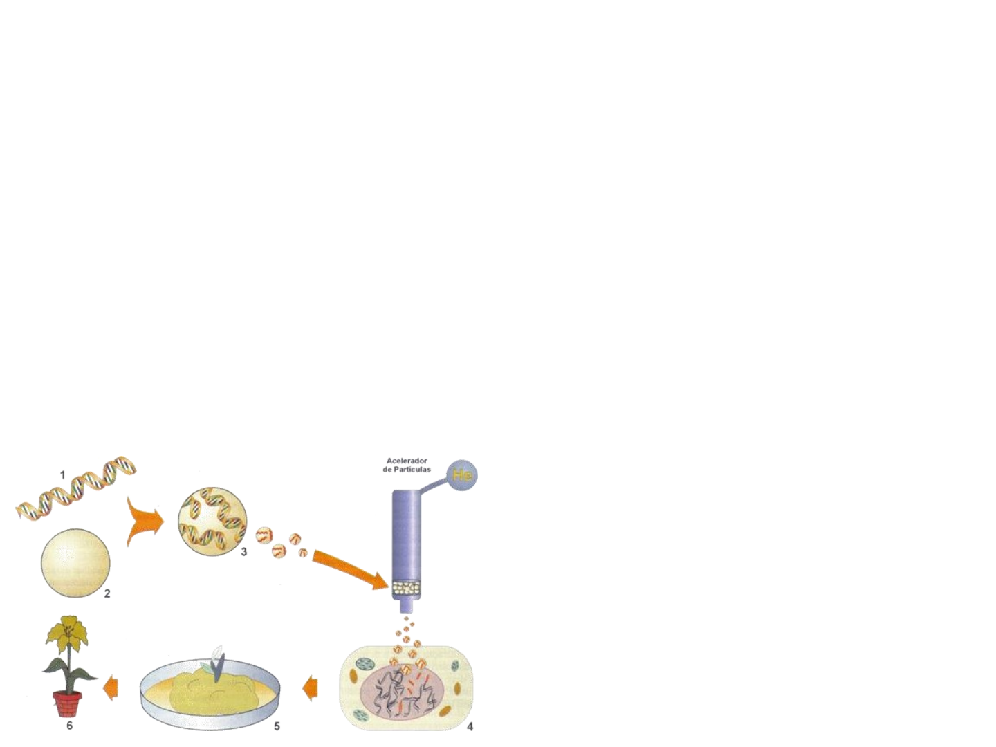 MÉTODOS DE TRANSFORMAÇÃO GENÉTICA O processo de introdução de sequências (genes) de interesse em organismos chama-se transformação genética; O gene sendo transferido para o organismo é chamado de transgene; Organismos com modificações genéticas que recebem um transgene são denominados de transformados ou transgênicos; Denominação mais ampla = Organismos Geneticamente Modificados (OGM); NÃO É TODO OGM QUE É UM TRANSGÊNICO! CONCEITOS IMPORTANTES MÉTODOS DE INTRODUÇÃO DE DNA NA CÉLULA Altamente dependente do organismo! Como eu faço a transformação de plantas? Seleção de tecido vegetal competente para propagação ou regeneração, Método de transferência do gene de interesse (biológico ou físico), Identificação de células transformadas por seleção, Regeneração de plantas a partir de células transformadas, Plantas transgênicas analisadas para confirmar presença do transgene - herança e estabilidade, Plantas transgênicas avaliadas para performance no campo. ETAPAS PARA A TRANSFORMAÇÃO GENÉTICA DE PLANTAS Introdução do DNA dentro da célula vegetal Regeneração da planta Seleção Construção sintética do transgene Melhoramento EM SÍNTESE: Totipotência = capacidade de regeneração da planta a partir de uma única célula Confirmação Precisa conter no mínimo: Gene de interesse A região de interesse e seus elementos controladores Marca de seleção Diferencia plantas transformadas e não transformadas CONSTRUÇÃO SINTÉTICA DO TRANSGENE A característica de interesse pode e deve ser engenheirada… REGIÃO CODANTE Sinal poli A PROMOTOR Transgene Resistência a antibiótico Origem de replicação Marca de seleção na planta CONSTRUÇÃO SINTÉTICA Genes bacterianos VETOR PLASMIDIAL CONSTRUINDO O TRANSGENE Célula Vegetal núcleo parede celular membrana citoplasmática transgene 1. DNA pode ser transferido para a célula vegetal por meio Agrobacterium) biológico ou (via físico (bombardeamento com micropartículas), 2. DNA deve cruzar várias barreiras, 3. DNA deve se integrar ao cromossomo no núcleo da célula vegetal, Cada célula transformada é única, Número de células transformadas é mínimo. citoplasma TRANSFERINDO DNA PARA CÉLULAS DE PLANTAS Agrobacterium Bactéria do solo que tem a capacidade de transferir parte do seu DNA para dentro da célula da planta; No laboratório, a bactéria é colocada em cultura junto com as células de plantas, ou inoculada no tecido da planta, transferindo parte do seu DNA para as células da planta; Bombardeamento Partículas de ouro ou tungstênio são cobertas com DNA e aceleradas em direção ao tecido da planta (hélio comprimido); As partículas perfuram a parede celular e penetram dentro da célula; Utilizado quando não é possível por incompatibilidade biológica o uso de Agrobacterium - em monocotiledôneas. MÉTODOS PARA A INTRODUÇÃO DO TRANSGENE NA PLANTA Bombardeamento de microprojéteis “Biolística” ou “gene gun” Partículas são cobertas de DNA e atiradas para dentro da célula da planta. MÉTODO BIOLÓGICO X FÍSICO Agrobacterium tumefaciens Propriedade natural da bactéria Agrobacterium de transferir DNA para dentro da célula da planta. Bactéria de solo Gram-negativa, tipo bacilo; Causa galha da coroa (“crown gall”): videira, maçã, etc.; Afeta mais dicotiledôneas e pouco monocotiledôneas; Família Rhizobiaceae. Outras espécies: Agrobacterium rhizogenes -raiz em cabeleira (“hairy root”) Agrobacterium radiobacter - não tumorogênica (sem Ti) Agrobacterium tumefaciens GALHA DA COROA Planta ferida Libera substâncias que atraem a agrobactéria; Ativa genes da região de virulência; Contato planta- bactéria As bactérias sintetizam microfibrilas de celulose para favorecer a formação de agregados de células bacterianas em volta do tecido vegetal ferido; Inserção do T-DNA o T-DNA integrado ao genoma vegetal é expresso de forma estável ; A síntese de auxinas e citocininas (oncogenes) levam a planta a um desbalanço hormonal; Síntese de Opina Quanto mais a célula da planta se divide maior é a produção de opina e o nicho da agrobactéria se torna extremamente favorável; Somente a linhagem indutora é capaz de catabolizar a opina produzida como fonte de energia, carbono e nitrogênio; APESAR DE SUA ORIGEM PROCARIOTA, A EXPRESSÃO DOS GENES PRESENTES NO T-DNA SÓ É POSSÍVEL POR SEREM OS SINAIS DE REGULAÇÃO DESSES GENES RECONHECIDOS PELO SISTEMA DE TRANSCRIÇÃO EUCARIOTA VEGETAL!! Infecção natural – ferimentos; Quimiotactismo - fenóis, açúcares, amino ácidos; Expressão de genes da bactéria transferidos e integrados de forma estável ao genoma vegetal Formação de tumores; Capacidade tumorogênica - plasmídeo Ti = Ti = Tumor Inducing - 150 a 250 kpb Regiões do plasmídeo Ti importantes: região T-DNA - Transfer DNA região vir - genes de virulência Plasmídeo Ti Agrobacterium PATOGENICIDADE NATURAL DE A. tumefaciens Opinas: fonte de C e N para Agrobacterium Agricultural biotechnology: Gene exchange by design (Nature 433, 583-584 (10 February 2005) PATOGENICIDADE NATURAL DE A. tumefaciens Região T-DNA Tamanho: de 12 a 24 kb Limitada por seqüências repetidas = bordas – bordas direita (RB) e esquerda (LB) - delimitam T-DNA Contém genes de síntese de reguladores de crescimento (hormônios vegetais) e de opinas Transferem genes para direcionar metabolismo para manutenção da Agrobacterium Agrobacterium Plasmídeo Ti Região vir genes responsáveis pela síntese de enzimas da transferência e integração do T-DNA Agrobacterium Plasmídeo Ti Região vir é suficiente para transferir qualquer T-DNA - reconhece bordas Gene indutores de tumores podem ser retirados e substituídos no T-DNA TRANSFERÊNCIA DO TRANSGENE Característica de interesse Elementos essenciais ao processo de transferência TRANSFORMAÇÃO VIA BIOBALÍSTICA TRANSFORMAÇÃO VIA BIOBALÍSTICA TRANSFORMAÇÃO POR BOMBARDEAMENTO - BIOBALÍSTICA Todos os proto