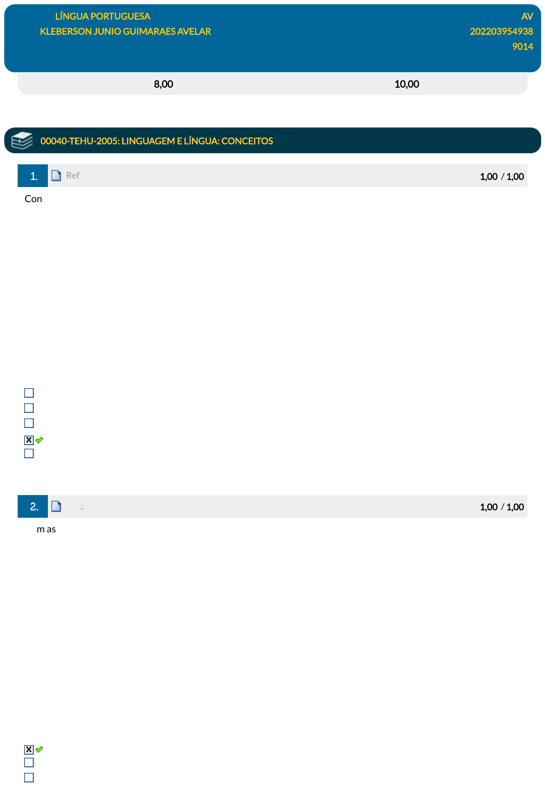 Avaliação: 8,00 pts Nota SIA: 10,00 pts