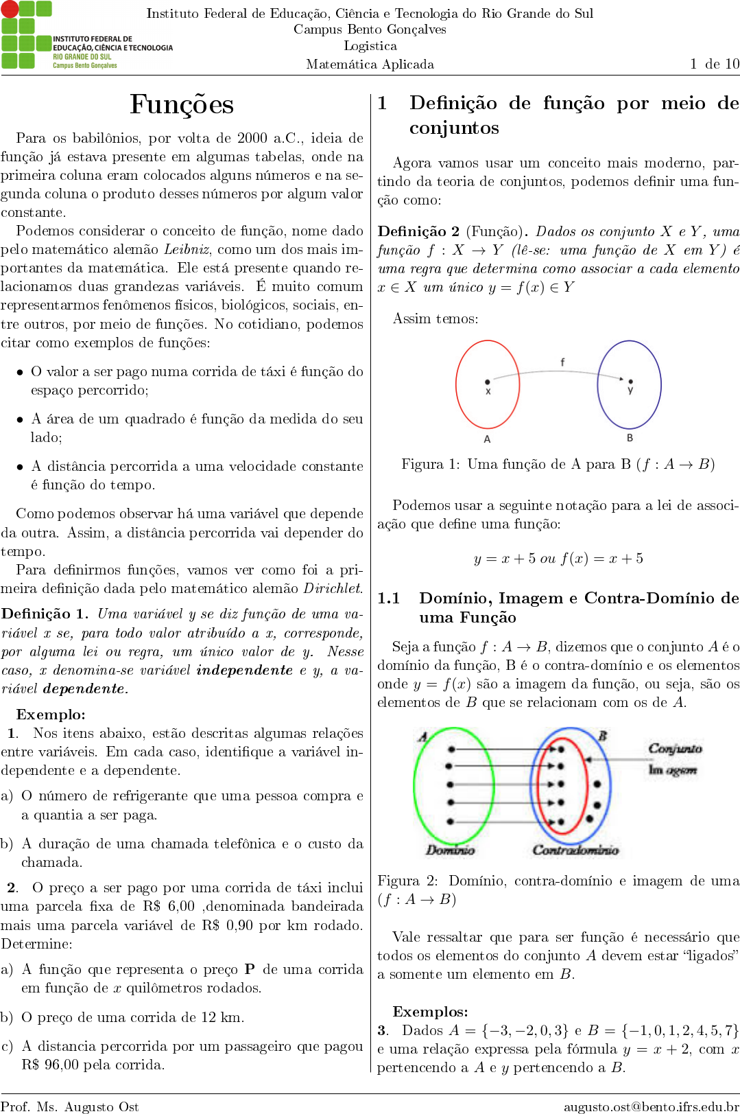 1.1 Domínio, Imagem e Contra-Domínio de