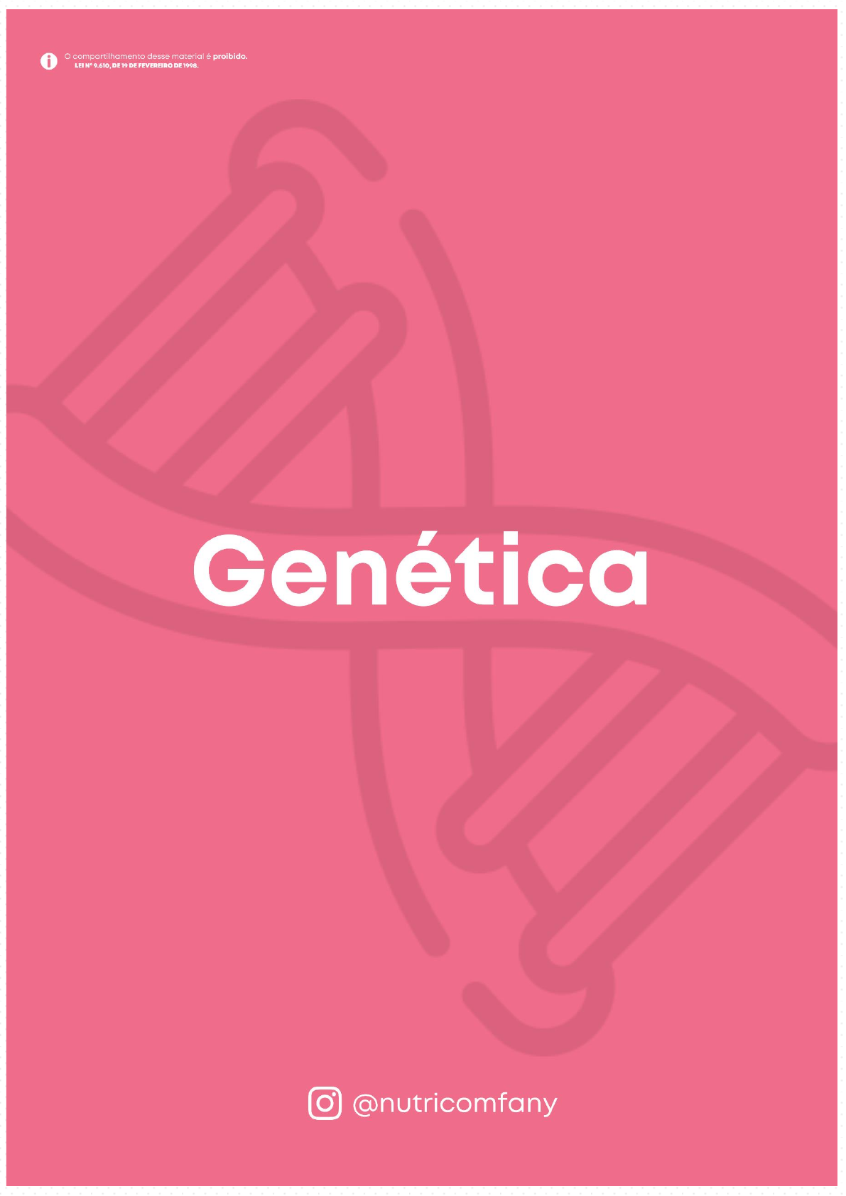 Página 3 Origens das ideias sobre a Hereditariedade Base Cromossômica da Hereditaridade Genes Cromossomos Cromossomos Homólogos Cromossomos Simples Cromossomos Duplos Células Haploides Página 4 Células Diploides Alelos Fenótipo x Genótipo Página 5 Espécie Humana Cariótipo Célula Haploide Célula Diploide Replicação do DNA Transcrição DNA RNA Página 6 Tradução Código Genético Expressão Gênica Herança Genética Um pouco da História da Genética @NUTRICOMFANY – ESTEFANY MIRANDA Embora a curiosidade pelo entendimento dos processos que resultam na transmissão da herança biológica remonte a cerca de 400 a.C., pode-se dizer que a ciência da Genética começou em 1865, com o trabalho de Gregor Mendel, um monge austríaco que formulou as leis fundamentais da herança. No entanto, seu trabalho só foi descoberto pela comunidade científica em 1900, e a partir daí o esforço e a criatividade de muitos pesquisadores, associados a um modelo de metodologia científica, permitiram grandes avanços na compreensão dos eventos pelos quais os fatores de Mendel, que hoje chamamos de genes, expressam sua informação. Passamos das obscuras unidades que Mendel chamava de “fatores” para a identificação do DNA como a base química da herança. Em um cromossomo, cada segmento de DNA capaz de transcrever sua mensagem em uma molécula de RNA chama-se gene; logo, o cromossomo é uma sequência linear de genes. O termo “gene” foi empregado pela primeira vez em 1909, por Wilhem Johannsen, para identificar as “unidades de herança”. Loco ou locus (do latim "lugar", no plural loci) é o local fixo num cromossomo onde está localizado determinado gene. Os genes de uma espécie estão presentes em todas as células nucleadas de um indivíduo, e não apenas naquelas em que se manifestam. Na espécie humana, por exemplo, o gene que controla a cor dos olhos está nas células da pele, nas musculares, nos neurônios e em outras do corpo, não apenas nas células dos olhos. Em uma planta de milho, o gene que condiciona a cor das sementes existe em células das raízes, do caule, das folhas e em outras células, além de também estar nas das sementes. Estrutura que contém uma longa molécula de DNA associada a proteínas histonas, visível ao microscópio óptico em células metafásicas. Nas células da maioria das espécies, encontram- se pares de cromossomos – chamados cromossomos homólogos – que apresentam mesma forma, tamanho e posição de centrômeros. Em um par de cromossomos homólogos, dois loci ou locos (espaço físico ocupado pelo gene no cromossomo (endereço) correspondentes relacionam-se com a mesma característica. São cromossomos semelhantes na forma e no tamanho Apresentam genes em posições equivalentes Presentes aos pares em células diploides (2n) Cromossomos simples As origens das ideias sobre hereditariedade Base Cromossômica da Hereditariedade Genes Cromossomos Homólogos Cromossomos @NUTRICOMFANY – ESTEFANY MIRANDA Cromossomos Duplo Células Haplóides (C e D): não possuem cromossomos homólogos Células Diplóides (A e B): possuem cromossomos homólogos São formas alternativas de um gene, que atuam sobre a mesma característica, ocupando loci correspondentes, em cromossomos homólogos. Os alelos atuam sobre a mesma característica, mas não são obrigatoriamente iguais. O alelo dominante é aquele que pode se manifestar tanto em dose dupla como em dose simples, e o alelo recessivo só se expressa em dose dupla. O alelo que determina vagens infladas é dominante sobre aquele que condiciona vagens constritas (alelo recessivo). Habitualmente, os alelos são representados por uma letra que corresponde, em geral, à inicial do fenótipo recessivo. No caso citado, escolhe-se a letra C, inicial de constrita. A letra maiúscula indica o alelo dominante, a letra minúscula indica o alelo recessivo. C – alelo dominante (condiciona vagens infladas) c – alelo recessivo (condiciona vagens constritas) A relação de dominância pode ser expressa por C > c. Quando um indivíduo possui dois alelos iguais (CC ou cc), ele é homozigoto; o indivíduo de genótipo CC é homozigoto dominante, enquanto o de genótipo cc é homozigoto recessivo. O genótipo Cc corresponde ao indivíduo heterozigoto. O genótipo é a constituição genética de um organismo, ou seja, o conjunto de alelos herdado dos genitores. O fenótipo é a expressão de características (internas ou externas) geneticamente determinadas de um ser vivo. Determinadas características, como tipo sanguíneo, dependem exclusivamente do genótipo. A maioria, entretanto, sofre também influência de fatores ambientais. A cor da pele, por exemplo, é determinada geneticamente, mas pode ser modificada pela exposição à luz solar, que é um fator ambiental. Portanto, o fenótipo de um indivíduo depende do genótipo e também, Alelos Genótipo x Fenótipo @NUTRICOMFANY – ESTEFANY MIRANDA frequentemente, da influência de fatores ambientais. O cariótipo de um indivíduo é a análise do seu conjunto cromossômico que permitem a marcação dos cromossomos com corantes específicos, separando-os por formato e tamanho. Os corantes utilizados são capazes de evidenciar um padrão de regiões que são específicas de cada cromossomo. O padrão de regiões observado para cada cromossomo é quase que invariável dentro de indivíduos de uma mesma espécie. Tal padrão é, portanto de extrema importância na citogenética para a identificação de alterações na estrutura cromossômica que possam ter relevância para genética médica. O cariótipo é feito com cromossomos metafásicos. Através de técnicas de coloração, cada par de cromossomos pode ser reconhecido e diferenciado dos outros pares de cromossomos de uma célula. Para delimitar os conceitos e explorar a introdução à genética, é imprescindível levantar definições para compreensão. As células haploides (n) são as células com c
