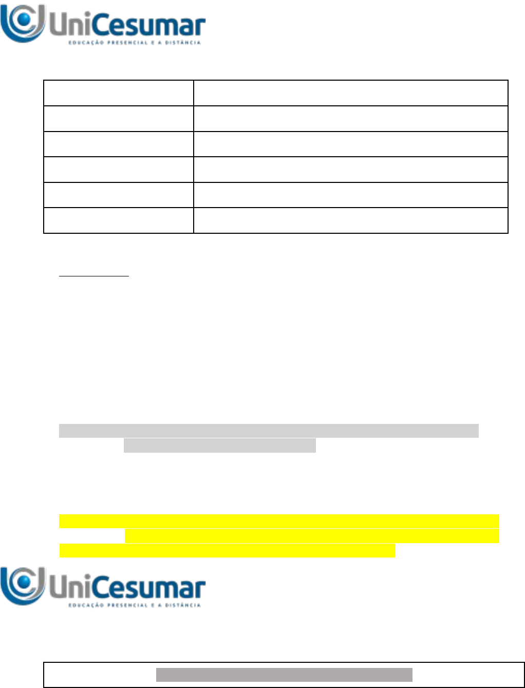 Estágio Supervisionado IV Atividade de Estudo 2 Módulo 52/2023 BEDU – ESTÁGIO IV – ATIVIDADE DE ESTUDOS 2 Nome do acadêmico: Victor Gonçalves Espósito Ferreira RA: 22113341-5 Curso: Bacharelado em Educação Física Disciplina: Estágio Supervisionado IV Valor da Atividade: 3,0 pontos Prazo para postagem: 21/05/2024 a 10/06/2024 Orientações: - É obrigatório utilizar o modelo da atividade disponível no "Material da Disciplina". - Leia com atenção todas as informações disponíveis no modelo atividade de estudo e assista a aula conceitual. - É obrigatória a apresentação de 1 (Uma) referência nas normas da ABNT. Na Sala do café, encontra-se um arquivo de como referenciar os livros. - A atividade é individual. Em caso de cópias, atividades similares entre estudantes e plágio à atividade será zerada. - Você deverá enviar o modelo atual em 1 (um) único arquivo, no formato do WORD (.doc ou .docx). A avaliação será feita apenas neste formato, portanto, não entregue outro formato de arquivo. - CERTIFIQUE-SE DE QUE O ARQUIVO É O CORRETO ANTES DE FINALIZAR A ATIVIDADE! POIS, NÃO HÁ COMO REENCAMINHÁ-LO. PORTANTO, FAÇA A CONFERÊNCIA ANTES DE ENVIAR. Estágio Supervisionado IV Atividade de Estudo 2 Módulo 52/2023 Você aluno, após concluir o Bacharelado em Educação Física foi contratado para atuar em uma empresa de Personal para populações especiais. Sua atuação terá início no próximo mês e sua primeira aluna será uma gestante. Principais características da aluna gestante Nome: Ana Idade: 28 anos Peso: 72kg Altura: 1,67 Tempo de gestação: segundo trimestre (4-6 meses) Possui alguma doença? Não Nível de atividade física: Ativa, praticou musculação nos últimos dois anos, mas atualmente só faz caminhada 3x na semana. Restrição médica? Não Objetivo: Fortalecimento muscular dos membros inferiores para o parto normal Informações para elaboração de sua sessão de treino: ➢ Tempo total da aula: 40 minutos ➢ Dias da semana: terça-feira ➢ Horário: 9h00min às 9h40min ➢ Intensidade: leve à moderada ➢ Local: casa da aluna (área) ➢ Materiais disponíveis: bola suíça (bola de pilates); 1 colchonete; 1 cadeira e um trio de mini band. Caso seja necessário, poderá utilizar a parede como apoio de alguns exercícios. Estágio Supervisionado IV Atividade de Estudo 2 Módulo 52/2023 VEJA O EXEMPLO A SEGUIR: EXEMPLO DE PLANO DE ATIVIDADE Aluna: Ana Idade: 28 anos Peso: 72 kg Altura: 1,67 Gestante: segundo trimestre (4-6 meses) Dia da aula: terça-feira Tempo total: 40 minutos Objetivo do treino: Fortalecimento muscular dos membros inferiores para o parto normal Parte Inicial: Alongamento (10 minutos) Exemplo de como descrever a parte inicial. Cruzar o braço direito na frente do tórax com um dos braços e com a mão esquerda pressionar o cotovelo junto ao peito e segurar por 20 segundos. Alternar os lados. Em pé, com a mão direita apoiada na cadeira, elevar a mão esquerda e inclinar para o lado direito. Alternar o lado e repetir 2 vezes cada lado Sentada no chão, esticar a perna de forma diagonal e inclinar o tronco lentamente para o lado direito. Alternar os lados e repetir 3 vezes cada lado. Sentada no chão, esticar a perna de forma diagonal, inclinar o tronco na diagonal em direção ao pé direito. Alternar os lados e repetir 3 vezes cada lado. Parte Principal: Exercícios (20 minutos) Exemplo de como descrever a parte principal do treino. Panturrilha: de pé, a gestante irá apoiar-se na cadeira e realizar a flexão plantar, ficando nas pontas dos pés e retornando lentamente. 3 séries de 15 repetições. Descanso de 1 minuto entre as séries. Agachamento: de pé, a gestante irá esticar os dois braços para frente e realizar o movimento de agachar e sentar na cadeira. 4 séries de 10 agachamentos. Descanso de 1 minuto entre as séries. Abdução: de pé, com a mão apoiada na cadeira, realizar a abdução da perna utilizando a mini band. 3 séries de 10 abduções cada perna. Descanso de 1 minuto entre as séries. Parte Final: Relaxamento (10 minutos) Exemplo de como descrever a parte final. Sentada na cadeira e com a coluna ereta, rotacionar o pescoço lentamente 3 vezes para cada lado. Rotacionar os ombros para frente e para trás. Sentada no chão (colchonete) com as pernas cruzadas inspirar profundamente e encolher os ombros para cima em direção as orelhas. Expirar abaixando os ombros, deslizando as escápulas para baixo. Recursos/materiais Cadeira, colchonete e mini band Estágio Supervisionado IV Atividade de Estudo 2 Módulo 52/2023 A partir das informações recebidas sobre as características da aluna gestante e das informações da aula, elabore UMA SESSÃO de treinamento para a aluna Ana, seguindo o modelo abaixo: PLANO DE ATIVIDADE Aluna: Ana Idade: 28 anos Peso: 72 kg Altura: 1,67 Gestante: Segundo trimestre (4-6 meses) Dia da aula: Terça-feira Tempo total: 40 minutos Objetivo do treino: Fortalecimento muscular dos membros inferiores para o parto normal Parte Inicial: Alongamento (10 minutos) - Girar o tronco lentamente para a direita e para a esquerda, realizando 3 repetições em cada lado. - Alongar a parte posterior das coxas, sentando no chão com as pernas esticadas e inclinando o tronco para frente. Segurar por 20 segundos. - Sentada no chão, dobrar uma perna e abraçá-la com os braços, levando o joelho em direção ao peito. Repetir com a outra perna. Segurar por 20 segundos em cada lado. - Em pé, segurar a bola suíça com as mãos acima da cabeça e inclinar lentamente o tronco para os lados, realizando 3 repetições em cada lado. Parte Principal: Exercícios (20 minutos) - Agachamento com a bola suíça: a gestante irá segurar a bola suíça com as duas mãos acima da cabeça e realizar o movimento de agachar e levantar, mantendo a bola na mesma posição. 3 séries de 10 repetições. Descanso de 1 minuto entre as séries. - Elevação de calcanhares: de pé, a gestante irá apoiar-s