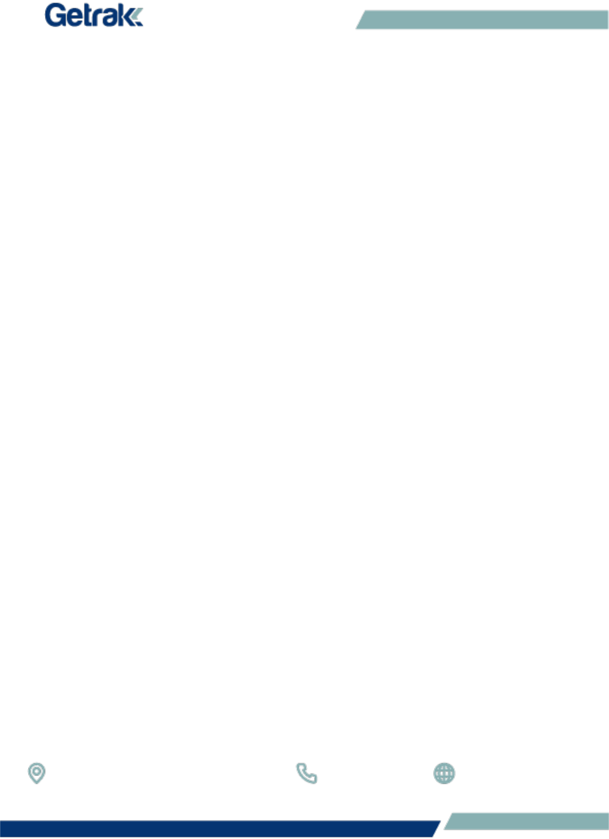 Av. Luiz Paulo Franco, 603 – Belvedere, Belo Horizonte – MG, 30320-570 (31) 3500-3200 www.getrak.com.br TR05 Manual do Usuário (Rev. 1.0) Av. Luiz Paulo Franco, 603 – Belvedere, Belo Horizonte – MG, 30320-570 (31) 3500-3200 www.getrak.com.br 1. INTRODUÇÃO 1.1 Descrição O TR05 é um rastreador GPS que possui dimensões pequenas, além de ser discreto e de fácil instalação. O TR05 foi desenvolvido para utilizar a tecnologia GPS e GPRS. O módulo obtém a localização do veículo com base em triangulação, a partir de satélites da constelação GPS e transmite estes dados para o servidor pré-definido na central de monitoramento via GPRS. Uma outra característica o TR05 possui uma entrada para instalação do Pós Chave e uma saída para acionamento de relé para corte de combustível. 1.2 Características o Ampla faixa de tensão operação: DC 9-30 V o Li-bateria integrada 100mA o Suporta duplo as constelações GPS / BeiDou o Memória interna para armazenamento de pacotes. o Posicionamento em tempo real o Consumo de energia ultrabaixo 1.3 Funções o Rastreamento em tempo real o Acionamento remoto da Saída o Detecção de ACC (status de ignição ligada / desligada) o Alarme de excesso de velocidade o Alarme de vibração Av. Luiz Paulo Franco, 603 – Belvedere, Belo Horizonte – MG, 30320-570 (31) 3500-3200 www.getrak.com.br 2. ESPECIFICAÇÕES TÉCNICAS Energia Tensão de Entrada: 9 – 30v DC Corrente de Trabalho: ~ 22mA (12v DC) ~ 12mA (24v DC) Bateria: 3,7V – 100mAh Indicador Led GSM / GPRS Dimensões 64,5 x 23 x 12,5 mm (comprimento x largura x altura) Peso 50g Temperatura de Operação -20°C ~ 70ºC Umidade de Operação 20% ~80% RH GSM/GPRS Frequência: 850/ 900/ 1800/ 1900 MHz Protocolo de Rede: pilha TCP / IP Dados GPRS: Classe GPRS 12, Estação Móvel classe B GPS Constelações: GPS / BeiDou GPS Canais: 20 canais Partida a Quente: 2s (céu aberto) Partida a Morno: 28s (céu aberto) Partida a Frio: 38s (céu aberto) Precisão: 10 metros (2D RM) 3. INSTALAÇÃO 3.1 Fiação O TR05 possui um chicote de instalação composto com 4 fios, sendo o que é ligado na alimentação positiva possui um fusível de proteção de 2ª Av. Luiz Paulo Franco, 603 – Belvedere, Belo Horizonte – MG, 30320-570 (31) 3500-3200 www.getrak.com.br Cor Sinal Descrição Vermelho 9 – 90v DC Alimentação Preto GND Terra Laranja 9 – 36v DC Ignição Pós Chave Branco GND Saída ligada ao relê de bloqueio. 3.2 Instalação do Sim Card e Ligando o Rastreador O TR05 possui um slote de sim card do tipo 3FF (micro sim card). Para instalação abra a tampa do dispositivo e no slot do cartão do sim card destrave a trava da tampa conforme indicação no próprio slote. Em seguida, insira o sim card na posição indicada e trave a tampa do slote novamente. Caso a chave esteja “OFF”, mude para posição “ON” Av. Luiz Paulo Franco, 603 – Belvedere, Belo Horizonte – MG, 30320-570 (31) 3500-3200 www.getrak.com.br 3.3 Áreas para instalação São exibidas algumas áreas recomendadas disponíveis em um carro que pode ser usado para ocultar o rastreador. Para segurança adicional, você pode instalar em outra área conforme seu desejo. Deve-se atentar apenas que durante a instalação, as antenas do rastreador tem que estarem voltadas para cima, para melhor recepção dos sinais GPS/GPRS. 3.4 Diagrama de ligação. Deve se inserir o plugue de alimentação do rastreador ao chicote de alimentação, somente após a sua instalação. A fonte de alimentação do dispositivo é de 9 - 90v DC. A fio vermelho é polo positivo enquanto o fio preto é polo negativo ou GND. O polo negativo da fonte de alimentação se conecta ao aterramento ou lataria do veículo. Não conecte com outro fio de aterramento. Painel Coluna Dianteira Porta-malas Porta Av. Luiz Paulo Franco, 603 – Belvedere, Belo Horizonte – MG, 30320-570 (31) 3500-3200 www.getrak.com.br O relé de corte do motor é opcional, se necessário, solicite o relé com a tensão correta (12 / 24V) e o instalador deve estar familiarizado com o método de fiação do relé de corte do motor. 3.5 Led de Indicação. Após a instalação correta do rastreador no veículo conforme o passo anterior, observe se o interruptor da bateria de backup esteja em “ON” para garantir que a bateria de reserva esteja disponível. Com isso o rastreador estará ligado e pode-se observar os status do Led: Status do LED: • Fixo: GSM registrado e GPS localizado Relé Vermelho Preto Bomba Combustível Diagrama de Ligação Tensão de Operação: 9 – 90v DC B a te ri a B ra n c o Laranja Conector 4 vias Av. Luiz Paulo Franco, 603 – Belvedere, Belo Horizonte – MG, 30320-570 (31) 3500-3200 www.getrak.com.br • Piscando (0,5s ligado, 1,5s desligado): GSM registrado e GPS não localizado • Piscando (0,5s ligado, 3s desligado): GSM não registrado e GPS localizado • Desligado: GSM não registrado e GPS não localizado 4. COMANDOS SMS DESCRIÇÃO COMANDO SMS RESPOSTA SMS PARAMETROS Configura número administrador CENTER, A, number 1# ADD CENTER OK! Pode cadastrar até 3 números administrativos CENTER, A, número 1, número 2# CENTER, A, número 1, número2, número 3# Deleta número administrador CENTER,D,1# DEL CENTER OK! CENTER,D,13829965094# CENTER,D,2# CENTER,D,13829965095# CENTER,D,3# CENTER,D,13829965096# CENTER,D,9# DEL CENTER OK! CENTER,D,9# Configura APN APN, apn [, usuário, senha]# SET APN OK! 1: APN,smart.m2m.vivo.com.br, vivo,vivo# 2:APN, conexao.getrak.com.br# (sem usuário e senha) Configura IP/DNS e Porta SERVER,8888,IP,port# SET SERVER OK! SERVER,8888,tr05.getrak.co m.br,13008# Configura intervalo de comunicação com ignição ligada TIMER, intervalo de tempo# SET TIMER OK! TIMER,60# Range:0,10 ~ 60 seg; 0, não envia os pacotes de comunicação. Configura intervalo de comunicação com Ignição desligada STATIC, intervalo de tempo# SET STATIC OK! STATIC,1# Range:0,1 ~ 6 horas; 0, não envia os pacotes de comunicaç