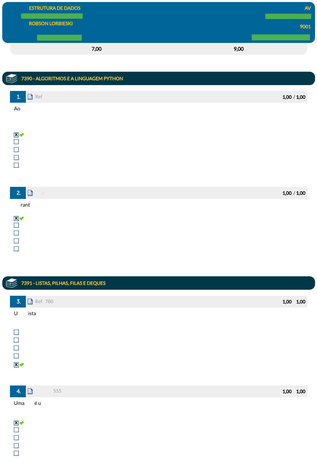 Avaliação: 7,00 pts Nota SIA: 9,00 pts