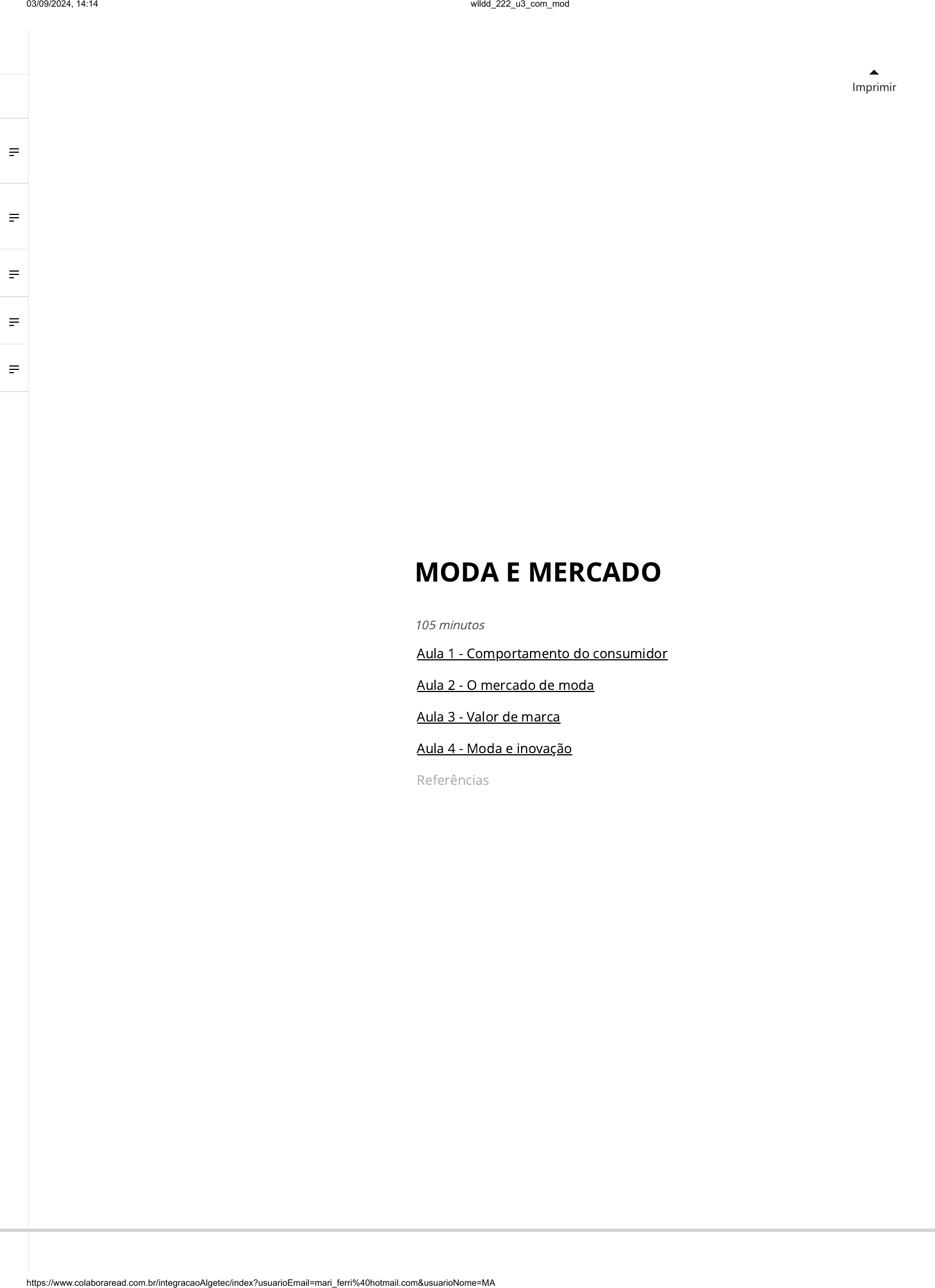 Imprimir MODA E MERCADO 105 minutos Aula 1 - Comportamento do consumidor Aula 2 - O mercado de moda Aula 3 - Valor de marca Aula 4 - Moda e inovação Referências 03/09/2024, 14:14 wlldd_222_u3_com_mod https://www.colaboraread.com.br/integracaoAlgetec/index?usuarioEmail=mari_ferri%40hotmail.com&usuarioNome=MARIANA+FERREIRA&disciplinaDescricao=&atividadeId=4155736&atividadeDescricao=CW3+-+… 1/32 INTRODUÇÃO Prezado estudante! A moda é um dos grandes meios de comunicação da sociedade. As marcas e os consumidores são os protagonistas neste processo e serão os principais temas de estudo da disciplina de Comunicação de Moda. Durante as aulas, você entenderá o potencial do mercado de moda, tanto como gerador de vendas quanto como in�uenciador de comportamentos, e aprenderá conceitos que irão lhe dar a base para comunicar, vender e produzir produtos de moda. Nesta aula, você será apresentado ao papel do consumidor e à sua importância durante o processo de compra, onde ocupa ao mesmo tempo lugar passivo e ativo. Compreender o sistema da moda pode inspirar inovações de mercado e gerar insights importantes para sua carreira. Comece hoje mesmo suas leituras e deixe-se maravilhar pelo mundo da moda. Boa aula e bons estudos! O ESTILO DE VIDA COMO DIRECIONAMENTO PARA O CONSUMO DE MODA Ao escolher um produto em detrimento de outro, a lógica do consumidor vai muito além do preço ou se ele atende a suas demandas. A motivação se encontra muitas vezes em um lugar menos lógico. Alegria, frustração, tristeza, vergonha, culpa, con�ança: são inúmeras as motivações que provêm do campo dos sentimentos, mesmo sem que o sujeito perceba. O consumo se torna, assim, uma extensão da personalidade, e isso �ca ainda mais claro quando se fala da aquisição de produtos de moda, sejam roupas, calçados, bolsas ou acessórios. A função social desses bens está em exteriorizar características daquele que o veste, ou ainda, projetar para o outro como ele gostaria de ser. Como apontado por Façanha e Mesquita (2018) “o comprador passa a consumir além dos produtos, imagens”, que oferecem tanto a possibilidade de diferenciação de seus pares, quanto de pertencimento a um determinado grupo. Aula 1 COMPORTAMENTO DO CONSUMIDOR Nesta aula, você será apresentado ao papel do consumidor e à sua importância durante o processo de compra, onde ocupa ao mesmo tempo lugar passivo e ativo. 25 minutos 03/09/2024, 14:14 wlldd_222_u3_com_mod https://www.colaboraread.com.br/integracaoAlgetec/index?usuarioEmail=mari_ferri%40hotmail.com&usuarioNome=MARIANA+FERREIRA&disciplinaDescricao=&atividadeId=4155736&atividadeDescricao=CW3+-+… 2/32 Durante os anos 1990, popularizou-se na moda o conceito de “tribos urbanas”, a partir do termo cunhado pelo sociólogo francês Michel Ma�esoli (1988). A década trouxe um movimento de identi�cação de estilos de moda muito forte, principalmente entre os jovens, que passaram a assumir identidades semelhantes a partir da escolha de suas roupas. O paralelo com a ideia de tribo era justamente para mostrar uma noção de pertencimento muito forte, que partia da construção de uma imagem de moda. Figura 1 | Exemplo de tribo urbana: Punk Fonte: Unsplash. A globalização e o acesso facilitado à internet e às informações de moda tornam os consumidores mais plurais em seus formatos de expressão, e, com isso, o termo parou de fazer sentido. A moda passa a adotar o termo estilo de vida (do inglês, lifestyle) para categorizar os indivíduos não somente pela sua aparência, mas pelos pilares principais de sua vida, como trabalho, lazer, socialização e hábitos de consumo. Teve início um movimento de perceber que o consumidor busca ser único, mesmo entre seus iguais. A era da moda consumada signi�ca tudo menos uniformização das convicções e dos comportamentos. Por um lado, ela certamente homogeneizou os gostos e os modos de vida [...] mas por um outro lado, desencadeou um processo sem igual de fragmentação dos estilos de vida. — (LIPOVETSKY, 2009, p. 322) 03/09/2024, 14:14 wlldd_222_u3_com_mod https://www.colaboraread.com.br/integracaoAlgetec/index?usuarioEmail=mari_ferri%40hotmail.com&usuarioNome=MARIANA+FERREIRA&disciplinaDescricao=&atividadeId=4155736&atividadeDescricao=CW3+-+… 3/32 O foco do estudo desloca-se do núcleo tribal para esses consumidores singulares, que estão em locais diversos do mundo, com seus estilos de vida peculiares, mas que, ainda assim, apresentam semelhanças em sua forma de vestir. Outro fenômeno atual que não deve ser deixado de lado é que o mesmo cliente pode adotar determinado estilo em um dia e vir a mudá-lo no dia seguinte, ou mesmo mesclar referências diferentes ao mesmo tempo. Figuras 2 e 3 | Como uma mesma peça, no caso o biquíni, pode ser usada por consumidoras com estilos de vida diferentes 03/09/2024, 14:14 wlldd_222_u3_com_mod https://www.colaboraread.com.br/integracaoAlgetec/index?usuarioEmail=mari_ferri%40hotmail.com&usuarioNome=MARIANA+FERREIRA&disciplinaDescricao=&atividadeId=4155736&atividadeDescricao=CW3+-+… 4/32 Fonte: Unsplash. Entender esses movimentos é essencial para que você possa prever o comportamento do consumidor, e assim, saber qual tendência ele buscará em seguida. Isso porque eles fazem parte de um movimento maior, que não abrange somente a moda, mas, sua forma de agir e seu consumo como um todo. Essa é uma expertise que as marcas de sucesso dominam e está localizada na fase inicial da concepção dos produtos de moda, durante a pesquisa. Tal mapeamento possibilita que uma marca atenda uma gama maior de consumidores, por nortear a comunicação de um mesmo produto para diferentes tipos de per�s. RELACIONAMENTO ENTRE CONSUMIDOR E MARCA DE MODA Como pro�ssional que atua na comunicação de moda, a primeira coisa que você precisa saber é que ao realizar uma comunicação efetiva, a marca transforma-se em uma presença que permeia o imaginário do consumidor mes