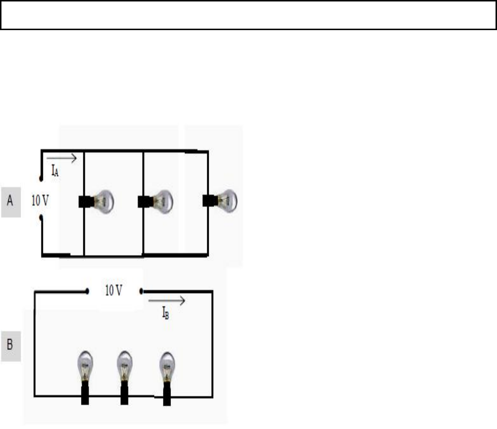 Estudar 011 Questão 1 Em cada circuito da figura, a tensão de alimentação é 10 V e todas as lâmpadas são iguais. A análise desses circuitos nos permite concluir que (A) se uma das lâmpadas em A queimar, a corrente IA não será alterada. (B) se uma das lâmpadas em B queimar, a corrente IB não será alterada. (C) a intensidade de corrente IA é menor que a intensidade de corrente IB. (D) o brilho das lâmpadas em B é maior do que o brilho das lâmpadas em A. (E) sobre qualquer lâmpada de A a d.d.p. é maior do que sobre qualquer lâmpada de B. Gabarito: E Resolução: (A) Incorreta. Se as três lâmpadas estiverem ligadas, cada uma tem a sua potência e está ligada a uma d.d.p. que é a mesma das outras duas. Cada lâmpada tem a mesma corrente, calculada pela potência e pela ddp. Somadas as três partes iguais, tem-se um valor IA. A corrente se divide em três valores iguais i. Se uma das lâmpadas queimar, tem-se o valor i em apenas duas lâmpadas, logo, o valor total IA’ será menor do que o anterior IA. (B) Incorreta. Se uma das lâmpadas queimar, não haverá corrente, porque a ligação é em série. (C) Incorreta. Tem-se as expressões: P = V2/R (1) e P = V · i (2) Uma forma de verificar esse fato é relativa à resistência equivalente do conjunto de lâmpadas. Se, em A, a ligação está em paralelo, a resistência equivalente será a menor de todas e, portanto, terá a mesma d.d.p. A potência então cresce com o decréscimo da resistência (1), logo a corrente será maior (2). Na ligação em série B, a resistência equivalente será a maior de todas e, portanto, com a d.d.p. total igual à anterior, a potência decresce com o aumento da resistência (1), logo, a corrente será menor (2). Com os números das expressões (1) e (2) alude-se aos conceitos explícitos no texto. (D) Incorreta. A resposta da afirmativa anterior (C) explica que essa afirmativa está incorreta, pois a potência maior em A está relacionada com o brilho das lâmpadas ser maior em A e não em B. Afinal, a potência mede a quantidade de energia por intervalo de tempo, nesse caso dissipada na forma de luz e calor nas lâmpadas. (E) Correta. Na ligação representada por A, que é em paralelo, todas as lâmpadas estarão ligadas em 10 V e, em B, as lâmpadas em série terão d.d.p.s menores que 10 V por lâmpada. Questão 2 Em um determinado acelerador de partículas, uma corrente elétrica de 0,4 mA é devida ao movimento de um feixe de prótons. Considerando a carga elétrica do próton 1,6 · 10–19 C e sabendo- se que o feixe atinge um alvo, o número de prótons que colidirão com o mesmo no intervalo de tempo de 1 segundo vale A) 0,4 · 10–3 B) 2,5 · 1015 C) 6,1 · 1015 D) 5,0 · 10–15 E) 1,6 · 10–19 Gabarito: B Resolução: A corrente elétrica associada ao feixe de prótons pode ser calculada por com n sendo o número de prótons com carga e que passam por uma seção do feixe durante um intervalo de tempo . Dessa forma, prótons Questão 3 Duas lâmpadas incandescentes A e B são ligadas em série a uma pilha, conforme mostra a figura 1. Nesse arranjo, A brilha mais que B. Um novo arranjo é feito, onde a polaridade da pilha é invertida no circuito, conforme mostrado na figura 2. Assinale a opção que descreve a relação entre as resistências elétricas das duas lâmpadas e as suas respectivas luminosidades na nova situação. (A) As resistências elétricas são iguais e, na nova situação, A brilha menos que B. (B) A tem maior resistência elétrica e, na nova situação, brilha menos que B. (C) A tem menor resistência elétrica e, na nova situação, brilha mais que B. (D) A tem menor resistência elétrica e, na nova situação, brilha menos que B. (E) A tem maior resistência elétrica e, na nova situação, brilha mais que B. Gabarito: E Resolução: Na associação em série a corrente é a mesma nas duas lâmpadas. Como a potência dissipada é p = rl2, a lâmpada A, de maior potência dissipada, terá a maior resistência. Ao se trocar a polaridade da pilha, invertendo-se o sentido da corrente, a resistência das lâmpadas continuará a mesma, assim como as suas potências dissipadas. Portanto, nessa nova situação a lâmpada A continua brilhando mais que a B. Questão 4 Dois geradores ideais, de tensões iguais a V, foram ligados a dois resistores iguais, de resistência R, conforme ilustram os circuitos a seguir. Considerando o exposto, a razão da corrente em um dos resistores do circuito (a) pela de um resistor de (b) é: (A) 1/4 (B) 1/2 (C) 1 (D) 2 (E) 4 Gabarito: E Resolução: Em (a), 2 · V = R · i, então i = 2 · V / R Em (b), V = 2 · R · i, então R = V / 2 · i i(a) / R(b) = 2 · V / R / V / 2 · i i(a) / R(b) = 4 · i / R, Razão = 4. Questão 5 Deseja-se construir um circuito elétrico simples, constituído apenas por um resistor de resistência 50 Ω ligado a uma bateria ideal. Qual o valor da força eletromotriz da bateria, caso se deseje uma potência dissipada pelo circuito igual a 0,5 Ω? A) 1 V B) 2 V C) 3 V D) 4 V E) 5 V Gabarito: E Resolução: (Resolução oficial) Um resistor de resistência R = 50 Ω e potência dissipada de P = 0,5 W deve funcionar sob uma corrente elétrica de . Nesse caso, a força eletromotriz da bateria deve ser ε = Ri = 5 V. Questão 6 Em dias frios, o chuveiro elétrico é geralmente regulado para a posição “inverno”. O efeito dessa regulagem é alterar a resistência elétrica do resistor do chuveiro de modo a aquecer mais, e mais rapidamente, a água do banho. Para isso, essa resistência deve ser A) diminuída, aumentando-se o comprimento do resistor. B) aumentada, aumentando-se o comprimento do resistor. C) diminuída, diminuindo-se o comprimento do resistor. D) aumentada, diminuindo-se o comprimento do resistor. E) aumentada, aumentando-se a voltagem nos terminais do resistor. Gabarito: C Resolução: Quando a resistência é diminuída, o comprimento do resistor também diminui. Se a resistê