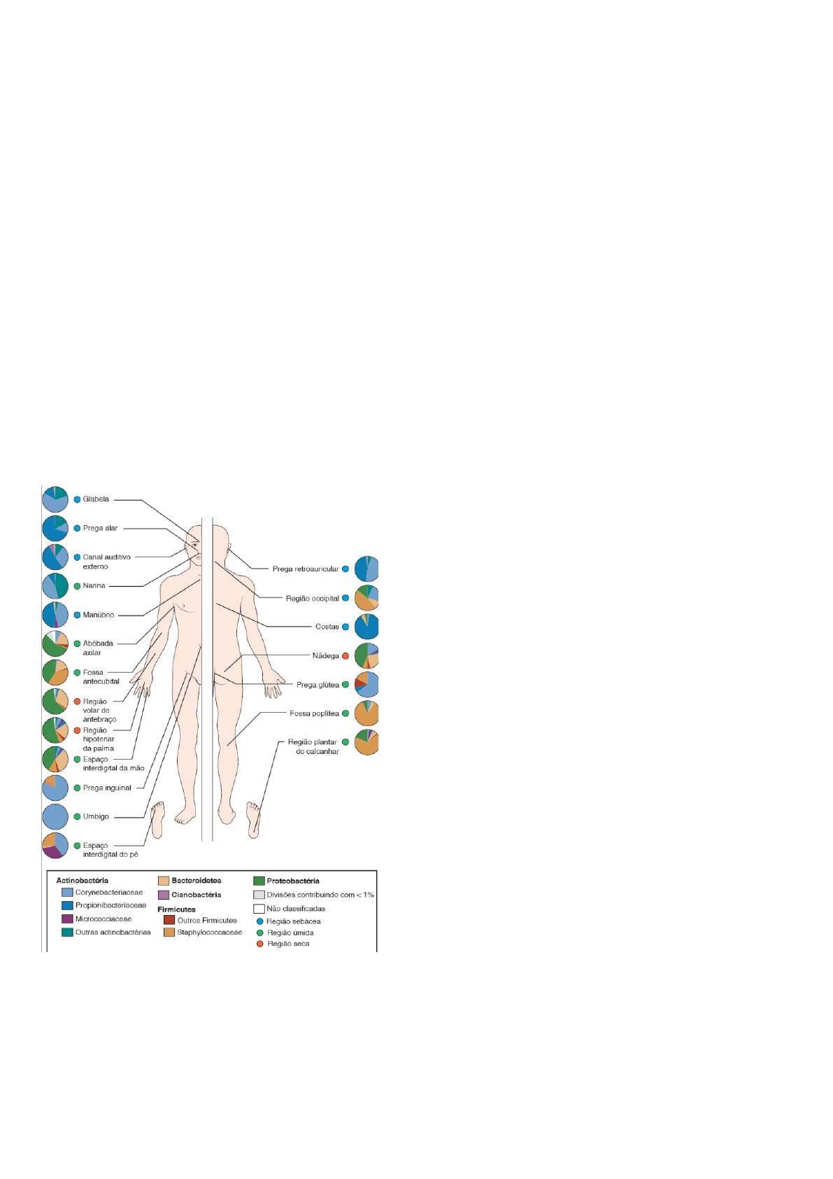 MICROBIOLOGIA - MICROBIOTA A microbiota normal é o conjunto de microrganismos que habitam em várias partes do nosso corpo, entre eles: bactérias e fungos. Estes evoluíram por meio de uma relação simbiótica com o hospedeiro e uma relação competitiva (por exemplo na região vaginal, onde temos a presença dos lactobaccilus e da candida que vivem em uma luta química produzindo produtos fundamentais para manter a homeostase e o pH local) com outras espécies, na qual o hospedeiro fornece um local para colonizar, além de nutrientes e os microrganismos fornecem funções metabólicas necessárias, sendo elas: ● Estimulam a imunidade inata e regulatória; ● Impedem a colonização por patógenos indesejáveis; ● Auxiliam na homeostase. A distribuição das bactérias na pele varia de acordo com o microbioma do sítio, nesse caso divididos em: sebáceo ou oleoso, úmido e seco. Composição da microbiota A composição da microbiota é influenciada pela higiene pessoal, (por exemplo: uso de sabonete, desodorantes, enxaguantes bucais, descamação da pele, enemas, duchas vaginais), dieta, medicamentos (principalmente antimicrobianos) e exposição a toxinas ambientais. Obs: o uso excessivo de duchas vaginais e sabonetes pode causar um desvio da flora vaginal, resultando em uma vaginose bacteriana (ocorre uma redução nos níveis dos lactobacillus, que são importantes para manter um ambiente ácido na vagina, e um aumento no crescimento de outras bactérias) ou fúngica (também conhecida como candidíase vaginal, é uma infecção vaginal causada pelo crescimento excessivo do fungo Candida albicans na vagina). Os sintomas nesses casos podem variar, mas geralmente incluem: 1. Corrimento vaginal espesso, branco e semelhante a coalhada; 2. Odor; 3. Coceira ou irritação vaginal; 4. Desconforto durante a micção ou relação sexual; Determinantes da microbiota Existem vários mecanismos que determinam a composição e a diversidade do microbioma, incluindo: ● Nascimento: A composição inicial do microbioma é influenciada pelos microrganismos transmitidos da mãe para o filho durante o parto e a amamentação. ➔ Parto normal: durante o parto normal, o bebê passa pelo canal vaginal da mãe, onde é exposto a uma variedade de microrganismos, incluindo bactérias benéficas como Lactobacillus. Essas bactérias formam uma parte importante do microbioma inicial do bebê. ➔ Parto cesárea: bebês nascidos por cesariana não são expostos aos microrganismos do canal vaginal da mãe, sendo seu primeiro contato geralmente com microrganismos encontrados na pele da mãe resultando em uma colonização inicial do microbioma por bactérias do gênero Staphylococcus, que são mais comuns na pele. ➔ Aleitamento materno: O leite materno é uma fonte rica de nutrientes e bioativos que promovem o crescimento de microrganismos benéficos no trato gastrointestinal do bebê. Além disso, o leite materno contém uma grande quantidade de bactérias vivas, sendo elas: Bifidobacterium e Lactobacillus, que são importantes para o desenvolvimento do microbioma intestinal do bebê. O leite materno também contém fatores imunológicos, como anticorpos e células imunológicas, que ajudam a modular a resposta imunológica do bebê e a protegê-lo contra infecções. Obs: as fórmulas infantis são projetadas para fornecer uma nutrição adequada para o bebê, mas não possui a mesma composição do leite materno, conferindo nenhuma imunidade e queda na microbiota inicial do bebê. ● Genética do hospedeiro: o perfil genético do hospedeiro pode influenciar a composição do microbioma. Alguns genes podem predispor uma pessoa a ter certos tipos de microrganismos em seu microbioma. ● Ambiente: Fatores ambientais como dieta, estilo de vida, exposição a agentes antimicrobianos, e até mesmo o ambiente físico em que uma pessoa vive, desempenham um papel crucial na determinação do microbioma. Ex: uma dieta rica em fibras tende a promover o crescimento de certos tipos de bactérias benéficas no intestino. ● Idade: o microbioma humano passa por mudanças significativas ao longo da vida. Por exemplo, o microbioma de um recém-nascido é bastante diferente do microbioma de um adulto, e essas mudanças podem ser influenciadas por diversos fatores. ● Interações microbianas: os próprios microrganismos no microbioma interagem entre si de várias maneiras. Algumas bactérias produzem metabólitos que podem beneficiar outras espécies, enquanto outras competem por recursos limitados. Essas interações afetam a composição do microbioma ao longo do tempo. ● Sistema imunológico: o sistema imunológico do hospedeiro desempenha um papel fundamental na regulação do microbioma, ajudando a manter um equilíbrio entre os microrganismos benéficos e patogênicos, e a resposta imune pode influenciar quais microrganismos serão capazes de colonizar o intestino. Tipos de microbiota ● Microbiota residente (autóctone): é composta pelos microrganismos que residem normalmente no corpo humano por períodos prolongados, às vezes durante toda a vida. Esses microrganismos estabelecem uma relação de simbiose com o hospedeiro, onde ambos se beneficiam mutuamente. Ex: a microbiota residente do trato gastrointestinal é composta por bactérias que ajudam na digestão de alimentos e sintetizam vitaminas essenciais. ● Microbiota transitória (alóctone): consiste em microrganismos que habitam temporariamente um ambiente do corpo humano, mas não se estabelecem permanentemente. Esses microrganismos podem ser adquiridos por meio do contato com o ambiente externo, outros indivíduos ou alimentos. Ex: ao entrar em contato com superfícies contaminadas, podemos adquirir temporariamente microrganismos em nossas mãos que serão removidos após a lavagem. Essa microbiota transitória pode ser facilmente alterada e removida por medidas simples, como a higienização adequada. ● Oportunista: refere-se a microrgani