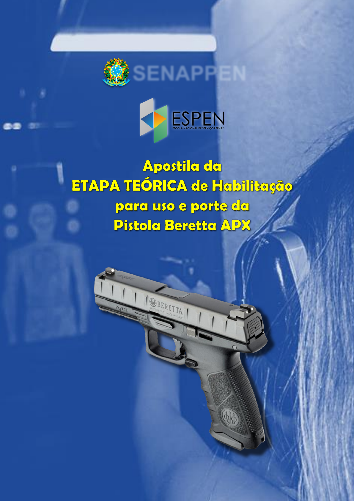 SENAPPEN Apostila da ETAPA TEÓRICA de Habilitação para uso e porte da Pistola Beretta APX SENAPPEN SUMÁRIO 1. INTRODUÇÃO ............................................................................................... 3 2. COMPOSIÇÃO DO KIT PISTOLA ................................................................. 5 3. TERMOS E DEFINIÇÕES .............................................................................. 5 4. REGRAS BÁSICAS DE SEGURANÇA ......................................................... 6 5. CARACTERÍSTICAS TÉCNICAS DO ARMAMENTO ................................... 7 6. PRINCIPAIS PEÇAS EXTERNAS ................................................................. 8 7. CLASSIFICAÇÃO DO ARMAMENTO ........................................................... 9 8. SISTEMAS DE SEGURANÇA ....................................................................... 9 9. ERGONOMIA ............................................................................................... 10 10. ACABAMENTO .......................................................................................... 11 11. IDENTIFICAÇÃO ........................................................................................ 11 12. INSPEÇÃO DE SEGURANÇA ................................................................... 12 13. DESMONTAGEM ....................................................................................... 14 14. PRINCIPAIS PEÇAS .................................................................................. 15 15. TROCA DA TALA DE PUNHO .................................................................. 16 16. REVERSÃO DO RETÉM DO CARREGADOR .......................................... 17 17. MANUTENÇÃO .......................................................................................... 19 18. CONJUNTO DE REPOSIÇÃO ................................................................... 21 19. GARANTIA E ASSISTÊNCIA TÉCNICA .................................................... 22 20. REMONTAGEM.......................................................................................... 23 21. CALIBRE 9 x 19 MM .................................................................................. 23 22. MUNIÇÕES 9X19MM ................................................................................. 25 23. PORTE DE ARMA ...................................................................................... 26 CONSIDERAÇÕES FINAIS ............................................................................... 26 BIBLIOGRAFIA ................................................................................................. 27 NORMATIVOS VIGENTES ................................................................................ 28 Apostila da ETAPA TEÓRICA de Habilitação para uso e porte da Pistola Beretta APX SENAPPEN 1. INTRODUÇÃO As novas pistolas foram adquiridos pelo Departamento Penitenciário Nacional – DEPEN/MJSP, atualmente Secretaria Nacional de Serviços Penais – SENAPPEN/MJSP, por meio da IRP nº 01/2019 da SENASP (08016.013715/2019-83), cujo objeto representava a intenção em adquirir 1.600 (uma mil e seiscentas) pistolas calibre 9 x 19 mm. O pregão de nº 06/2019 ficou suspenso desde o final de 2019, retornando apenas ao final do 2º semestre de 2020 e tendo como vencedora do processo de licitação a fabricante italiana Beretta, com o modelo de pistola APX, em tamanho padrão (standard). Ainda em 2020, a adoção e padronização do calibre 9 x 19 mm para armas de porte (pistolas) pelo Departamento Penitenciário Nacional foi materializada pela publicação da Portaria GAB-DEPEN nº 340, de 20 de agosto de 2020 (14282600), fruto de Estudo Técnico (12328362) produzido por membros da Comissão Técnica de Modernização de Materiais Bélicos (CTMB), composta por servidores do DEPEN. Durante o processo de aquisição, a nova pistola passou por rigorosos testes de qualidade e segurança, sendo submetida aos critérios de avaliação da Norma Técnica-SENASP nº 001/2020 - Pistolas calibre 9x19mm e .40 S&W. Sendo assim, amostras foram sujeitas aos seguintes testes: • a testes de características gerais e metrologia; • testes de intercambiabilidade de peças entre as amostras e aferição da manutenção das funcionalidades; • testes de resistência (endurance), sendo quatro amostras sujeitas a 10.000 (dez mil) tiros cada, sem que fosse realizada a limpeza e manutenção destas; • testes de precisão à 25 (vinte e cinco) metros; • testes de puxada do gatilho; e testes de queda à altura de 2 (dois) metros em 8 posições diferentes. Apostila da ETAPA TEÓRICA de Habilitação para uso e porte da Pistola Beretta APX SENAPPEN Aferindo-se dessa maneira características de segurança, desempenho e emprego requeridas. - Será disponibilizado aos servidores um kit composto por: • 01 maleta de transporte; • 01 pistola; • 04 carregadores; • 03 talas de punho (P/M/G); • 01 manual de instruções e segurança; • 01 escola de nylon e 01 escova de cobre. Tramitam-se processos no Depen, em estágio avançado, relacionado à aquisição de coldres ostensivos, velados e porta carregadores duplo. A substituição das pistolas IMBEL TC MD6 e Taurus 24/7 Police, ambas no calibre .40 S&W, por pistolas Beretta APX, oportunizará melhores perspectivas em eficiência, qualidade, funcionalidade e ergonomia. Por fim, a Portaria Interministerial nº 4.226, de 31 de dezembro de 2010, que estabelece diretrizes sobre o uso da força, em seu Anexo I, elenca nos itens 16 e 17 aspectos importantes quanto à incorporação de novos equipamentos ao acervo institucional, bem como a necessidade de correspondente capacitação dos servidores: • Deverão ser elaborados procedimentos de habilitação para o uso de cada tipo de arma de fogo e instrumento de menor potencial ofensivo que incluam avaliação técnica, psicológica, física e treinamento específico, com previsão d