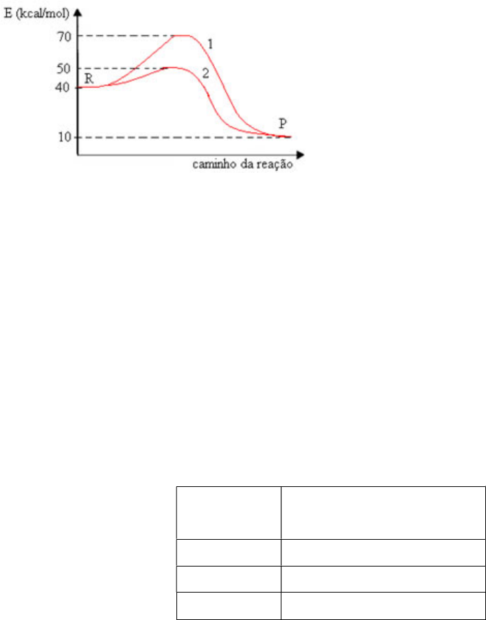 1 Exercícios de Cinética Química 1 – Defina cinética química 2 - Quais são os fatores que podem influencia na velocidade de uma reação química? 2 – Defina energia de ativação e qual é o fator que pode influenciá-la? 3 – Explique o gráfico de variação de entalpia ilustrado abaixo (o que significa o estado de transição, a variação da energia de ativação (∆H*não cat e ∆H*cat) e a variação da entalpia da reação, ∆H). 4 – Explique qual é a importância da temperatura na velocidade das reações? 5 – Defina catalisador e como ele pode influenciar na velocidade da reação? 6 – Certa reação é de primeira ordem em relação a A, segunda ordem em relação a B, e ordem zero com relação a C. Qual a influência sobre a velocidade da reação se duplicarmos a concentração de: (a) [A], (b) [B], (c) [C]? 7 - Ao adicionarmos ferro a uma solução de HCl, ocorre a reação Fe + 2HCl → FeCl2 + H2. Medindo a concentração em quantidade de matéria de HCl, encontramos: Tempo (min) Concentração do HCl (mol/L) 0 0,2 5 0,115 8 0,1 Calcule a velocidade média de consumo de HCl no intervalo de 5 min a 8 min e construa um gráfico da concentração em função do tempo. [R: Vm = 5 x 10-3 mol/Lmin] Estado de transição 1 – reação não catalisada 2 – reação catalisada 2 Dica: observe qual é a menor diferença entre as concentrações ilustradas no gráfico. Esta diferença é útil para utilizar na construção do gráfico. 8 – A velocidade de decréscimo de [A] numa reação foi medida como segue: Tempo, min 0,0 20,0 40,0 60,0 80,0 100,0 [A], mol/L 1,00 0,819 0,670 0,549 0,449 0,368 Construa um gráfico de [A] em função do tempo Calcule a velocidade média da reação entre: a) 40 e 60 min b) 20 e 80 min c) 0 a 100 min 9 – No processo de hidrogenação do acetileno produzindo etano, C2H2 + 2H2 C2H6, é possível afirmar que a velocidade: a) de consumo de C2H2 é o dobro da velocidade de consumo de H2. b) de consumo de H2 é igual à de formação de C2H56. c) de consumo de C2H6 é diferente da velocidade de formação de C2H6. d) de formação de C2H6 é a metade da velocidade de consumo de H2. e) De consumo de C2H2 é igual à de consumo de H2. Explique a tua escolha 10 – A transformação de ozônio em gás oxigênio é dada pela equação abaixo: 2O3(g) 3O2(g) Um químico obteve a curva de concentração de O3 mostrada ao lado: No intervalo entre 10 e 15 min, determine: a) a velocidade média de decomposição do O3(g). b) a velocidade média de formação do O2(g). 0 0,2 0,4 0,6 0,8 1 0 5 10 15 20 [O 3] / m o l/L Tempo / min R: a) 0,04 mol/Lmin e b) 0,06 mol/Lmin 3 11 - As tabelas abaixo mostram concentração de O2 medidas, em duas experiências diferentes, no processo 2KClO3 -> 2KCL(s) + 3O2 (g) Experiência I [O2] mol/L Tempo (min) 0,0 0,0 0,8 10 1,2 20 Experiência II Na presença de MnO2 (g) [O2] mol/L Tempo (min) 0,0 0,0 1,4 10 2,6 20 a) Determine a velocidade média de cada experiência, no intervalo de 10min e 20min b) Qual poderia ter sido a função do MnO2 (g) ? c) Represente as duas curvas de variação do [O2], em função do tempo, em um mesmo diagrama. R: a) Vm(exp I) = 0,04 mol/Lmin e Vm(exp II) = 0,12 mol/Lmin 12 – Dado o processo: 2A + B + 3C produtos foi obtida experimentalmente a seguinte tabela: Experiência [A] (mol/L) [B] (mol/L) [C] (mol/L) Velocidade inicial (mol/L.s) I 0,1 0,2 0,3 0,1 II 0,1 0,4 0,3 0,4 III 0,1 0,4 0,6 0,4 IV 0,2 0,4 0,6 3,2 Com base nessas informações, determine a lei de velocidade da reação. (Esse exercício tem fim meramente didático uma vez que a lei da velocidade expressa pelos valores tabelados não apresenta significado físico) R: v = K[A]3[B]2[C]0 13 – Calcule a ordem das reações, supondo todas elementares e escreva a equação da velocidade das reações: a) 2NO + H2 → N2O + H2O b) 2NO2 → 2NO + O2 14 – Para a reação 2A + B → C + 3D foram obtidos as seguintes velocidades iniciais: [A], mol/L inicial [B], mol/L inicial Vinicial, mol/Ls 0,127 0,346 1,64x10-6 4 0,254 0,346 3,28x10-6 0,254 0,692 1,31x10-5 a) Escreva a equação de velocidade da reação. (b) Calcule o valor da constante de velocidade. (c) Calcule a velocidade de consumo de A, quando [A] = 0,100 mol/L e [B] = 0,200 mol/L. [R: a) v = k[A][B]2; b) k =1,08 x10-4 L2/mol2.s e c) v = 4,32 x 10-7 mol/Ls] 15 – (a) Qual o significado do termo etapa elementar? (b) Qual a diferença entre uma etapa unimolecular e uma bimolecular? 16 – A velocidade de reação CH3COOC2H5(aq) + OH-(aq) → CH3COO-(aq) + C2H5OH(aq) Foi medida a várias temperaturas e os seguintes dados foram coletados: Temperatura (°C) K (mol-1L.s-1) 15 0,0521 25 0,101 35 0,184 45 0,332 Usando esses dados, faça um gráfico ln k versus 1/T. Usando os dados da tabela, determine o valor de Ea. 17 – A energia de ativação de determinada reação é 65,7 kJ/mol. Quantas vezes mais rápida a reação ocorrerá a 50 °C do que a 0°? Dados: R = 8,314 J/K.mol [R: cerce de 88 vezes mais rápida] 18 – (a) Qual é a ideia central do modelo de colisão? (b) Quais fatores determinam se uma colisão entre duas moléculas levarão a uma reação química? (c) De acordo com o modelo de colisão, por que a temperatura afeta o valor da constante de velocidade? 19 – Quando a concentração de 2-bromo-2metil-propano, C4H9Br, dobra, a velocidade da reação C4H9Br(aq) + OH-(aq) → C4H9OH(aq) + Br-(aq) aumenta 2 vezes. Quando as concentrações de C4H9Br e OH- dobram, o aumento da velocidade é o mesmo, isto é, duas vezes. Quais são (a) a ordem dos reagentes, (b) a ordem total da reação e (c) as unidades de k, se a velocidade foi expressa em mols por litro por segundo? 20 – Uma amostra de N2O5 entra em decomposição: 2 N2O5(g) → 4 NO2(g) + O2(g) Qual é o tempo necessário para que a concentração de N2O5 caia de 20,0 mol.L-1 para 2,0 mol.L-1, em 65 0C? Dados, k = 5,2 x 10-3 s-1. 5 R: 7,3 min 21 – Calcule a concentração de N2O que permanece n