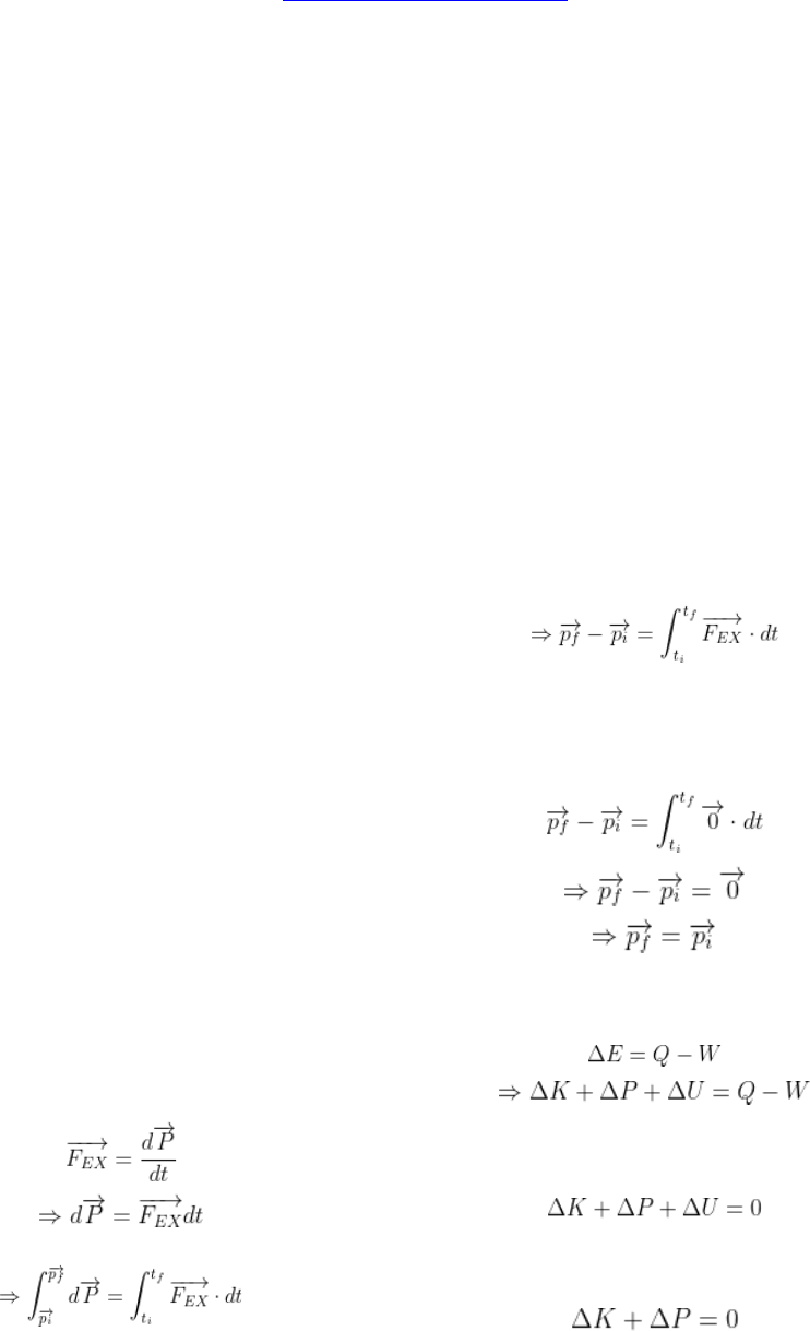 Experimento A5: Colisões Hiago Fernando Vagmaker Gonçalves Curso de Engenharia Civil, Departamento de Física, Universidade Federal do Espírito Santo, Caixa Postal 9011, Vitória, Espírito Santo, 29060-970, Brasil e-mail: hiago.goncalves@edu.ufes.br Código da Disciplina: FIS09057 Resumo. Uma colisão é uma interação de duração finita entre dois ou mais objetos, que podem ser classificados como elásticas ou inelásticas. Neste experimento, dois carrinhos se movendo na mesma direção serão utilizados para estudar tais colisões, visando verificar os princípios de conservação do momento linear e conservação de energia no sistema, bem como estudar a particularidade das colisões elásticas e inelásticas. Para tanto, cálculos baseados nos princípios de momento linear e conservação de energia são utilizados como ferramentas analíticas, levando em consideração suas respectivas incertezas. O procedimento experimental consiste em empurrar dois carros para colidir com outro carro parado sobre uma trilho de ar e medir o tempo de passagem de cada carro através dos sensores S0 e S1 que estão conectados a um multicronômetro. Primeiramente, uma colisão elástica foi reproduzida colocando uma mola na extremidade do carrinho que colide com o outro. Em seguida, a colisão inelástica foi reproduzida colocando uma “lança” na extremidade de um carrinho e um suporte de engate com massa na extremidade do outro carrinho. Medindo-se as massas dos carrinhos e descobrindo suas velocidades mediante os tempos registrados no multicronômetro, pôde-se calcular seus respectivos momentos e energias cinéticas. Com isso, verificou-se que houve a conservação do momento linear tanto na colisão elástica. Já no caso da energia cinética, verificou-se que esta é conservada na colisão elástica, mas que não o é na inelástica. Isso ocorre porque a deformação da massinha durante a colisão dissipa parte da energia cinética inicial, o que faz com que a variação entre a energia cinética final e a inicial seja um valor considerável. Palavras chave: colisão elástica, colisão inelástica, carro, energia. Introdução Uma colisão é uma interação entre dois ou mais objetos. Para estudar o problema da colisão de dois corpos, pode-se estabelecer a relação entre os estados do sistema antes e depois da colisão, que é obtida considerando as leis de conservação da física. Este experimento tem como objetivo verificar a conservação do momento linear e da energia cinética para um sistema isolado, composto por dois carrinhos que se colidiram entre si. Uma grandeza física, como a energia por exemplo, será preservada quando, durante uma mudança no sistema, sua variação for zero, ou seja, seu valor no estado inicial for igual ao seu valor no estado final. Pode-se deduzir o princípio da conservação de momento linear usando a Segunda Lei de Newton, sob a condição de não haver forças externas atuando no sistema, tal como é mostrado a seguir. Integrando dos dois lados. Como não existe força externa atuando no sistema, tem-se. desenvolvendo a equação considerando essa premissa, sabe-se que o momento linear se conservará. Quanto a conservação da energia cinética, parte- se do balanço energético do sistema, baseado na lei da termodinâmica. Considerando que o sistema seja fechado e isolado, não havendo transferência de calor nem de trabalho entre o sistema e a vizinhança, então. Caso a variação da energia interna seja nula, não havendo variações de temperatura ou pressão no sistema, então. mailto:hiago.goncalves@edu.ufes.br Em colisões de partículas, pode-se considerar que, imediatamente antes e após a colisão, a variação de energia potencial é desprezível. Portanto, haverá conservação de energia cinética em uma colisão desde que não haja nenhuma perda de energia devido à deformação dos corpos nesse processo. Logo, só haverá conservação de energia cinética se a colisão for perfeitamente elástica. Como visto anteriormente, pela própria definição, conforme a Segunda Lei de Newton, só há variação de momento linear mediante a aplicação de uma força externa. As forças internas não influenciam, pois, o momento linear total de um sistema, uma vez que estão associadas a pares ação-reação que se anulam mutuamente. Considere dois carrinhos de massa m1 e m2, cujas velocidades iniciais são v1i e v2i, respectivamente, e as finais são v1f e v2f. Aplicando o princípio da conservação do momento linear. Como o carrinho de massa m2 está inicialmente em repouso, então. Dado que o movimento dos carrinhos é unidimensional, isto é, as velocidades e os momentos lineares estão na mesma direção, pode-se tratá-los como escalares nos cálculos, ressalvando-se que o sinal destes representa seu sentido segundo o eixo de referência adotado. Se a colisão for totalmente elástica, então, pela conservação de energia cinética, tem-se que. Desta forma, obtém-se que. Substituindo a equação acima na de conservação de momento linear, segue que. E posteriormente. Caso a colisão seja totalmente inelástica, os carrinhos ficam unidos um ao outro após o choque. Logo, v1f = v2f = vf. Aplicando isso à equação da conservação do momento linear e fazendo o seu desenvolvimento, conclui-se que. A energia cinética final do sistema é dada por. Sabendo vf, fica simples e metódico encontrar Kf. Voltando ao balanço de energia citado anteriormente e substituindo a equação encontrada de Kf, constata-se que. Conclui-se que, para o momento linear se conservar, basta que não haja forças externas agindo sobre o sistema. Porém, é possível que entre o início e fim do experimento, haja perdas significativas de energia, como por exemplo a perda de energia cinética no sistema, peculiar da colisão inelástica. Procedimento Experimental Para o ensaio referente a colisão elástica, primeiramente, nivelou-se o trilho de ar para que 