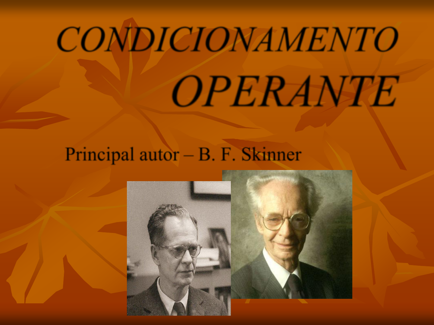 * CONDICIONAMENTO OPERANTE Principal autor – B. F. Skinner * O QUE É UM COMPORTAMENTO OPERANTE? É um comportamento voluntário (não vamos nos referir mais em respostas eliciadas, não escolhidas) Este comportamento produz consequências (modificações no ambiente) e é afetado por elas. * Tabela 3.1, p. 48 * LEI DO EFEITO - Thorndike Experimento com gatos Skinner deu continuidade * A consequência é a mola mestra do comportamento * O efeito das consequências aparecem tanto para comportamento adequados quanto para os inadequados (p. 49, tabela 3.2) * A partir daí, discute-se o que o senso comum chama de “a natureza da pessoa”. * Aplicações para a terapia: muitas vezes influencia-se no meio do paciente, por exemplo, na terapia infantil. * REFORÇO É um tipo de consequência que aumenta a probabilidade de um determinado comportamento voltar a ocorrer. * E REFORÇAMENTO? É o processo pelo qual o comportamento se mantém ou aumenta de frequência. CONTINGÊNCIA DE REFORÇO? São alterações no ambiente que aumentam a probabilidade de um comportamento ocorrer (relação entre organismo e ambiente) * Dá para afirmar que um estímulo é por si só reforçador? NÃO! Dependo do que ele significa para o indivíduo. Ex.: comida, quando se está com fome ou não está. * REFORÇADOR NATURAL / ARTIFICIAL Natural – a consequência reforçadora é consequência direta do próprio comportamento (Ex.: pessoa tocando violão sozinha dentro de casa); Artificial (ou reforçamento arbitrário)– a consequência reforçadora é consequência indireta do mesmo (Ex.: pessoa tocando violão em um bar, sendo remunerada para isto). * DISCUSSÃO SOBRE A “CHANTAGEM” COM CRIANÇAS “Se eu fizer isto, eu te dou aquilo” – está correto? O que acontece com reforçadores de longo prazo? Produz menor motivação. Qual é o efeito de sermos reforçados artificialmente? Facilmente obtemos também reforçamento natural. * OUTROS EFEITOS DO REFORÇO Diminuição da frequência de outros comportamentos. Exemplo do texto, se estamos conversando com alguém em um bar, não prestamos tanta atenção no ambiente de fora. Experimento em laboratório Exemplos de aplicação clínica * 2. Diminuição da variabilidade na topografia do comportamento Quanto mais o comportamento for bem sucedido, mais será parecido com o anterior Se você prestar atenção, a forma como você escreve, dirige, fala, etc., é quase sempre bem parecida. OUTROS EFEITOS DO REFORÇO * As consequências podem vir de dentro ou de fora do indivíduo Questão dos valores pessoais Por que Condicionamen- to Operante? (ou instru- mental) * A velocidade da aquisição do comportamento depende... Complexidade do comportamento; Capacidades do indivíduo; Reforçadores envolvidos. * TIPOS DE REFORÇAMENTO POSITIVO – o comportamento se mantém, ou aumenta de frequência, porque o indivíduo ganha um estímulo bom; NEGATIVO - o comportamento se mantém, ou aumenta de frequência, porque o indivíduo se livra de um estímulo ruim. * O REFORÇAMENTO POSITIVO As pessoas preferem aprender assim É o melhor método de aprendizagem, é agradável. Ex.: crianças, quando são cooperativas, amigas, recebem reforço dos pais: provavelmente terá prazer em tratar os outros bem * REFORÇAMENTO POSITIVO Criatividade: a pessoa é reforçada quando faz algo diferente, coisas não habituais; Algumas pessoas dão mais reforçamento positivo do que outras – tendem a ser consideradas mais simpáticas. Outras contam mais as faltas e inadequações. * REFORÇAMENTO POSITIVO Também pode vir de meios não sociais: * soco na TV que estagou; * pessoa aprendendo a usar um celular novo; * aprender a abrir uma lata de creme de leite. * uma forma de dirigir * * * * * * * * * * * * * * * * * * *