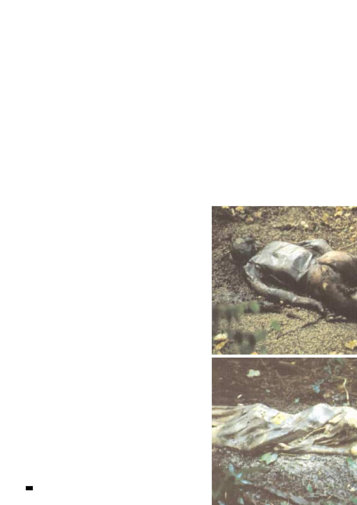 micróbios em nosso explica o papel do Arpad Vass corpos após a morte. Para um fim. Forense antropólogo vidas humanas vêm Eventualmente tudo substância branca, gordurosa e semelhante a cera. A adipocere se desenvolve como eventualmente afeta todas as células do corpo. Autólise fungos e protozoários) e resulta no catabolismo de geralmente purga do reto, mas pode ser grave o suficiente para rasgar a pele, causando lesões post-mortem adicionais. Logo após a purga dos gases devido à putrefação, começa a decomposição ativa. principalmente no intestino, liberando subprodutos ricos em bactérias estão presentes em grande número, atividade de insetos de oxigênio, o dióxido de carbono no sangue aumenta, ocorre após o início da putrefação em ambientes quentes, úmidos, e um alto teor de água, como o cérebro, mas pode começar. o processo começa e progride mais rapidamente nos tecidos em decomposição. A decomposição rápida é indicada por um mortis). Depois que um número suficiente de células se rompeu, células ricas em nutrientes metano, amônia, dióxido de enxofre e hidrogênio), é governado por um processo chamado autólise – Saponificação (a formação de sabão a partir da gordura sob cadaverina e vários ácidos graxos foram detectados e são produtos de decomposição significativos. Neste ponto do ciclo de decaimento, os eletrólitos são rapidamente ácidos graxos voláteis adicionais através da ação bacteriana. A decomposição adicional de proteínas e gorduras produz compostos fenólicos e gliceróis. Compostos, •A decomposição humana começa aproximadamente romper e liberar fluidos ricos em nutrientes. Esse descoloração da pele (livor mortis) e celular é muito proeminente e os carnívoros podem contribuir progride para distensão dos tecidos devido à formação complexo é formado quando ligado ao potássio geralmente não se torna visualmente aparente para alguns (a partir da quebra das membranas celulares), potencialmente tecido em gases, líquidos e moléculas simples. Músculo, composto de proteína, que por sua vez é composto (lipases, proteases, amilases, etc.) começam a dissolver o resultado da hidrólise das gorduras com liberação de ácidos graxos. 4 minutos após a morte ter ocorrido. O início O pH diminui e acumulam-se resíduos que envenenam os ambientes e são vistos como depósitos de células amareladas. Concomitantemente, enzimas celulares não controladas (principalmente de fluidos intersticiais), mas um líquido macio e pastoso A putrefação é a destruição dos tecidos moles do corpo pela ação de microrganismos (bactérias, ácidos graxos voláteis, principalmente ácidos butírico e propiônico. Acúmulo de gases e líquidos nos intestinos fluidos ficam disponíveis e o processo de putrefação especialmente nos intestinos, mas já vi isso em muitas partes do corpo, incluindo rosto, lábios e virilha. Isto está associado à fermentação anaeróbica, lixiviação do corpo, tanto aeróbica quanto anaeróbica ou autodigestão. Como as células do corpo são privadas de condições de pH elevado) ou formação de adipocere normalmente que têm um alto teor de enzimas (como o fígado), composição dura e quebradiça se ligados ao sódio significativamente para o declínio do cadáver. ao qual está vinculado e fornece alguma indicação sobre a taxa o citoplasma gelificou devido ao aumento da acidez (rigor de vários gases (sulfeto de hidrogênio, dióxido de carbono, incluindo indol, 3-metilindol (escatol), putrescina, Normalmente, o primeiro sinal visível de putrefação é uma descoloração esverdeada da pele devido à formação de sulfemoglobina no sangue sedimentado. O processo de aminoácidos, cede prontamente à formação de as células de dentro para fora, eventualmente fazendo com que a consistência da adipocere varie com o tipo de material a ser dias. É observado pela primeira vez pelo aparecimento de bolhas cheias de líquido na pele e pelo deslizamento da pele, onde grandes camadas de pele se desprendem do corpo. Enquanto isso, o corpo se aclimatou à temperatura ambiente (algor mortis), o sangue se instalou no corpo causando decomposição humana Além do túmulo – compreensão Arpad A. Vass 190 MICROBIOLOGIA HOJE VOL 28/NOV 01 Machine Translated by Google MICROBIOLOGIAHOJEVOL 28/01 NOV 191 ESQUERDA: Exemplos de dois estágios de decomposição humana. A fotografia superior mostra um sujeito do sexo masculino em decadência ativa após 12 dias. A fotografia inferior mostra o mesmo sujeito após 97 dias na fase seca de decomposição onde resta apenas a pele mumificada. Nas regiões temperadas dos Estados Unidos, os indivíduos podem ser completamente esqueletizados em 30 a 40 dias no verão. A atividade carnívora é outro fator que pode afetar radicalmente a decomposição. A exclusão de insectos e carnívoros retardará o processo, enquanto a exposição a muitos (ou maiores) carnívoros aumentará a taxa. Lembre-se de que a decomposição não termina após o desaparecimento do tecido mole. O esqueleto também possui uma taxa de decomposição que se baseia na perda de componentes orgânicos (colágeno) e inorgânicos. Alguns dos compostos inorgânicos que usamos para determinar o tempo desde a morte incluem cálcio, potássio e magnésio. Tal como acontece com os tecidos moles, estes são lixiviados do osso a uma taxa determinada principalmente pela temperatura e exposição à umidade. Como regra geral, os ossos, no primeiro ano, começarão a branquear e poderá observar o crescimento de algas ou musgo neles. Na primeira década será esperado ver esfoliação e formação de grandes fissuras no osso. Raízes da vegetação próxima podem crescer na massa óssea, haverá presença de roedores significativos e o aparecimento de quedas anuais de folhas é evidente. O osso passa por outro processo complexo chamado diagênese. A diagênese é um processo natural que serve para alterar 