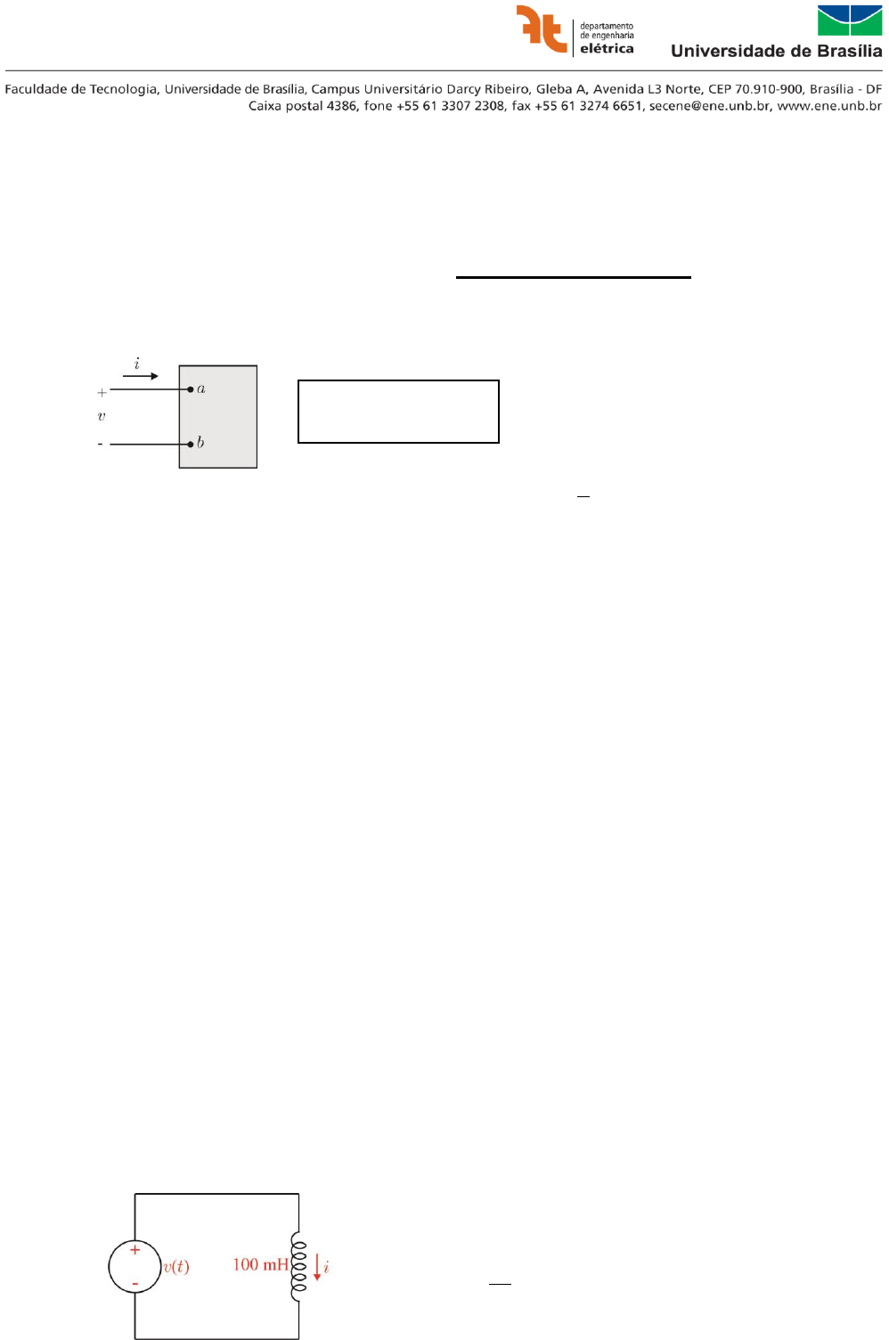 axax eax a dxxe )1( 1 :DICA 2 Disciplina: 100986 – Eletricidade Básica Professor: Felipe V. Lopes Semestre: 2016.2 Lista de Exercícios UNIDADES 1 e 2 Questão 1 A corrente que atravessa o elemento ilustrado na figura a seguir é dada por: Calcule a carga total que entra no terminal do elemento. cxcx e c dxe 1 :OBS . RESP: 4 C. Questão 2 Determine a carga total que entra em um terminal entre os instantes t = 1 s e t = 2 s se a corrente que passa pelo terminal é i = (3t2 – t) ampères. RESP: 5,5 C. Questão 3 O motor de uma máquina de lavar roupa consome 1200 W. Qual a energia em quilowatts-hora gasta em uma semana por uma lavanderia que dispõe de 8 máquinas, se todas elas forem utilizadas durante 10 horas por dia (h/dia) em 6 dias da semana? RESP: 576 kWh. Questão 4 Considere que a tensão sobre um elemento passivo seja v(t) = 8e-t [V] e a corrente seja i(t) = 20e-t [A] para t ≥ 0 s. Determine a potência absorvida e a energia absorvida pelo elemento no primeiro segundo de operação. Assuma que a corrente e a tensão são nulas para t 0 s. (Assuma i(0) = 0 A). RESP: i(t) = 2(1 – 10.t.e-10t – e-10t) [A]. A 200 A 00 5teist ist 2 Questão 7 A tensão entre os terminais de um capacitor de capacitância 0,6 μF é 0 para t
