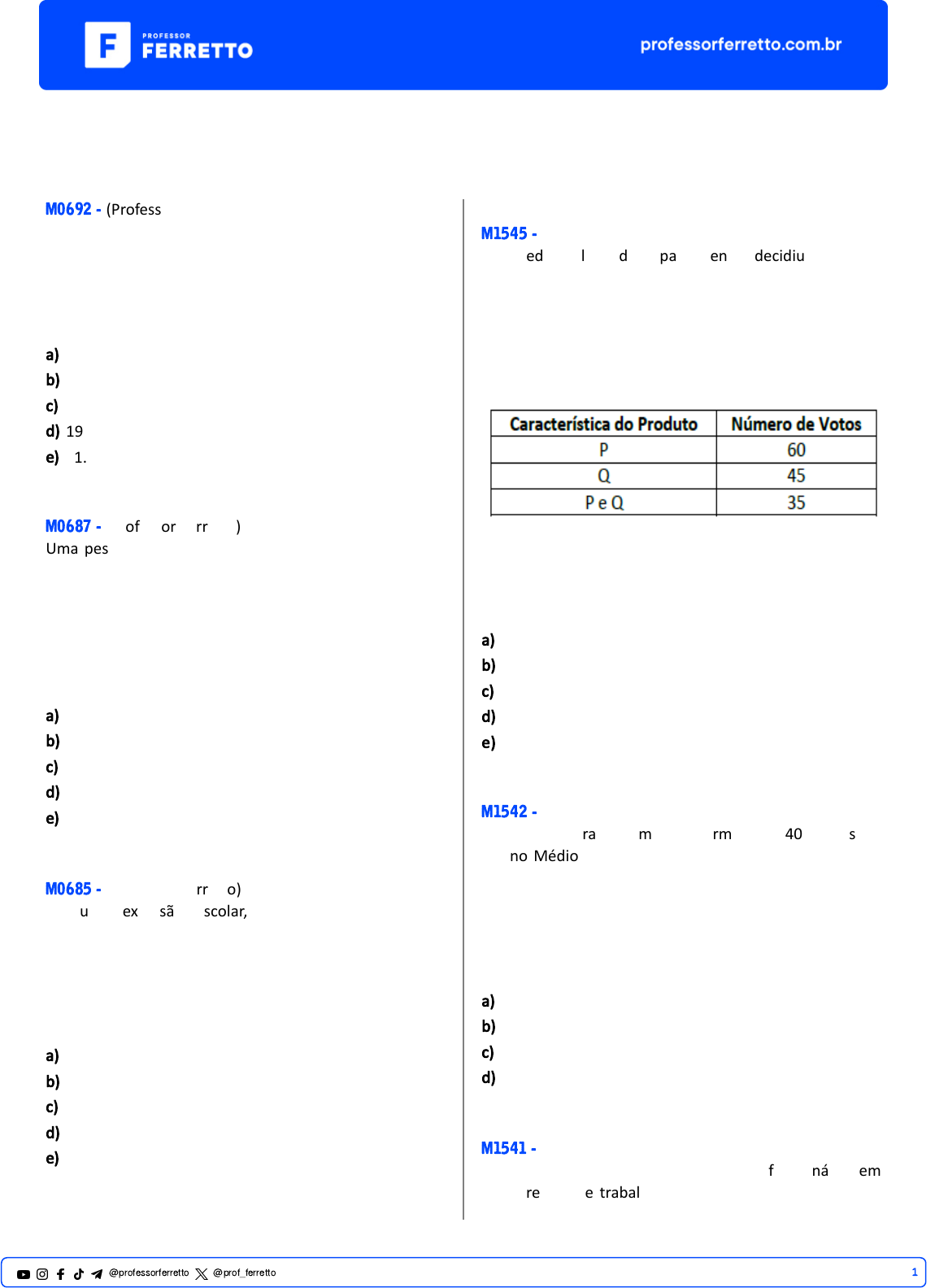 Uma pesquisa realizada com 245 alunos de uma escola,