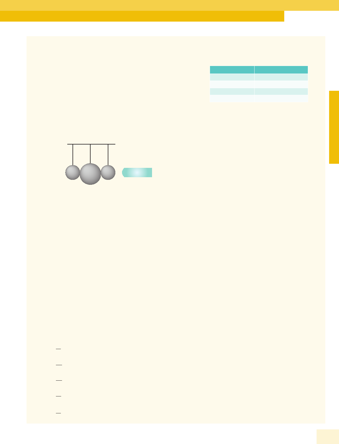 09. (FCM-PB–2016) Um corpo, originalmente neutro, ao ganhar 2 . 105 elétrons, assumirá qual carga? Dado: e = +/– 1,6 . 10–19 C. A) +3,2 . 10–14 C B) –1,25 . 10–14 C C) +1,25 . 10–14 C D) –3,2 . 10–14 C E) –1,25 . 10–24 C 10. (UFJF-MG) Três esferas metálicas neutras, eletricamente isoladas do ambiente, estão encostadas umas nas outras com seus centros alinhados. Carrega-se um dos extremos de um bastão de vidro positivamente. Este extremo carregado é aproximado a uma das esferas ao longo da linha formada por seus centros (veja a figura a seguir para uma ilustração). + Mantendo o bastão próximo, mas sem que ele toque nas esferas, estas são afastadas umas das outras, sem que se lhes toque, continuando ao longo da mesma linha que formavam enquanto estavam juntas. Podemos afirmar que após afastar-se o bastão, as esferas ficam A) duas delas com carga positiva e uma com carga negativa. B) duas delas neutras e uma com carga positiva. C) uma neutra, uma com carga positiva e uma com carga negativa. D) duas neutras e uma com carga negativa. 11. (UESPI) Uma pequena esfera condutora A, no vácuo, possui inicialmente carga elétrica Q. Ela é posta em contato com outra esfera, idêntica a ela, porém, neutra, e ambas são separadas após o equilíbrio eletrostático ter sido atingido. Esse procedimento é repetido mais 10 vezes, envolvendo outras 10 esferas idênticas à esfera A, todas inicialmente neutras. Ao final, a carga da esfera A é igual a: A) Q 29 B) Q 210 C) Q 211 D) Q 10 E) Q 11 PTA8 KNQ4 U18P 12. (FAMECA-SP) Quatro esferas metálicas idênticas, A, B, C e D, estão inicialmente carregadas com cargas elétricas cujos valores estão indicados na tabela. Corpo Carga (C) A –2 . 1019 . e B +6 . 1018 . e C –5 . 1018 . e D –7 . 1018 . e Realiza-se a seguinte sequência de contatos: • A toca B, mantendo-se C e D à distância; as esferas são separadas. • C toca D, mantendo-se A e B à distância; as esferas são separadas. • A toca C, mantendo-se B e D à distância; as esferas são separadas. Sendo e = 1,6 . 10–19 C o valor da carga elétrica elementar, é correto afirmar que após a sequência de contatos indicados, a carga elétrica adquirida pela esfera A, em coulombs, é um valor aproximado de: A) –100 B) –1 C) +100 D) +10 E) –10 seção eneM 01. Durante o voo, devido ao atrito com o ar, as abelhas se eletrizam positivamente. Ao pousar em uma flor, o corpo de uma abelha induz uma separação de cargas elétricas nos grãos de pólen da flor. Nessa condição, os grãos, apesar de continuarem neutros, são atraídos eletricamente pela abelha, e muitos saltam para o corpo do inseto. De acordo com o texto anterior, é correto afirmar que os grãos de pólen, depois que chegam à abelha, A) se eletrizam negativamente, aderindo ainda mais ao corpo do inseto, que, eletrizado positivamente, aumenta a atração elétrica sobre os grãos. B) continuam neutros, com a mesma separação de cargas, de maneira que a força de atração elétrica do inseto sobre os grãos continua existindo. C) continuam neutros, mas a separação de cargas desaparece, de maneira que a força de atração elétrica entre o inseto e os grãos desaparece. D) se eletrizam positivamente, e são repelidos eletricamente pelo inseto, que os retém através de cerdas que revestem o seu corpo. E) se eletrizam positivamente, e são repelidos eletricamente pelo inseto, caindo na terra logo depois que tocam no corpo do inseto. FCON Eletrização FÍ SI C A 81Bernoulli Sistema de Ensino 6VPRV1_FIS_BOOK.indb 81 26/09/18 13:48 GABARITO Aprendizagem Acertei ______ Errei ______ 01. B 02. E 03. A 04. E 05. D 06. D 07. E 08. C Propostos Acertei ______ Errei ______ 01. A 02. B 03. B 04. B 05. B 06. E 07. A 08. 49 µC 09. D 10. C 11. C 12. B Seção Enem Acertei ______ Errei ______ 01. D 02. A Meu aproveitamento Total dos meus acertos: _____ de _____ . ______ % 02. O eletroscópio é um dispositivo usado para detectar se um corpo está eletricamente carregado e, em determinadas situações, pode ser útil para descobrir o sinal da carga desse corpo. O primeiro eletroscópio de que se tem notícia foi inventado por William Gilbert (1544-1603). Atualmente, o eletroscópio de folhas é bastante utilizado. Tal dispositivo consiste, basicamente, de uma esfera condutora presa a uma haste condutora, que tem na extremidade inferior duas folhas metálicas leves e flexíveis. Considere um eletroscópio previamente eletrizado com carga –Q, de forma que todo o seu corpo (esfera, haste e folhas) apresente cargas negativas em excesso. Dessa forma, as folhas do eletroscópio estão afastadas por repulsão elétrica. À medida que um objeto metálico, carregado positivamente, com carga +Q, se aproxima da esfera do eletroscópio, sem tocá-la, as suas folhas se fecham cada vez mais. Isso acontece porque A) o objeto atrai parte das cargas negativas que estão nas folhas do eletroscópio, essas sobem para a esfera e, dessa forma, a quantidade de cargas negativas nas folhas diminui. B) o objeto repele parte das cargas positivas da esfera metálica, essas descem para as folhas e, dessa forma, vão neutralizando as cargas negativas ali existentes. C) a carga total do sistema (eletroscópio-objeto) é igual a zero e, pelo Princípio de Conservação das Cargas, a carga do eletroscópio deve tender a zero. D) as cargas negativas do eletroscópio vão se transferindo, gradualmente, para o objeto metálico e, dessa forma, a quantidade de cargas nas folhas diminui. E) as cargas positivas do objeto metálico vão se transferindo, gradualmente, para o eletroscópio e, dessa forma, vão anulando as cargas contidas nas folhas, que tendem a se fechar. Frente C Módulo 01 82 Coleção 6V 6VPRV1_FIS_C01.indd 82 16/10/18 08:25