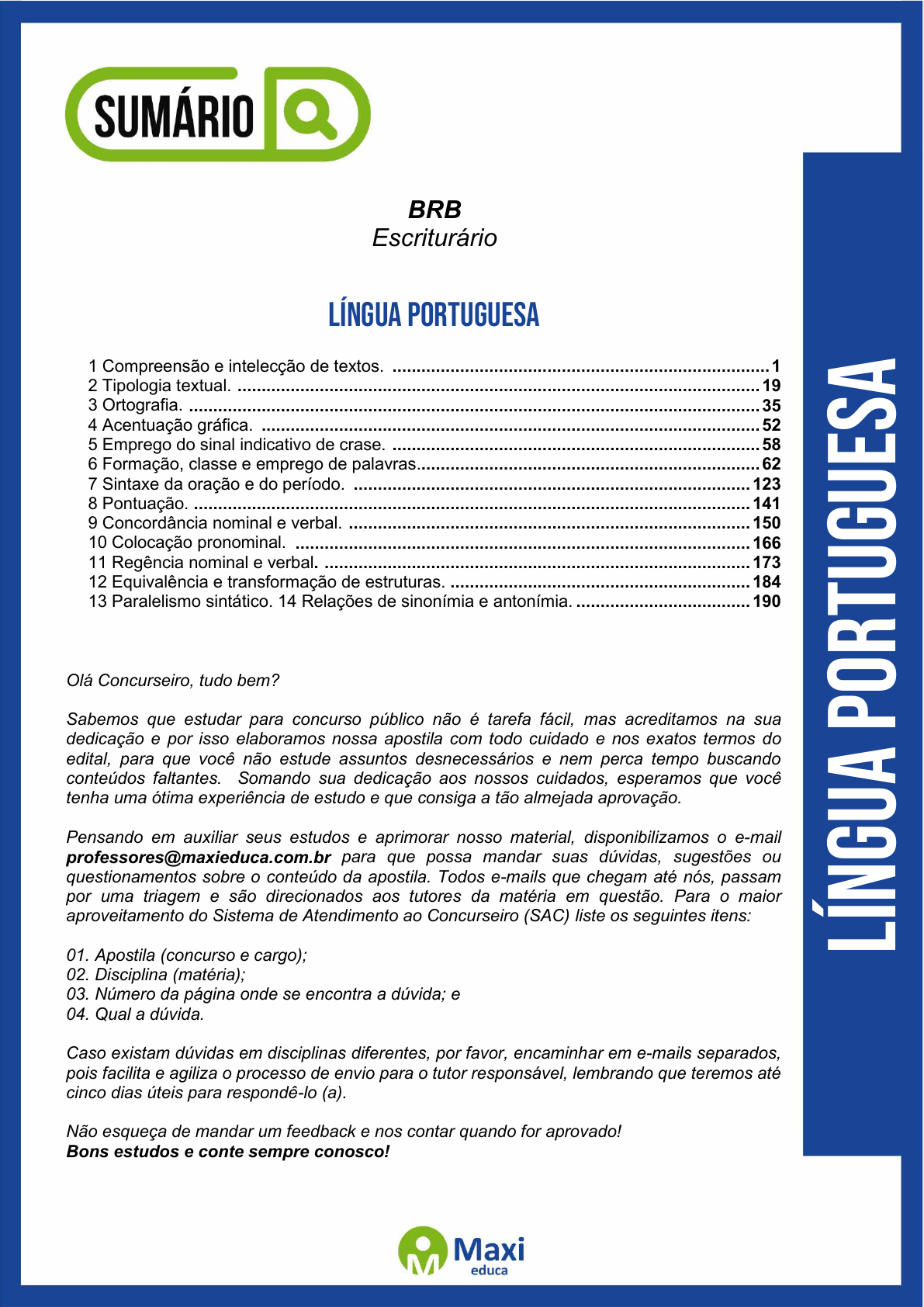 13 Paralelismo sintático. 14 Relações de sinonímia e antonímia. .................................... 190