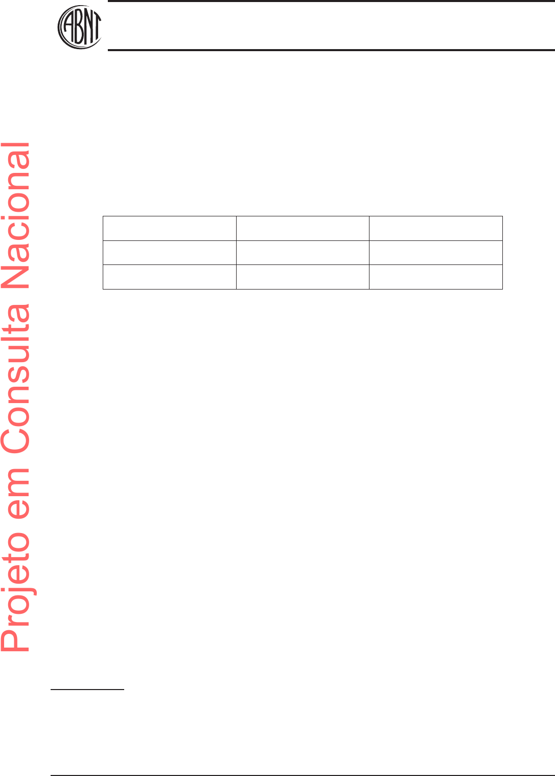 © ABNT 2023 Todos os direitos reservados. Salvo disposição em contrário, nenhuma parte desta publicação pode ser modificada ou utilizada de outra forma que altere seu conteúdo. Esta publicação não é um documento normativo e tem apenas a incumbência de permitir uma consulta prévia ao assunto tratado. Não é autorizado postar na internet ou intranet sem prévia permissão por escrito. A permissão pode ser solicitada aos meios de comunicação da ABNT. NÃO TEM VALOR NORMATIVO ABNT/CB-032 PROJETO ABNT NBR 17151 OUT 2023 Equipamentos dos sistemas de proteção individual contra quedas (SPIQ) — Requisitos gerais para instruções de uso, manutenção, inspeção periódica, reparo, marcação e embalagem APRESENTAÇÃO 1) Este Projeto foi elaborado pela Comissão de Estudo de Aspectos Gerais de Equipamentos de Proteção contra Quedas (CE-032.004.001) do Comitê Brasileiro de Equipamentos de Proteção Individual (ABNT/CB-032), com número de Texto-Base 032:004.001-001, nas reuniões de: 09.03.2022 06.04.2022 11.05.2022 15.06.2022 05.07.2022 16.08.2022 29.09.2022 10.08.2023 a) é baseado na EN 365:2004/AC:2006; b) não tem valor normativo. 2) Aqueles que tiverem conhecimento de qualquer direito de patente devem apresentar esta informação em seus comentários, com documentação comprobatória. 3) Analista ABNT – Eduardo Lima. P ro je to e m C on su lta N ac io na l NÃO TEM VALOR NORMATIVO ABNT/CB-032 PROJETO ABNT NBR 17151 OUT 2023 Equipamentos dos sistemas de proteção individual contra quedas (SPIQ) — Requisitos gerais para instruções de uso, manutenção, inspeção periódica, reparo, marcação e embalagem Equipment of personal fall protection systems — General requirements for instructions for use, maintenance, periodic examination, repair, marking and packaging Prefácio A Associação Brasileira de Normas Técnicas (ABNT) é o Foro Nacional de Normalização. As Normas Brasileiras, cujo conteúdo é de responsabilidade dos Comitês Brasileiros (ABNT/CB), dos Organismos de Normalização Setorial (ABNT/ONS) e das Comissões de Estudo Especiais (ABNT/CEE), são elaboradas por Comissões de Estudo (CE), formadas pelas partes interessadas no tema objeto da normalização. Os Documentos Técnicos ABNT são elaborados conforme as regras da ABNT Diretiva 2. A ABNT chama a atenção para que, apesar de ter sido solicitada manifestação sobre eventuais direitos de patentes durante a Consulta Nacional, estes podem ocorrer e devem ser comunicados à ABNT a qualquer momento (Lei nº 9.279, de 14 de maio de 1996). Os Documentos Técnicos ABNT, assim como as Normas Internacionais (ISO e IEC), são voluntários e não incluem requisitos contratuais, legais ou estatutários. Os Documentos Técnicos ABNT não substituem Leis, Decretos ou Regulamentos, aos quais os usuários devem atender, tendo precedência sobre qualquer Documento Técnico ABNT. Ressalta-se que os Documentos Técnicos ABNT podem ser objeto de citação em Regulamentos Técnicos. Nestes casos, os órgãos responsáveis pelos Regulamentos Técnicos podem determinar as datas para exigência dos requisitos de quaisquer Documentos Técnicos ABNT. A ABNT NBR 17151 foi elaborada no Comitê Brasileiro de Equipamentos de Proteção Individual (ABNT/CB-032), pela Comissão de Estudo de Aspectos Gerais de Equipamentos de Proteção contra Quedas (CE-032.004.001). O Projeto circulou em Consulta Nacional conforme Edital nº XX, de XX.XX.XXXX a XX.XX.XXXX. A ABNT NBR 17151 é baseada na EN 365:2004/AC:2006 O Escopo em inglês da ABNT NBR 17151 é o seguinte: Scope This Standard specifies the minimum general requirements for instructions for use, maintenance, periodicexamination, repair, marking and packaging for the equipment of personal fall protection systems intended for: fall arrest, rope access techniques, rescue, movement restraint and work positioning. P ro je to e m C on su lta N ac io na l NÃO TEM VALOR NORMATIVO ABNT/CB-032 PROJETO ABNT NBR 17151 OUT 2023 This Standard is not apply to: a) as specific requirements of a particular equipment, delimited to it; b) personal protective equipment against falls from a height, used for sports or leisure activities. c) equipment and components not used exclusively for fall protection, such as structural anchors and fastening elements (examples: anchor bolts, screws). P ro je to e m C on su lta N ac io na l NÃO TEM VALOR NORMATIVO 1/9 ABNT/CB-032 PROJETO ABNT NBR 17151 OUT 2023 Equipamentos dos sistemas de proteção individual contra quedas (SPIQ) — Requisitos gerais para instruções de uso, manutenção, inspeção periódica, reparo, marcação e embalagem 1 Escopo Esta Norma especifica os requisitos gerais para instruções de uso, manutenção, inspeção periódica, reparo, marcação e embalagem dos equipamentos que compõem o sistema de proteção individual contra quedas (SPIQ), destinados a retenção de quedas, técnicas de acesso por corda, resgate, restrição de movimentação e posicionamento no trabalho. Esta Norma não se aplica a: a) exigências específicas de um equipamento em particular, unicamente aplicáveis a este; b) equipamento de proteção individual contra quedas de altura, utilizado para atividades esportivas ou de lazer; c) equipamentos e componentes não utilizados de forma exclusiva para proteção contra quedas, como ancoragens estruturais e elementos de fixação (por exemplo, chumbadores e parafusos). 2 Termos e definições Para os efeitos deste Documento, aplicam-se os seguintes termos e definições. 2.1 empresa autorizada empresa treinada e autorizada pelo fabricante para fazer intervenções no equipamento com fins de inspeção, manutenção e reparo, seguindo todos os procedimentos de montagem e verificação indicados pelo fabricante, bem como registrando as ações executadas de acordo com o padrão do fabricante, de forma a garantir que sua intervenção no equipamento tenha as mesmas condições de desempenho de quando