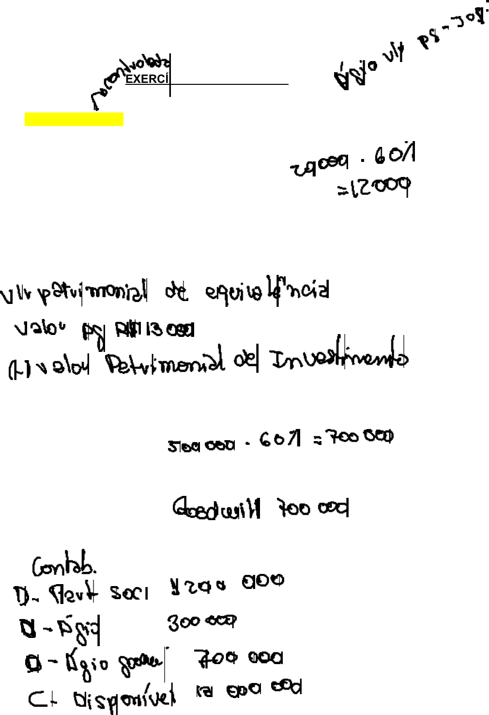 UNIVERSIDADE FEDERAL DE MATO GROSSO – FACC CIÊNCIAS CONTÁBEIS CONTABILIDADE AVANÇADA – Prof. Benedito Albuquerque UNIDADE III - ÁGIO E DESÁGIO EM INVESTIMENTOS EXERCÍCIOS PARA FIXAÇÃO 13. (CESGRANRIO/Contador/CEFET-RJ/2014) A companhia G adquiriu, por R$ 13.000.000,00, 60% das ações representativas do capital social da companhia L, com intenção de permanência. A companhia L, no mesmo dia da transação, apresentou as seguintes informações · Patrimônio Líquido Capital Social R$ 15.000.000,00 Reserva Legal R$ 3.000.000,00 Retenção de Lucros R$ 2.000.000,00 O capital social é representado somente por ações ordinárias; Ativos e Passivos estão contabilizados a valor justo Uma patente criada pela companhia, não contabilizada de acordo com as normas vigentes, é negociada, normalmente, no mercado, por R$ 500.000,00. Considerando somente as informações recebidas e que a investidora tem que adotar o método da equivalência patrimonial, o valor do ágio por rentabilidade futura a ser evidenciado no valor contábil do investimento, nos termos dos pronunciamentos contábeis em vigor (CPC), em reais, é de: a) 700.000 b) 1.000.000 c) 1.900.000 d) 2.500.000 e) 3.700.000 18. (FGV/Técnico Judiciário/TJ-GO/2014) A cia Goiás comprou 100% da Cia São Paulo e pagou à vista R$ 30.000,00. O acervo líquido da Cia São Paulo a valor contábil era de R$ 50.000,00, representado por ativos de R$ 60.000,00 e passivos de R$ 10.000,00. O acervo líquido da Cia São Paulo a valor justo era de R$ 55.000,00, representado por ativos de R$ 65.000,00 e passivos de R$ 10.000,00. Em decorrência dessa operação, a Cia Goiás contabilizou: a) R$ 25.000,00 de deságio, evidenciados no seu resultado b) R$ 5.000,00 de deságio, evidenciados no ativo intangível de seu Balanço Patrimonial; c) R$ 20.000,00 de deságio, evidenciados no seu resultado; d) R$ 5.000,00 de ágio, evidenciados no ativo intangível de seu Balanço Patrimonial e) R$ 25.000,00 de ágio, evidenciados no ativo intangível de seu Balanço Patrimonial individual. 20. (FCC/Analista de Gestão/Contabilidade/SABESP/2014) A Cia. Européia adquiriu A Cia. Europeia adquiriu 40% das ações da Cia. Sem Cheiro por R$ 5.500.000. Na data da aquisição, o Patrimônio Líquido da Cia. Sem Cheiro era R$ 6.000.000 e o valor justo líquido dos ativos e passivos identificáveis da Cia. Sem Cheiro era R$ 9.000.000. Sabendo que a Cia. Sem Cheiro, em 2013, apurou um lucro líquido de R$ 800.000 e distribuiu e pagou dividendos no valor de R$ 300.000, a Cia. Europeia reconheceu, em 2013, receita de a) equivalência patrimonial de R$ 200.000. b) dividendos de R$ 120.000. c) equivalência patrimonial de R$ 320.000. d) equivalência patrimonial de R$ 200.000 e receita de dividendos de R$ 120.000. e) equivalência patrimonial de R$ 320.000 e receita de dividendos de R$ 120.000. 21) (FCC/AFRE-RJ/2014) A Cia. Carioca adquiriu, em 31/12/2012, 40% das ações da Cia. Copa por R$ 4.500.000,00 à vista, o que lhe conferiu influência significativa na administração. Na data da aquisição, o Patrimônio Líquido da Cia. Copa era R$ 6.000.000,00 e o valor justo líquido dos ativos e passivos identificáveis desta Cia. era R$ 9.000.000,00, cuja diferença foi decorrente de um terreno que a Cia. Copa havia adquirido em 2010. No período de 01/01/2013 a 30/06/2013, a Cia. Copa reconheceu as seguintes mutações em seu Patrimônio Líquido: − Lucro líquido do semestre: R$ 400.000,00 − Ajustes de conversão de investida no exterior: R$ 100.000,00 (credor) Com base nestas informações, os valores evidenciados no Balanço Patrimonial da Cia. Carioca, em Investimentos em Coligadas, em 31/12/2012 e 30/06/2013, foram, respectivamente, (A) R$ 4.500.000,00 e R$ 4.700.000,00. (B) R$ 3.600.000,00 e R$ 3.800.000,00. (C) R$ 2.400.000,00 e R$ 2.600.000,00. (D) R$ 4.500.000,00 e R$ 4.660.000,00. (E) R$ 3.600.000,00 e R$ 3.760.000,00. Em 31/12/x10, a Cia. LUA adquire 60% do Patrimônio Líquido da Cia. SOL assumindo o controle da mesma, pagando a vista na operação R$ 1,8 milhões. Na mesma data, o Balanço Patrimonial da empresa adquirida era composto pelos seguintes elementos patrimoniais: Na mesma data, a avaliação a valor justo dos itens patrimoniais apontavam os valores a seguir: Com base nas informações fornecidas, pode-se afirmar que a realização da operação gerou: a)compra vantajosa para a investidora de R$ 60.000. b)apuração de ativo líquido no valor de R$ 3.600.000. c)deságio no valor de R$ 600.000. d)ágio por rentabilidade futura de R$ 360.000. e)perda de capital no valor de R$ 360.000. 2) Em 31/12/2016 a Cia. Calacrada adquiriu 60% das ações da Cia. Topa Tudo por R$ 9.000.000,00 à vista. Na data da aquisição o Patrimônio Líquido contábil da Cia. Topa Tudo era R$ 14.000.000,00 e o valor justo líquido dos ativos e passivos identificáveis dessa Cia. era R$ 18.000.000,00, sendo que a diferença era decorrente da avaliação a valor justo de um terreno que a Cia. Topa Tudo havia adquirido dois anos antes. No período de 01/01/2017 a 31/12/2017 a Cia. Topa Tudo reconheceu as seguintes mutações em seu Patrimônio Líquido: − Lucro líquido: R$ 500.000,00 − Distribuição de dividendos: R$ 100.000,00 − Ajustes acumulados de conversão de investida no exterior: R$ 100.000,00 (valor negativo) O valor reconhecido no Balanço Patrimonial individual da Cia. Calacrada, na conta Investimentos em Controladas, em 31/12/2016 e 31/12/2017 foram, respectivamente, a) R$ 10.800.000,00 e R$ 10.980.000,00. b) R$ 9.000.000,00 e R$ 9.180.000,00. c) R$ 10.800.000,00 e R$ 11.040.000,00. d) R$ 9.000.000,00 e R$ 9.240.000,00. e) R$ 8.400.000,00 e R$ 8.700.000,00. 2. FGV – SEFIN/RO – Contador - 2018 A Cia. XYZ, que atua no ramo de alimentos, possui 60% do capital votante e total da Cia. M, sobre a qual exerce controle, e 5% do capital da Cia. P, na qual exerce influência significativa. Ela tem a intenção de vender as ações da Cia. P, quando o