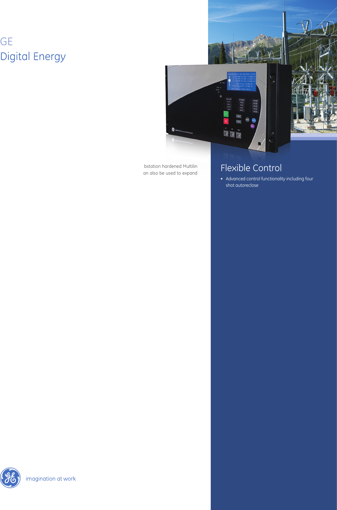 Flexible Control • Advanced control functionality including four shot autoreclose • Breaker control • Selectively enabled Synchrocheck Element - V, j, f & Hz • Up to 192 Programmable digital inputs and up to 48 digital outputs • Trip Circuit Supervision for breaker health monitoring • Extensive logic capability with high speed logic execution time Monitoring & Metering • Comprehensive breaker operation monitoring • Fault and event recorder (479 events) • High resolution oscillography and Data Logger, with programmable sampling rate • Metering: V, I, Hz, W, VA, PF • Demand: Ia, Ib, Ic, Ig, Isg, I2, MW, MVA • Configurable graphical HMI interface • Alarm Panel EnerVista Software • Sophisticated software for configuration and commissioning • LaunchPad: document and software archiving management system • EnerVista™ Integrator providing easy integration of data in the C650 into new or existing monitoring and control systems Bay Control & Monitoring System The Multilin™ C650 has been designed of electrical substations. The substation hardened Multilin C650 is designed to perform substation control and monitoring that can also be used to expand the I/O capability of protection devices. The C650 is a flexible, reliable and cost-effective solution that spans low-end MV/LV to high-end HV substation applications. Graphical programming tools, supported by a library of logic operators, make the C650 simple to use and configure. Designed with advanced communications options and detailed monitoring capabilities, the Multilin C650 provides advanced functionality, including up to 192 programmable digital inputs, control functions and flexible configuration capabilities. Key Benefits • Flexible, powerful and deterministic programmable logic suitable for creating many customized automated substation control solutions • Human machine interface (HMI), graphical LCD, programmable buttons, and easy keys for selecting setting menus, and submenus. • Modular hardware architecture allowing for flexibility in the I/O configuration to support various applications • IEEE 1588, IRIG-B and SNTP time synchronization, event reports, waveform capture, data logger simplifying post fault analysis • Advanced automation enabling customized control solutions • Reduced relay to relay wiring and associated installation costs through high-speed inter-relay communications • Simplified system integration with communications supporting serial and Ethernet interfaces and multiple protocols including IEC 61850 edition two • Increase network availability by reducing failover time to zero through IEC® 62439 PRP/HSR and IEEE® 802.1D/RSTP • Scalable solutions for I/O units (Up to 192 DI or 48 DO depending on the model) • Significant savings in installation costs with support for up to two remote CAN Bus IO modules Applications • Bay control and substation automation for solidly grounded, high impedance grounded or resonant (Peterson Coil) grounded systems • Bus blocking/Interlocking schemes • Throw over schemes (bus transfer scheme applications) • Load shedding schemes based on voltage and frequency elements or pre-defined shedding scenarios • Programmable Logic Control Multilin C650 C650 Bay Control & Monitoring System GEDigitalEnergy.com2 Substation Automation Controller GE’s C650 is a powerful, flexible and high speed control device in 650 platform, suitable for substation automation implementations. Along with a set of flexible I/O, The C650 is designed to provide high speed control functions for bay control applications. Autorecloser This function is applicable of three-pole tripping schemes and single breaker applications. Four reclosing “shots“ are possible prior to locking out , each with an independent time setting. Auto reclosure outputs can be used to modify circuit protection settings between shots. Synchronism Check The Synchrocheck element is used for monitoring the connection of two parts of the circuit by the closure of a breaker. Breaker closing can be supervised by ΔV, Δf and ΔHz setpoints. This element verifies that voltages at both sides of the breaker are within the magnitude, angle and frequency limits set by the user before closing the breaker, in order to minimize internal damage that could occur due to the voltage difference, both in magnitude and angle. Advanced Automation The C650 incorporates advanced automation features that replaces multiple devices with a single unit and includes powerful programmable logic, communications, and SCADA capabilities that far surpass what is found in the average controller relay. The C650 provides seamless integration with other GE Multilin devices for comprehensive system automation and control. C650 Logic Configuration C650 Logic Configuration is the powerful programming logic engine that provides the ability of creating customized protection and control schemes thereby minimizing the need, and the associated costs, of auxiliary components and wiring. Inputs and Outputs The C650 offers a variety of different IO configurations based on user’s need. A choice of 16 to 192 inputs, 0 to 48 outputs and two outputs with coil monitoring are available. Digital inputs may be user defined with a separate debounce and chatter time. Programmable “quasi“ analog input levels allow the use of different voltage levels in the same model via setting the requested thresholds. EnerVista™ software allows easy configuration of all the interlocking and switching sequences. A graphic HMI interface provides access to monitoring, metering and alarm panel screens. Virtual Inputs/Outputs Traditionally, relay logic has been relatively limited. Use virtual inputs and outputs in conjunction with the programmable logic capabilities of the C650 for unusual applications involving interlocks, blocking, or supervisory functions, to minimize the requirement for auxiliary components and wiring while making more complex schemes possi