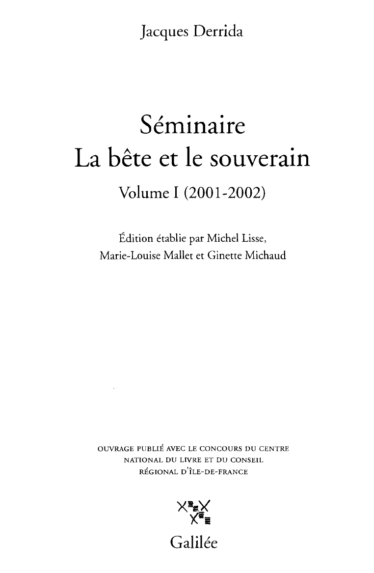 Séminaire La bête et le souverain I (2001-2002)