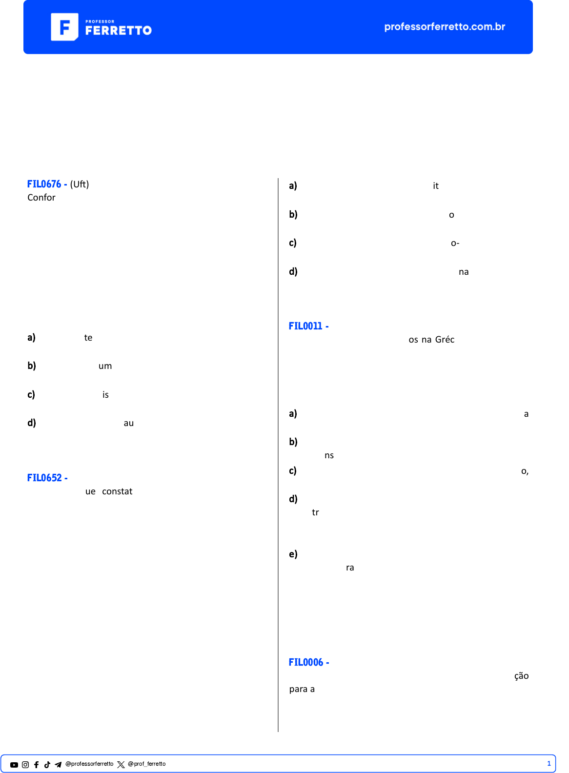 b) A filosofia é uma ciência muito an�ga iniciada por Sócrates.