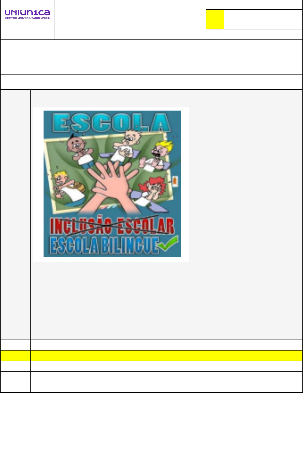 Pincel Atômico - 29/11/2024 14:17:01 1/4 STEFANI SOUSA DOMINGOS CARVALHO Exercício Caminho do Conhecimento - Etapa 6 (18053) Atividade finalizada em 25/11/2024 17:49:29 (3083032 / 1) LEGENDA Resposta correta na questão # Resposta correta - Questão Anulada X Resposta selecionada pelo Aluno Disciplina: PRÁTICA PEDAGÓGICA INTERDISCIPLINAR: DEFICIÊNCIA AUDITIVA - LIBRAS NA SALA DE AULA [1137286] - Avaliação com 8 questões, com o peso total de 1,11 pontos [capítulos - 3] Turma: Segunda Graduação: Segunda Graduação 6 Meses - Licenciatura em Educação Especial - Grupo: FPD-JUN/2024 - SGegu0A050624 [127003] Aluno(a): 91624005 - STEFANI SOUSA DOMINGOS CARVALHO - Respondeu 6 questões corretas, obtendo um total de 0,83 pontos como nota [359405_1737 67] Questão 001 (FGV – 2016) A partir da imagem, correlacione os tipos de educação listados às características educacionais apresentadas. (1) Escola Inclusiva (2) Escola Bilíngue ( ) A educação especial é responsável pelos processos educacionais dos alunos surdos. ( ) A Libras e a modalidade escrita da Língua Portuguesa são línguas de instrução utilizadas em todo o processo educativo. ( ) Os espaços previstos para a escolarização inicial devem ser organizados de forma que a Libras seja a língua de interlocução entre professores e alunos. Assinale a opção que indica a ordem CORRETA, de cima para baixo. 1 – 1 – 2. X 1 – 2 – 2. 2 – 1 – 2. 1 – 1 – 1. 2 – 2 – 2. Pincel Atômico - 29/11/2024 14:17:01 2/4 [359405_1374 77] Questão 002 Disponível em: Acesso em: 23 jul. 2020 A imagem acima representa um dos períodos mais críticos da história dos surdos: A instituição do Bilinguismo no Congresso de Milão. X A instituição do Oralismo no Congresso de Milão. A instituição da Comunicação total no Brasil e no mundo. A instituição do Oralismo, Bilinguismo e Comunicação total. A instituição do Bilinguismo com uma língua alternativa. [359406_1374 91] Questão 003 Disponível em: Acesso em: 23 jul. 2020 A partir da imagem que representa o Congresso de Milão, avalie as afirmações a seguir e assinale a alternativa CORRETA. I. Neste período o que prevaleceu foi a supremacia da concepção oralista. II. Fatores históricos e os pressupostos filosóficos, políticos e religiosos alicerçaram a supremacia da linguagem oral. III. Os pressupostos filosóficos apregoavam a oralidade como uma abstração, enquanto o gestual se manifestava como ausência de pensamento. IV. Para os religiosos a ausência da oralidade não impedia os surdos de se confessarem. Pincel Atômico - 29/11/2024 14:17:01 3/4 I e II. X I, II e III. II, III e IV. I, II, III e IV. I, III e IV. [359405_1737 62] Questão 004 (FGV – 2016) No século XVIII, um educador fundou a primeira escola pública para surdos, chamada Instituto para Jovens Surdos e Mudos de Paris, com a ajuda das próprias famílias dos alunos surdos e da sociedade, utilizando um sis-tema metódico com língua de sinais e gramática francesa sinalizada. Assinale a opção que indica o nome do educador que realizou essa ação. ? Thomas Hopkins Gallaudet. Samuel Heinicke. Eduardo Huet. X Charles Michel de L’Epée. Alexander Melville Bell. [359405_1374 78] Questão 005 Faziam parte de algumas práticas pedagógicas do oralismo, X Treinamento auditivo, criação de um ambiente linguístico apropriado e desenvolvimento da fala. Bilinguismo, desenvolvimento da fala, leitura labial. treinamento auditivo, desenvolvimento da fala, leitura labial. treinamento auditivo, educação bilíngue e multiculturalismo. comunicação total, construção de uma teoria de mundo e leitura labial. [359405_1737 60] Questão 006 FGV – 2016) Sobre o sistema linguístico da Língua Brasileira de Sinais (LIBRAS), de acordo com a Lei nº 10.436/2002, analise as afirmativas a seguir: I A Libras apresenta estrutura gramatical própria, constituindo um sistema lin-guístico de transmissão de ideias e fatos oriundos de comunidades de pessoas surdas e ouvintes do Brasil. II A Libras apresenta um sistema linguístico com estrutura gramatical própria, de natureza visual―motora, que transmite ideias e fatos oriundos de comunidades de pessoas surdas do Brasil. III O sistema linguístico da Libras é utilizado, correntemente, como meio de co- municação objetiva oriundo de comunidades de pessoas surdas e ouvintes do Brasil. Está CORRETO o que se afirma em I e II, apenas. I, II e III. I, apenas. X II, apenas. III, apenas. [359406_1374 97] Questão 007 (FGV – 2016) Com base na Lei nº 10.436/02, que dispõe sobre a Língua Brasileira de Sinais, assinale a afirmativa CORRETA. Pincel Atômico - 29/11/2024 14:17:01 4/4 A Libras deve ser ofertada como disciplina obrigatória em todos os cursos de ensino superior. X As instituições públicas que prestam serviços de assistência à saúde devem garantir o atendimento educacional ao surdo. As instituições de ensino devem, gradativamente, substituir a modalidade escrita da Língua Portuguesa pela Libras. A Língua Brasileira de Sinais não poderá substituir a modalidade escrita da Língua Portuguesa. Esta Lei recomenda a inclusão da Libras como disciplina no Ensino Fundamental para todos os alunos, surdos e ouvintes. [359405_1737 61] Questão 008 (FGV – 2016) Compreender a surdez como deficiência ou diferença depende do conceito teórico em que são concebidos. Analise as afirmativas a seguir assinalando. (1) para a visão clínica da surdez (2) para a visão sócio―antropológica da surdez. ( ) A presença de surdos adultos envolvidos na educação da criança surda como modelos culturais e linguísticos. ( ) Os sujeitos surdos são categorizados por graus de surdez dando ênfase as atividades da área da saúde. ( ) O aluno surdo pode acessar as duas línguas no contexto escolar: Libras e Língua Portuguesa na modalidade escrita. ( ) O sujeito surdo não precisa ser testado para que sua surdez seja curada, mas sim possuir uma lí