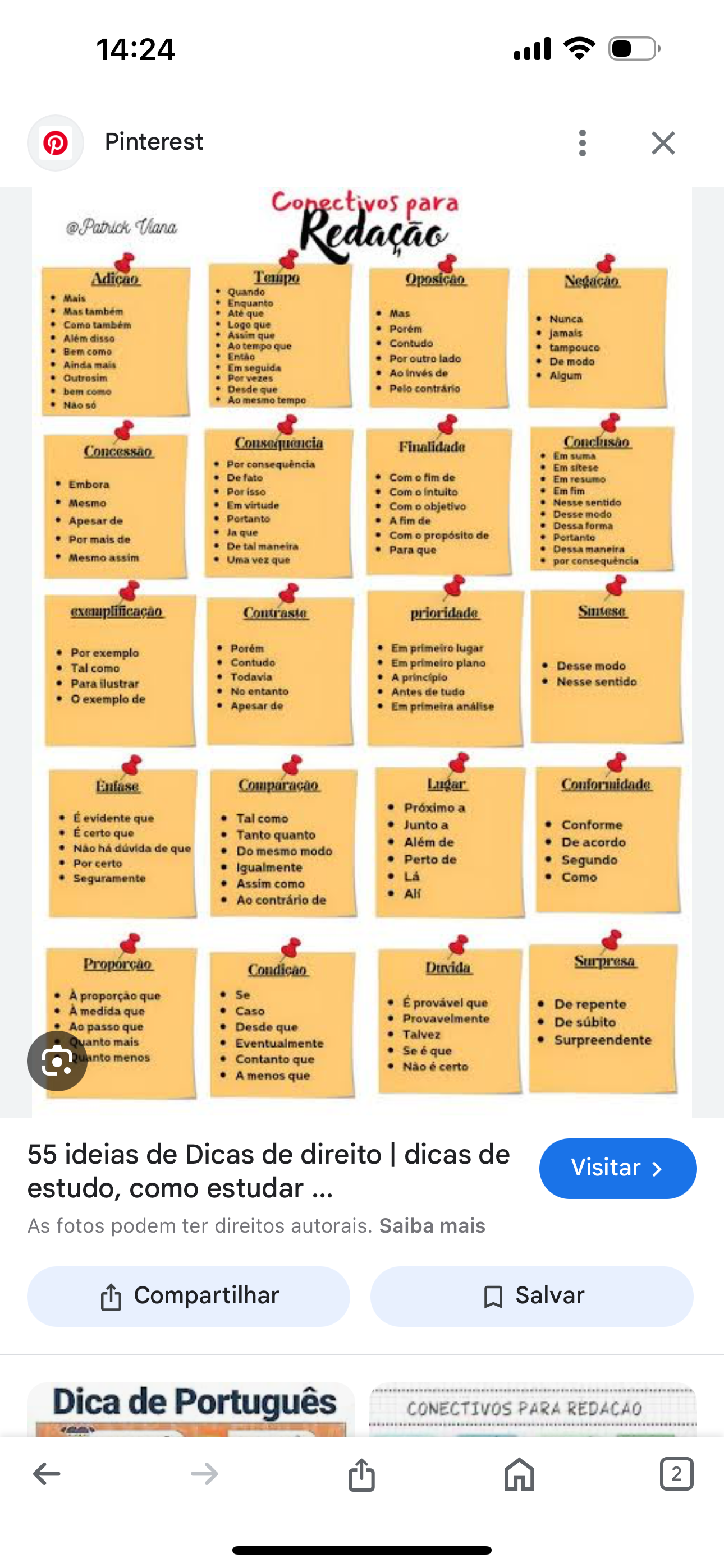 14:24 Pinterest X Conectivos para @Patrick Viana Redacao Adicao Tempo Oposican Quando Mais Enquanto Mas Até que Mas Nunca Como também Logo que Além disso Assim que Bem como Ao tempo que Contudo tampouce Então Por outro lado Ainda mais De modo Em seguida Ao de Outrosim Por vezes Algum bem como Desde que Pelo contrário Não só Ao mesmo tempo Concessão Consequencia Finalidade Conclusão Em suma Por consequência Em sitese De Com fim de Em resumo Embora Por isso Com o Em fim Mesmo Em virtude Com objetivo Nesse Desse modo Apesar de Portanto A fim de Dessa forma que Por mais de Com o propósito de Portante De tal maneira Para que Dessa maneira Mesmo assim Uma vez que por consequência exemplificação Contraste prioridade Por exemplo Porém Em primeiro lugar Contudo Tal como Em primeiro plano Desse modo Todavia Para ilustrar A Nesse sentido No entanto Antes de tudo exemplo de Apesar de Em primeira análise Lugar Conformidade Próximo a É evidente que Tal como Junto a Conforme É certo que Tanto quanto Além de De acordo Não há dúvida de que Do mesmo modo Por certo Perto de Segundo Igualmente Seguramente Lá Como Assim como All Ao contrário de Condicao Duvida Surpresa À proporção que Se É provável que À medida que Caso De repente Provavelmente Ao passo que Desde que De súbito Talvez Quanto mais Eventualmente Surpreendente Se é que menos Contanto que Não é certo A menos que 55 ideias de Dicas de direito dicas de Visitar > estudo, como estudar As fotos podem ter direitos autorais. Saiba mais Compartilhar Salvar Dica de Português CONECTIVOS PARA 2
