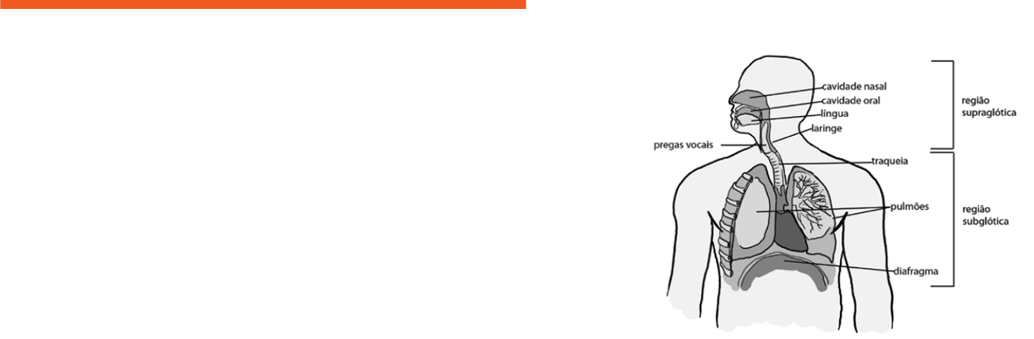 FONÉTICA E FONOLOGIA CAPÍTULO 3 - DO QUE TRATA A FONÉTICA? Clara Simone Ignácio de Mendonça INICIAR Introdução Você já pensou como a fala é produzida? Você já prestou atenção no movimento que sua boca, sua língua e seus lábios realizam para que você emita os sons da fala? Você já pensou que se não houvesse uma corrente de ar egressiva, aquela que sai dos pulmões, não haveria fala? Pois é sobre isso que vamos falar neste capítulo. A proposta desse estudo é aprofundar os conhecimentos da área da fonética. Durante o desenvolvimento desse capítulo, o estudante verá detalhes anatômicos do aparelho fonador no que se refere às estruturas responsáveis pela emissão dos sons de uma língua. Analisaremos, com mais detalhes, os sons que fazem parte da língua portuguesa, classificando-os segundo as estruturas do aparelho fonador. Veremos, também, as vogais que fazem parte da língua portuguesa, caracterizando-as, bem como as consoantes. Por fim, vamos analisar o que são pares mínimos e suas implicações no aprendizado da nossa língua. Esse capítulo se concentrará na fonética articulatória. Preparem-se para uma discussão acerca da constituição anatômica das estruturas articulatórias da face do ser humano. 3.1 A produção da fala e a fonética articulatória Nessa seção apresentaremos a você como ocorre a produção da fala. Analisaremos as estruturas anatômicas envolvidas com a produção do ato da fala, algo tão natural e característico da nossa espécie. Comecemos pelo aparelho fonador. O aparelho fonador é formado por estruturas que fazem parte de dois sistemas do corpo humano: o digestório e o respiratório. Logo, as funções primordiais desses sistemas são a digestão e a respiração, respectivamente. Devido à evolução, o homem aprendeu a utilizar alguns órgãos para realizar a fonação (LADEFOGED, 2001): Na Figura, apresentamos uma visão geral do aparelho fonador. Observe que ele está dividido em duas regiões: a subglótica e supraglótica. O ponto de divisão é a região da glote, na laringe, onde se situam as pregas vocais. Figura 1 - Visão geral do aparelho fonador. Fonte: SEARA; NUNES; LAZZAROTTO-VOLCÃO, 2015, p. 39. VOCÊ SABIA? Que os termos anatômicos podem passar por mudanças? Antigamente, as pregas vocais eram chamadas de cordas vocais. Elas eram chamadas assim por comparação aos instrumentos musicais de cordas, como os violinos, que produzem sons. Porém, os anatomistas resolveram mudar o seu nome, pois essas estruturas não são cordas, mas sim pregas dos tecidos que revestem o interior da laringe. Saiba um pouco mais sobre esse tema visitando o site: . Na Figura do aparelho fonador, podemos visualizar a região subglótica. Nela, são nomeadas três estruturas, que são aquelas que participam ativamente da fonação: o diafragma, os pulmões e a traqueia. Essas são estruturas do sistema respiratório. O diafragma é um grande músculo sob o qual os pulmões repousam e são responsáveis, junto com outros músculos, pelo movimento do pulmão de inspiração (quando ele se enche de ar) e de expiração (quando ele esvazia). Através da traqueia, que são tubos cartilaginosos, o ar entra e sai do pulmão (LADEFOGED, 2001). A fonação, que é o ato de falar, começa quando a corrente de ar é expulsa dos pulmões pela expiração. VOCÊ SABIA? Que há uma fonação que é feita com o ar ingressante no pulmão? Essa é a chamada fonação reversa. A voz resultante dessa fonação não tem projeção. Ela é utilizada na terapia vocal. Algumas patologias de voz podem utilizar dessa técnica para tratamento. Porém, é o Fonoaudiólogo que vai saber avaliar quando essa técnica pode ser utilizada. Na região supraglótica encontramos a glote e os articuladores. É na glote, uma região da laringe (Figura do aparelho fonador), o local onde se situam as pregas vocais. As pregas vocais podem assumir duas posições: abertas ou fechadas (Figura a seguir). As pregas vocais fecham durante a fonação. O ar faz com que elas vibrem quando sai dos pulmões e encontra as pregas vocais fechadas e essa vibração resulta num som, que é a voz: Na cabeça encontramos os principais articuladores, que são aquelas estruturas que se movimentam e se tocam para que os sons da fala sejam produzidos. Os articuladores envolvidos para a produção dos sons da língua portuguesa se localizam na cavidade oral. Porém, existem línguas que apresentam sons produzidos bem atrás do palato mole, quase na faringe. As estruturas que participam na realização dos sons da fala são chamadas de articuladores. Existem os articuladores fixos, ou seja, aqueles que não se movimentam, que são os dentes, os alvéolos dentais e o palato duro, e os articuladores móveis, que são os lábios, a língua, o palato mole e a mandíbula. A língua é um dos órgãos da cavidade oral mais ativo na produção dos sons de uma língua. Ela divide-se em três regiões: a ponta, o dorso e a raiz. A cavidade nasal não é um articulador e sim um ressoador, mas é muito importante na produção dos sons nasais (MENDONÇA, 2017). Figura 2 - As pregas vocais e a laringe. Fonte: OLIVEIRA, 2013. Os articuladores, como já mencionado, estão envolvidos na produção dos fones da fala. Por exemplo, para falar o fone [l] é preciso tocar com a ponta da língua na região logo atrás dos dentes, os alvéolos. Os sons da fala são classificados de acordo com os articuladores que se envolvem na sua produção e de acordo com o movimento desses articuladores. A fala é produzida com o auxílio de todas essas estruturas que apresentamos acima. Ela inicia-se com a corrente de ar que sai dos pulmões, passando pela traqueia até chegar à laringe. Lá, a pressão do ar faz vibrar as pregas vocais e o som é produzido. A onda sonora produzida na laringe (onde estão as pregas vocais) viaja, juntamente com a corrente de ar, até a cavidade oral. Lá, os sons orais vão ser moldados