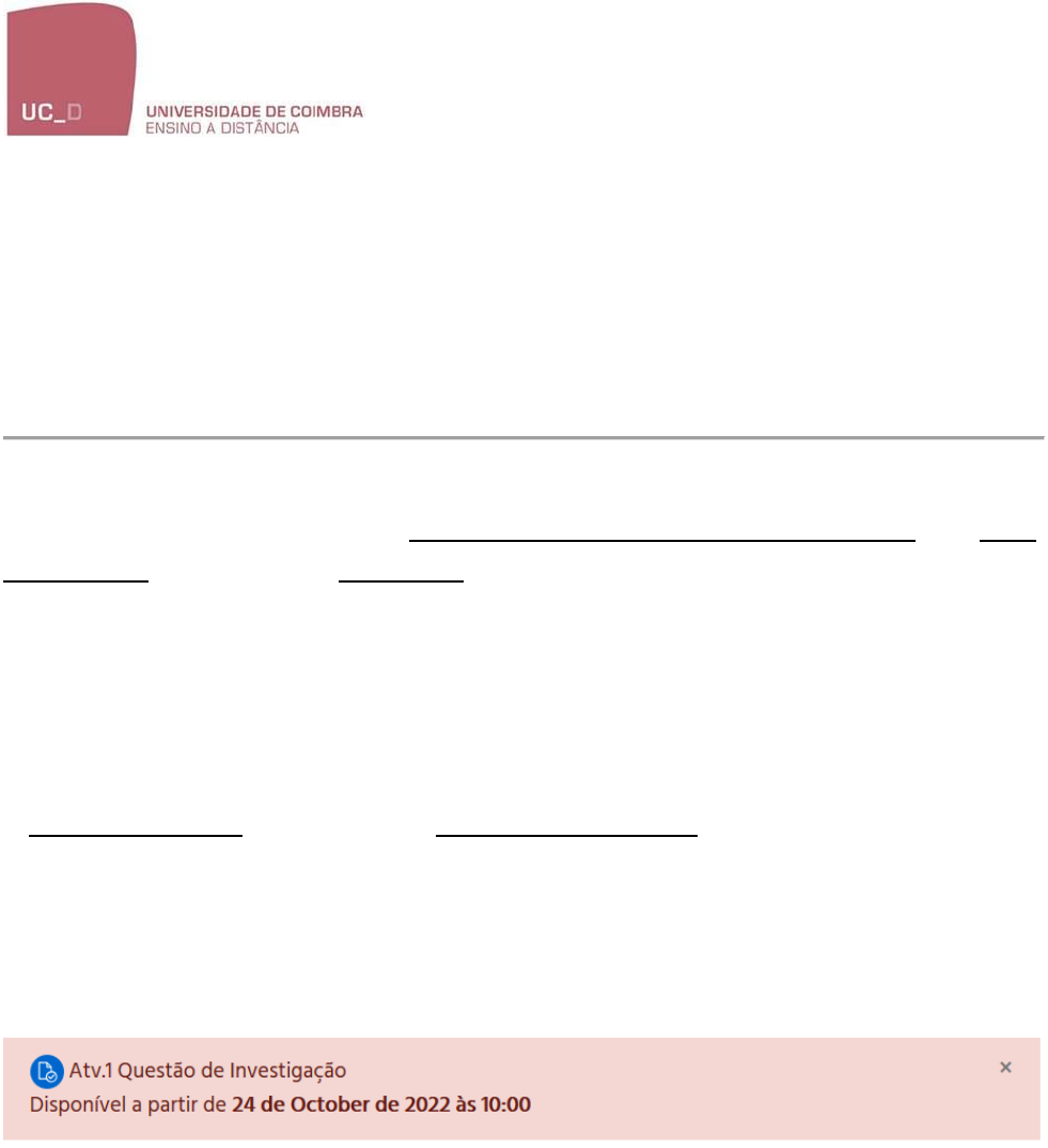 é sempre assinalada no topo da página principal, através da informação “Esta atividade encontra-