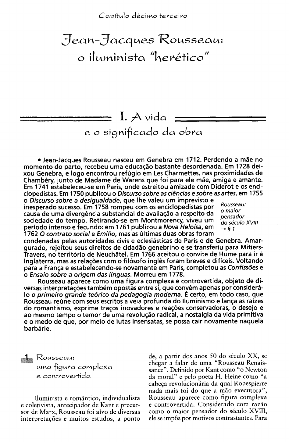 Capitdo de'cimo terceiro - Jean- Jacques R o m s e a u : o iluminista "herktico"