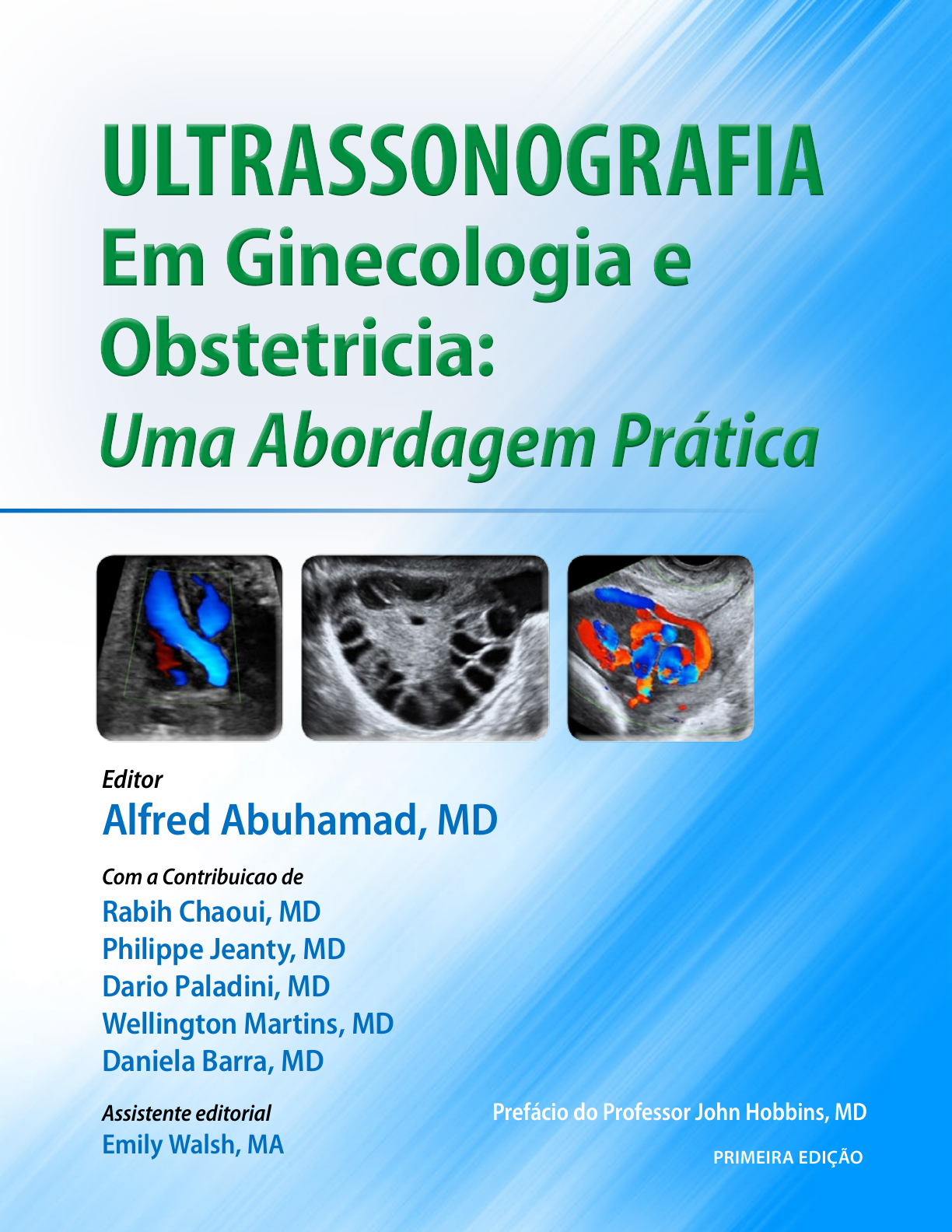 ULTRASSONOGRAFIA Em Ginecologia e Obstetricia: Uma Abordagem Prática PRIMEIRA EDIÇÃO Editor Alfred Abuhamad, MD Com a Contribuicao de Rabih Chaoui, MD Philippe Jeanty, MD Dario Paladini, MD Wellington Martins, MD Daniela Barra, MD Assistente editorial Emily Walsh, MA Prefácio do Professor John Hobbins, MD Direitos autorais © 2014 Alfred Abuhamad Todos os direitos reservados ISBN-14: 978-0-692-26142-2 2 O ultrassom foi introduzido na prática de Obstetrícia e Ginecologia mais de quatro décadas atrás, e ao longo do caminho o seu impacto tem aumentado exponencialmente a um ponto onde é raro, mesmo para uma população de baixo risco, sem complicações, a paciente não fazer pelo menos dois exames durante a gravidez; enquanto pacientes de alto risco fazem pelo menos quatro exames. O mais importante é o papel desempenhado pela ultrassonografia em momentos cruciais da tomada de decisão obstétrica e ginecológica, que agora raramente é realizado apenas pelo exame clínico. Embora a construção de uma carreira na residência em obstetrícia em ginecologia e obstetrícia representa, de longe, o passo mais impactante. Recentemente, perguntei a médicos de todo o país interessados em nosso programa de residência em medicina perinatal para avaliar o seu nível de formação em ultrassonografia dando uma nota de 1 a 10. A média foi de 3. Apenas um dos vinte e três indivíduos que entrevistei classificaram sua formação como 9. Por quê? Porque em programas de treinamento de residentes a importância do ultrassom é geralmente minimizada em favor de outras facetas da especialidade, e membros do corpo docente interessados na transmissão de conhecimentos e habilidades de ultrassom sofrem com a falta de recursos materiais sobre os conceitos básicos de ultrassonografia obstétrica e ginecológica. Sim, alunos ou diretores do programa pode facilmente encontrar alguns textos dirigidos para sistema nervoso central, coração, displasias esqueléticas, e gravidez de alto risco em geral, mas um texto que lida com os detalhes práticos desafiadores do dia-a-dia era muito difícil de ser encontrado. Até agora! Dr. Abuhamad e seus colegas apresentam um recurso que realmente preenche perfeitamente esta lacuna. Este texto aborda de forma concisa a física de ultrassom e como explorar os recursos do equipamento de hoje para otimizar cada imagem, enquanto usando métodos para assegurar que o feto seja exposto às mais baixas efeitos biológicos. Ele aborda algo tão simples como a forma de manter um transdutor de forma adequada, bem como fornecer dicas inteligentes sobre como, por exemplo, para inserir o transdutor vaginal para melhor imagem do feto em uma mulher obesa. Os autores descrevem muito bem o que o ultrassom vai permitir-nos ver em um primeiro trimestre normal, segundo trimestre, e terceiro trimestre de gravidez, bem como em um útero não gravídicos e anexos - e eles dão dicas ao longo do caminho sobre a forma de obter os itens essenciais para reunir um quadro clínico. Eles também magistralmente antecipam muitas das surpresas clínicas comuns que um ultrassonografista pode encontrar. Mais importante ainda, o texto é decorado com alguns das mais belas imagens que eu já vi em qualquer livro. Se você é um ultrassonografista que quer uma dose de reforço do conhecimento ultrassom ou um iniciante jogado de repente em uma prática clínica ultrassom pesado, ou qualquer estudante que deseja aprender mais sobre ultrassom em ginecologia e obstetrícia, este livro irá fornecer o necessário pano de fundo para ajudá-lo a se tornar um praticante mais experiente e proficiente. Eu não posso esperar para começar este nas mãos de cada um de nossos residentes e bolsistas. - John C. Hobbins, MD APRESENTAÇÃO 3 Alfred Abuhamad, MD Emily Walsh SOBRE OS AUTORES Dr. Alfred Abuhamad é professor e presidente do Departamento de Obstetrícia e Ginecologia e Vice-Reitor para Assuntos Clínicos na Eastern Virginia Medical School, Norfolk, Virginia. Dr. Abuhamad é reconhecido internacionalmente como um dos maiores especialistas em imagem em Ginecologia e Obstetrícia e em Ecocardiografia Fetal. Ele é o presidente eleito da Society of Ultrasound in Medical Education e ex-presidente do Instituto American Institute of Ultrasound in Medicine. Dr. Abuhamad estabeleceu a International Society of Ultrasound in Obstetrics and Gynecology Outreach Committee e levou várias atividades de formação ultrassom para os países em desenvolvimento. Emily Walsh trabalha na Eastern Virginia Medical School há sete anos, três destes no Departamento de Obstetrícia e Ginecologia. Ela possui um Bacharelado em Artes e Mestrado em Artes e Comunicação, com foco em mídia digital. Emily publicou em Alberta Katherine Magazine de Jacksonville, Flórida e era um contribuinte do Regent University’s The Daily Runner. Emily é também uma das fundadoras da LE Literary Services, que oferece assistência publicação e editorial aos autores. 4 Rabih Chaoui, MD Philippe Jeanty, MD Dario Paladini, MD Dr. Philippe Jeanty é um radiologista de renome mundial com vasta experiência em imagem das mulheres. Ele publicou extensivamente e autor de vários livros em ultrassom. Ele é o fundador da The Fetus.net, um site de acesso aberto que divulga informações sobre ultrassom fetal. Dr. Jeanty é considerado um especialista internacional na área de ultrassom, ele foi mentor de vários companheiros e levou cursos de educação e formação ultrassom em muitos ambientes de baixa renda. Dr. Rabih Chaoui é co-diretor do Centro de Diagnóstico Pré-Natal e Genética Humana em Berlim, Alemanha. Uma autoridade internacional líder na imagem latente fetal, Dr. Chaoui contribuiu amplamente para a literatura em imagens obstétrica e ecocardiografia fetal e desempenhou um papel importante na educação de ultra-som globalmente como o presidente da International Society of Ultrasound in Obstetrics and Gynecology’s Education Committee de 2