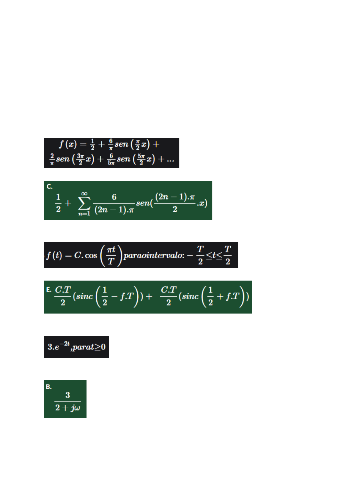 3.Calcule a transformada de Fourier para a função