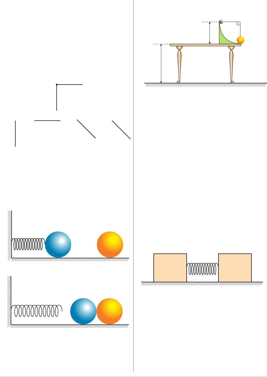 62 a) Determine a altura máxima H a que chega o carrinho dianteiro. b) Houve variação de energia mecânica do conjunto quando o rapaz empurrou o carrinho traseiro? Se houve, calcule essa variação. Se não houve, escreva “a energia mecânica se con- servou”. 468. (Uerj) Um certo núcleo atômico N, inicialmente em repouso, sofre uma desintegração radioativa, fragmentando-se em três partículas, cujos momentos lineares (quantidades de movimen- to) são: �p1, �p2 e �p3. A figura a seguir mostra os vetores que repre- sentam os momentos lineares das partículas 1 e 2, �p1 e �p2, ime- diatamente após a desintegração. O vetor que melhor representa o momento linear da partícula 3, �p3, é: a) b) c) d) 469. (UFBA) Sobre uma superfície horizontal, encontra-se uma mola de constante elástica k = 100 N/m, comprimida de 8 mm. Na sua extremidade livre, repousa uma esfera A de 10 g de massa (figu- ra I). Liberada a mola, a esfera A sofre uma colisão frontal par- cialmente elástica com outra esfera, B, de 12 g de massa, que se encontra inicialmente em repouso (figura II). Após o choque, B se desloca com velocidade de 0,6 m/s. Considera-se a mola ideal, e a resistência do ar, as forças de atrito entre as esferas e a superfície, bem como a inércia de rotação, desprezíveis. Determine, em percentagem, o coeficiente de restituição da coli- são. 470. (UFU-MG) Sobre uma mesa de altura 0,8 m, apoia-se uma rampa lisa na forma de um quadrante de circunferência de raio 0,45 m. Do ponto A da rampa, abandona-se uma partícula de massa m que vai chocar-se elasticamente com outra partícula de massa 2m em repouso no ponto B, mais baixo da rampa. Sendo g = 10 m/s2, pede-se: a) a velocidade da partícula de massa 2m ao chocar-se com o solo; b) a altura, acima do tampo da mesa, que a partícula de massa m alcança após a colisão; c) a distância entre os pontos de impacto das partículas com o solo. 471. (UEM-PR) Com velocidade constante, um caminhão se move num trecho retilíneo horizontal, sem atrito. Ele transporta, sobre a carroceria, pedras e um garoto. Se o garoto começa a arremes- sar pedras, pode-se concluir que a velocidade do caminhão, na direção inicial do movimento: a) aumenta, se as pedras forem arremessadas para trás. b) diminui, se as pedras forem arremessadas para a frente. c) diminui, se as pedras forem arremessadas verticalmente para cima. d) aumenta, se as pedras forem arremessadas lateralmente, perpendicularmente à direção do movimento do caminhão. e) permanece constante, qualquer que seja a direção em que o garoto arremessar as pedras. 472. (UFPE) Uma mola é comprimida entre um bloco de massa M = 1,0 kg e outro de massa desconhecida, Mx, conforme a figura. Os blocos estão apoiados numa superfície cujo atrito é desprezível. Após o sistema ser liberado, verifica-se que a aceleração de M é +2,0 m/s2 e a do corpo de massa desconhecida é –1,0 m/s2. Desprezando a massa da mola, calcule o valor de Mx em quilo- gramas. a) 0,2 c) 1,0 e) 2,5 b) 0,5 d) 2,0 473. (Uniube-MG) Um corpo x, de massa mx = 2,0 kg e velocidade vx = 20 m/s, chocou-se com outro corpo y, de massa my = 3,0 kg e velocidade vy = 15 m/s, que se movia na mesma direção e sentido. Após o choque, os corpos passaram a se mover juntos com velocidade, em m/s, igual a: a) 35,0. c) 18,0. e) 17,0. b) 25,5. d) 17,5. Mx M � � � � � � �p 2 N �p 1 A figura 1 B A figura 2 B A 0,45 m 0,8 m m 2 m B 63 474. (UnB-DF) O estabelecimento das ideias a respeito da gravitação universal é considerado uma das conquistas mais importantes no desenvolvimento das ciências em geral e, particularmente, da Física. A sua compreensão é fundamental para o entendi- mento dos movimentos da Lua, dos planetas, dos satélites e mesmo dos corpos próximos à superfície da Terra. Em relação a esse assunto, julgue os itens adiante. a) Para que a Lua descreva o seu movimento orbital ao redor da Terra, é necessário que a resultante das forças que atuam sobre ela não seja nula. b) Um satélite em órbita circular ao redor da Terra move-se per- pendicularmente ao campo gravitacional terrestre. c) A força gravitacional sobre um satélite sempre realiza traba- lho, independentemente de sua órbita ser circular ou elíptica. d) Um corpo, quando solto próximo à superfície terrestre, cai em direção a ela pelo mesmo motivo que a Lua descreve sua órbi- ta em torno da Terra. 475. (Fuvest-SP) Dois satélites artificiais A e B descrevem órbitas cir- culares no plano equatorial da Terra. O satélite A está a uma dis- tância RA do centro da Terra e estacionário com relação a um observador fixo em um ponto do equador da Terra. a) Esse mesmo observador vê o satélite B passar por uma mes- ma posição, numa vertical sobre ele, a cada dois dias, sempre à mesma hora. Quais os dois possíveis valores da velocidade angular de B, no referencial inercial em relação ao qual a Ter- ra gira em torno de seu eixo com um período de 24h? Expresse o resultado em rad/h. b) Calcule, em função de RA, os valores dos raios das órbitas cor- respondentes às velocidades angulares encontradas no item anterior. 476. (UFRGS-RS) Um planeta imaginário, Terra Mirim, tem a metade da massa da Terra e move-se em torno do Sol em uma órbita igual à da Terra. A intensidade da força gravitacional entre o Sol e Terra Mirim é, em comparação à intensidade dessa força entre o Sol e a Terra: a) o quádruplo. b) o dobro. c) a metade. d) um quarto. 477. (PUCC-SP) Na superfície do planeta Mercúrio, cuja massa é 3,6 · 1023 kg e cujo diâmetro vale 5,0 · 106 m, a aceleração da gravidade é de 3,9 m/s2. Se a Lua tem massa de 7,4 · 1022 kg e diâmetro de 3,4 · 106 m, a aceleração da gravidade na sua superfície, em m/s2, vale: a) 0,14. c) 1,7. e) 7,2. b) 0,30. d) 3,3. 478. (UnB-DF) A crosta terrestre, além de possuir espessura irregular, possui densidade diferente da do manto superior. Na realidade, a densida