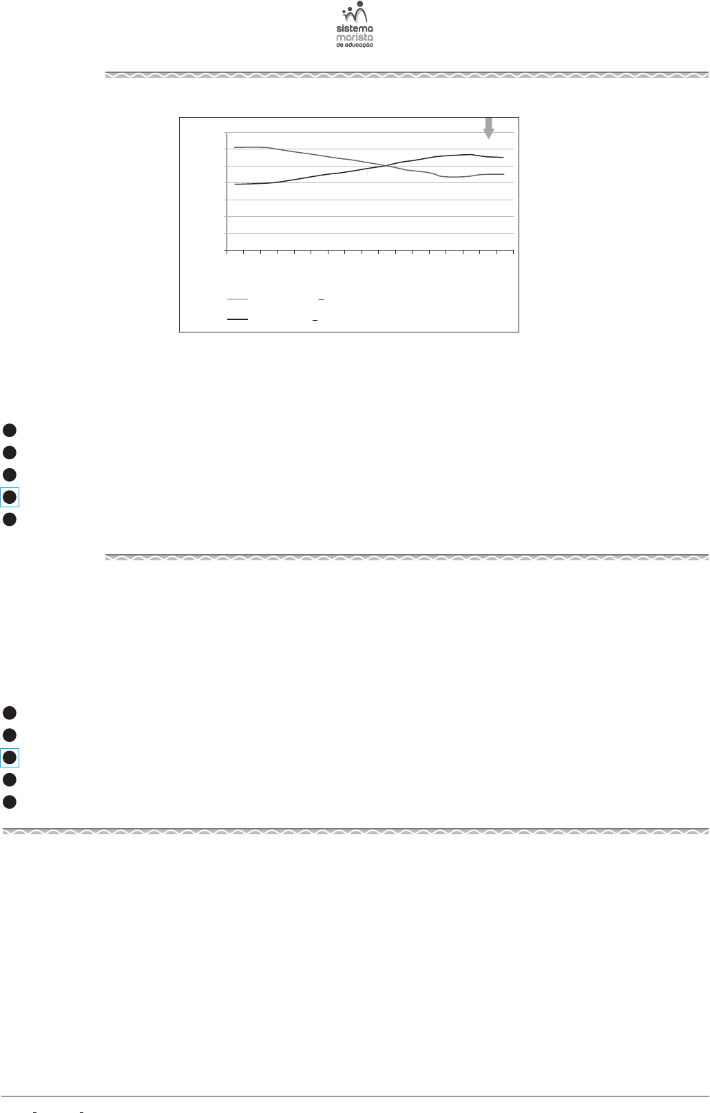 CN ‑ 2a Série | 2o Dia ‑ AmArelo ‑ Página 10 qUESTÃo 79 íNdICE dE CESARIANAS No PAíS Ilê c om un ic aç ão 60,00% 70,00% SINASC - NO DE NASCIDOS VIVOS % Vaginal SINASC - NO DE NASCIDOS VIVOS % Cesárea 50% 57% 55,5% 43% 44,5% 0,00% 20 00 20 01 20 02 20 03 20 04 20 05 20 06 20 07 20 08 20 09 20 10 20 11 20 12 20 13 20 14 20 15 20 16 10,00% 20,00% 30,00% 40,00% 50,00% Fonte: . Acesso em: 9 fev. 2018. A organização mundial da Saúde (omS) recomenda que as taxas de cesarianas não ultrapassem 15% do número de nascimen‑ tos de um país, sendo realizadas apenas nos casos em que o parto normal oferece riscos para a gestante e/ou para o bebê. No caso do Brasil, o gráfico acima sugere que o parto cesariano é um procedimento A atualmente em desuso, dada a redução de cesarianas em nosso país ao longo dos últimos anos. B bastante praticado em nosso país, dada sua maior segurança em relação ao parto normal. C cada vez menos frequente nos hospitais, o que se deve aos movimentos de humanização do parto. D ainda realizado inadvertidamente, o que expõe mulheres e bebês saudáveis a riscos desnecessários. E tão realizado quanto o parto normal, o que reflete o tipo de parto desejado pela parturiente. qUESTÃo 80 o Brasil é um dos poucos países (senão o único) que conseguiu uma alternativa muito viável e econômica para de uma só vez se ver livre de dois problemas, a dependência do petróleo como fonte de combustível e o problema da poluição dos grandes centros. em meados de 1975 […]. roSA, rogério S; meSSIAS, rossine A; AmBroZINI, Beatriz. Importância da compreensão dos ciclos biogeoquímicos para o desenvolvimento sustentável. São Carlos: Universidade de São Paulo – Instituto de Química, 2003. Disponível em: . Acesso em: 9 fev. 2018. A alternativa citada no texto refere‑se ao desenvolvimento do combustível A biodiesel, criado na década de 1970 em substituição à gasolina. B hidrogênio, desenvolvido a partir da década de 1980 em substituição aos combustíveis fósseis. C etanol, cuja produção foi incentivada para substituir parcialmente a gasolina. D biogás, obtido em biodigestores anaeróbios dispostos em lixões. E óleo de xisto, obtido do xisto betuminoso disponível em reservas no sul do país. Questão 79 Conteúdo: Tipos de parto C8 | H29 De acordo com o gráfico, é possível notar que houve um aumento nas taxas de cesarianas no Brasil, que passaram de 40% a 55% dos nascimentos no país entre os anos de 2000 e 2016. Essas taxas são ainda muito acima daquelas preconizadas pela OMS, o que sugere que o procedimento continua a ser aplicado de modo inadvertido em mulheres e bebês saudáveis, expondo-os a riscos desnecessários que são inerentes a qualquer tipo de cirurgia. Questão 80 Conteúdo: Combustíveis e poluição C6 | H23 O uso do etanol foi incentivado no Brasil na década de 1970 pelo Pró-Álcool (Programa Nacional do Álcool), para tentar reduzir a dependência das importações de petróleo e como uma alternativa menos poluente que a gasolina. D3-8016-EM-SME-CNT-MT-2S-P3.indd 10 4/12/18 2:58 PM