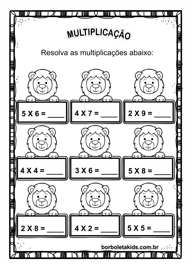 MULTIPLICAÇÃO Resolva as multiplicações abaixo: = = 2 = = = = = 4 X 2 = = borboletakids.com.br