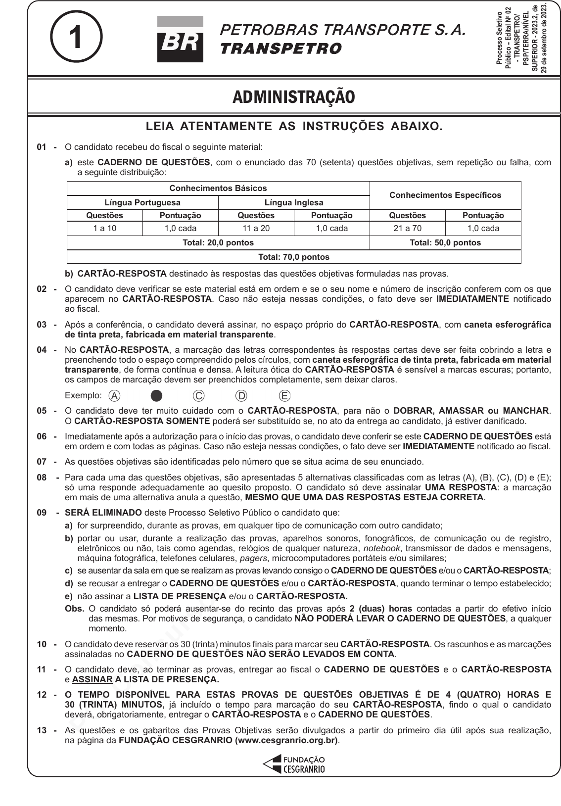 pcimarkpci MDAwMDowMDAwOjAwMDA6MDAwMDowMDAwOmZmZmY6YmIzZjo5NjY2:TW9uLCAwOSBEZWMgMjAyNCAxMTo0NTowMSAtMDMwMA== www.pciconcursos.com.br LEIA ATENTAMENTE AS INSTRUÇÕES ABAIXO. 01 - O candidato recebeu do fiscal o seguinte material: a) este CADERNO DE QUESTÕES, com o enunciado das 70 (setenta) questões objetivas, sem repetição ou falha, com a seguinte distribuição: Conhecimentos Básicos Conhecimentos Específicos Língua Portuguesa Língua Inglesa Questões Pontuação Questões Pontuação Questões Pontuação 1 a 10 1,0 cada 11 a 20 1,0 cada 21 a 70 1,0 cada Total: 20,0 pontos Total: 50,0 pontos Total: 70,0 pontos b) CARTÃO-RESPOSTA destinado às respostas das questões objetivas formuladas nas provas. 02 - O candidato deve verificar se este material está em ordem e se o seu nome e número de inscrição conferem com os que aparecem no CARTÃO-RESPOSTA. Caso não esteja nessas condições, o fato deve ser IMEDIATAMENTE notificado ao fiscal. 03 - Após a conferência, o candidato deverá assinar, no espaço próprio do CARTÃO-RESPOSTA, com caneta esferográfica de tinta preta, fabricada em material transparente. 04 - No CARTÃO-RESPOSTA, a marcação das letras correspondentes às respostas certas deve ser feita cobrindo a letra e preenchendo todo o espaço compreendido pelos círculos, com caneta esferográfica de tinta preta, fabricada em material transparente, de forma contínua e densa. A leitura ótica do CARTÃO-RESPOSTA é sensível a marcas escuras; portanto, os campos de marcação devem ser preenchidos completamente, sem deixar claros. Exemplo: 05 - O candidato deve ter muito cuidado com o CARTÃO-RESPOSTA, para não o DOBRAR, AMASSAR ou MANCHAR. O CARTÃO-RESPOSTA SOMENTE poderá ser substituído se, no ato da entrega ao candidato, já estiver danificado. 06 - Imediatamente após a autorização para o início das provas, o candidato deve conferir se este CADERNO DE QUESTÕES está em ordem e com todas as páginas. Caso não esteja nessas condições, o fato deve ser IMEDIATAMENTE notificado ao fiscal. 07 - As questões objetivas são identificadas pelo número que se situa acima de seu enunciado. 08 - Para cada uma das questões objetivas, são apresentadas 5 alternativas classificadas com as letras (A), (B), (C), (D) e (E); só uma responde adequadamente ao quesito proposto. O candidato só deve assinalar UMA RESPOSTA: a marcação em mais de uma alternativa anula a questão, MESMO QUE UMA DAS RESPOSTAS ESTEJA CORRETA. 09 - SERÁ ELIMINADO deste Processo Seletivo Público o candidato que: a) for surpreendido, durante as provas, em qualquer tipo de comunicação com outro candidato; b) portar ou usar, durante a realização das provas, aparelhos sonoros, fonográficos, de comunicação ou de registro, eletrônicos ou não, tais como agendas, relógios de qualquer natureza, notebook, transmissor de dados e mensagens, máquina fotográfica, telefones celulares, pagers, microcomputadores portáteis e/ou similares; c) se ausentar da sala em que se realizam as provas levando consigo o CADERNO DE QUESTÕES e/ou o CARTÃO-RESPOSTA; d) se recusar a entregar o CADERNO DE QUESTÕES e/ou o CARTÃO-RESPOSTA, quando terminar o tempo estabelecido; e) não assinar a LISTA DE PRESENÇA e/ou o CARTÃO-RESPOSTA. Obs. O candidato só poderá ausentar-se do recinto das provas após 2 (duas) horas contadas a partir do efetivo início das mesmas. Por motivos de segurança, o candidato NÃO PODERÁ LEVAR O CADERNO DE QUESTÕES, a qualquer momento. 10 - O candidato deve reservar os 30 (trinta) minutos finais para marcar seu CARTÃO-RESPOSTA. Os rascunhos e as marcações assinaladas no CADERNO DE QUESTÕES NÃO SERÃO LEVADOS EM CONTA. 11 - O candidato deve, ao terminar as provas, entregar ao fiscal o CADERNO DE QUESTÕES e o CARTÃO-RESPOSTA e ASSINAR A LISTA DE PRESENÇA. 12 - O TEMPO DISPONÍVEL PARA ESTAS PROVAS DE QUESTÕES OBJETIVAS É DE 4 (QUATRO) HORAS E 30 (TRINTA) MINUTOS, já incluído o tempo para marcação do seu CARTÃO-RESPOSTA, findo o qual o candidato deverá, obrigatoriamente, entregar o CARTÃO-RESPOSTA e o CADERNO DE QUESTÕES. 13 - As questões e os gabaritos das Provas Objetivas serão divulgados a partir do primeiro dia útil após sua realização, na página da FUNDAÇÃO CESGRANRIO (www.cesgranrio.org.br). Pr oc es so S ele tiv o Pú bl ico - Ed ita l N o 02 - T RA NS PE TR O/ PS P/ TE RR A/ NÍ VE L SU PE RI OR - 20 23 .2, d e 29 d e s et em br o de 20 23 . ADMINISTRAÇÃO 1 pcimarkpci MDAwMDowMDAwOjAwMDA6MDAwMDowMDAwOmZmZmY6YmIzZjo5NjY2:TW9uLCAwOSBEZWMgMjAyNCAxMTo0NTowMiAtMDMwMA== www.pciconcursos.com.br PROVA 1 - ADMINISTRAÇÃO 2 TRANSPETRO TERRA CONHECIMENTOS BÁSICOS LÍNGUA PORTUGUESA À moda brasileira Estou me vendo debaixo de uma árvore, lendo a pequena história da literatura brasileira. Olavo Bilac! – eu disse em voz alta e de repen- te parei quase num susto depois que li os primeiros versos do soneto à língua portuguesa: Última flor do Lácio, inculta e bela / És, a um tempo, esplendor e sepultura. Fiquei pensando, mas o poeta disse sepultura?! O tal de Lácio eu não sabia onde ficava, mas de se- pultura eu entendia bem, disso eu entendia, repen- sei baixando o olhar para a terra. Se escrevia (e já escrevia) pequenos contos nessa língua, quer dizer que era a sepultura que esperava por esses meus escritos? Fui falar com meu pai. Comecei por aquelas minhas sondagens antes de chegar até onde que- ria, os tais rodeios que ele ia ouvindo com paciência enquanto enrolava o cigarro de palha, fumava nessa época esses cigarros. Comecei por perguntar se mi- nha mãe e ele não tinham viajado para o exterior. Meu pai fixou em mim o olhar verde. Viagens, só pelo Brasil, meus avós é que tinham feito aque- las longas viagens de navio, Portugal, França, Itália... Não esquecer que a minha avó, Pedrina Perucchi, era italiana, ele acrescentou. Mas por que essa curio- sidade? Sentei-me ao lado dele, respirei fundo e comecei a gaguejar, é que seria t