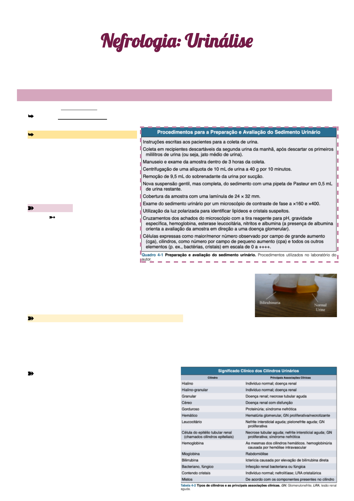 ➥ Método QUALITATIVO , análise macroscópica da urina, elementos anormais, sedimento urinário;