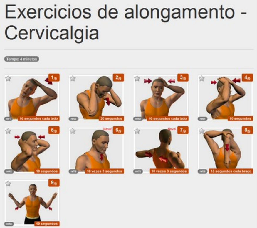 Orientações para coluna cervical (pescoço): Músculos principais para fortalecer: Ombros e Costas: Trapézio (superior, médio e inferior) + Manguito Rotador Comece com um peso que permita 8 repetições e progrida para 10 repetições (pode iniciar somente com o peso do membro, sem peso) À medida que o exercício se torna mais fácil, adicione peso em incrementos de 1 quilo. Cada vez que você aumentar o peso, comece novamente às 8 repetições, trabalhando até 10. Orientações para coluna Torácica (central das costas): Músculos principais para fortalecer: Abdômen e Costas: Transverso e Reto do Abdomên, Oblíquos e Paravertebrais Comece com um peso que permita 8 repetições e progrida para 10 repetições (pode iniciar somente com o peso do membro, sem peso) À medida que o exercício se torna mais fácil, adicione peso em incrementos de 1 quilo. Cada vez que você aumentar o peso, comece novamente às 8 repetições, trabalhando até 10. Exercícios posturais e alongamentos: Orientações para coluna lombar (quadril): Músculos principais para fortalecer: Abdômen + Glúteos + Coxas: Reto e Transverso abdominal Abdutores, Adutores e Rotadores de quadril Extensores + Flexores de Quadril e Joelhos Comece com um peso que permita 8 repetições e progrida para 10 repetições (pode iniciar somente com o peso do membro, sem peso) À medida que o exercício se torna mais fácil, adicione peso em incrementos de 1 quilo. Cada vez que você aumentar o peso, comece novamente às 8 repetições, trabalhando até 10. A. Exercício ostra com elástico 4x10 B. Ponte com elevação unilateral 4x 10 (elevação pélvica) (com contração abdominal e estabilização do quadril/ sem rotacionar) C. D. Extensão de quadril em 3 apoios 4x 10 As mãos apoiadas no solo e um joelho também, estenda uma perna para cima, este exercício pode ser feito com a perna esticada ou com o joelho dobrado . E. Passada lateral com minibanda - Uma posição de agachamento, dar pequenos passos para os lados, mantendo os dedos dos pés apontados para a frente, alternância de contrações concêntricas e excêntricas pelos lados do quadril, ou seja, enquanto uma contrai o outro lado “freia” o movimento ao se deslocar. Abdução de quadril · Ou Abdução de quadril no cross Adução de quadril · Ou Adução de quadril no cross Agachamentos com moderação (3 ou 4 séries de 10 repetições) Extensores e Flexores (3 ou 4 séries de 10 repetições) Alongamentos orientados: Joelho no peito Músculos principais trabalhados: glúteo máximo, glúteo médio Você deve sentir esse alongamento em suas nádegas. Alongamento posterior de coxa Músculos principais trabalhados: Isquiotibiais Você deve sentir esse alongamento na parte de trás da coxa e atrás do joelho. Autoliberação miofascial: Consiste em manobras lentas e contínuas que aplicam pressão em certos pontos do corpo, que podem ser feitas com rolos de espuma, bastões, bolinhas de tênis e até com as mãos. A liberação diminui a tensão na fáscia e dá fim aos sintomas, além de melhorar a flexibilidade, a mobilidade articular, a circulação sanguínea e o rendimento nas atividades físicas. image6.jpeg image7.jpeg image8.jpeg image9.jpeg image10.jpeg image11.png image12.jpeg image13.jpeg image14.jpeg image15.jpeg image16.jpeg image17.jpeg image18.jpeg image1.emf image2.jpeg image3.emf image4.emf image5.png