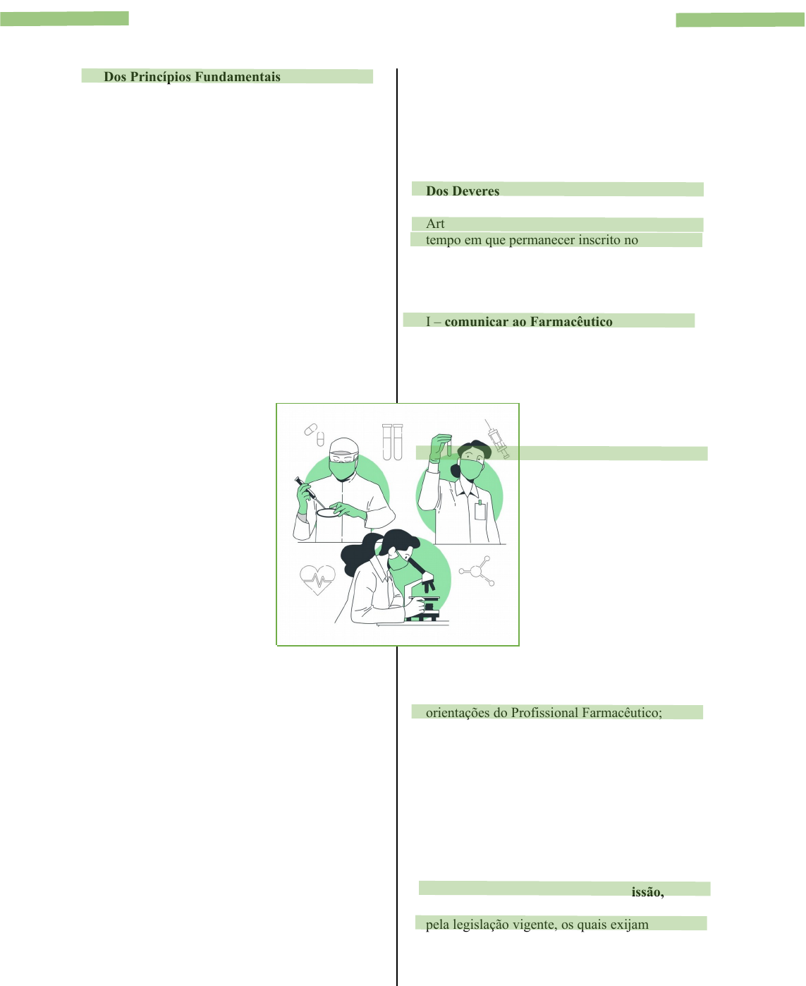 Ética no Laboratório de Análises Clínicas Dos Princípios Fundamentais Art. 1º - O exercício da profissão de técnico de laboratório, como todo exercício profissional, tem uma dimensão ética que é regulada por este código e pelos diplomas legais em vigor, cuja transgressão resultará em sanções disciplinares por parte do Conselho Regional de Farmácia, após apuração pela sua Comissão de Ética, independentemente das penalidades estabelecidas pelas leis do País. Art. 2° - O técnico de laboratório atuará sob a supervisão do profissional farmacêutico, em benefício à vida humana e ao meio ambiente. Art. 3° - A dimensão ética do profissional técnico de laboratório é determinada, em todos os seus atos, pelo benefício ao ser humano, à coletividade e ao meio ambiente, sem qualquer discriminação. Art. 4º - Os técnicos de laboratório respondem pelos atos que praticarem no exercício de sua profissão. Art. 5° - Para que possa exercer a profissão de técnico de laboratório com honra e dignidade, o técnico de laboratório deve dispor de boas condições de trabalho e receber justa remuneração por seu desempenho. Art. 6° - Cabe ao técnico de laboratório zelar pelo perfeito desempenho ético e profissional a fim de manter prestígio e bom conceito da profissão. Art. 7° - O técnico de laboratório deve manter atualizados os seus conhecimentos técnicos e científicos para aperfeiçoar, de forma contínua, o desempenho de sua atividade profissional. Art. 8° - Em seu trabalho, o técnico de laboratório não pode se deixar explorar por terceiros, seja com objetivo de lucro, seja com finalidade política ou religiosa. Art. 9° - O técnico de laboratório deve cumprir as disposições legais que disciplinam a prática profissional no País, estando sujeito às sanções descritas no art. 17 do Título IV, Capítulo V, deste Código. CAPÍTULO II Dos Deveres Art. 10º - O técnico de laboratório, durante o tempo em que permanecer inscrito no Conselho Regional de Farmácia, independentemente de estar ou não no exercício efetivo da profissão, deve: I – comunicar ao Farmacêutico Responsável Técnico, de maneira formal, com discrição e fundamento, fatos que caracterizem infringência a este Código e às normas que regulam o exercício das práticas laboratoriais; Quando necessário, poderá comunicar o fato diretamente ao CRF, desde que dê conhecimento prévio ao farmacêutico; II – colocar seus serviços profissionais à disposição das autoridades constituídas, se solicitado, em caso de conflito social interno, catástrofe ou epidemia, independentemente de haver ou não remuneração ou vantagem pessoal; III – exercer a profissão sempre respeitando as orientações do Profissional Farmacêutico; IV - comunicar ao Conselho Regional de Farmácia e às autoridades sanitárias a recusa ou a demissão de cargo, função ou emprego, motivada pela necessidade de preservar os legítimos interesses de sua profissão, do farmacêutico, da sociedade ou da saúde pública; V – guardar sigilo de fatos que tenha conhecimento no exercício da profissão, excetuando-se os de dever legal, amparados pela legislação vigente, os quais exijam comunicação, denúncia ou relato a quem de direito; VI – respeitar a vida humana, jamais cooperando com atos que intencionalmente atentem contra ela ou que coloquem em risco sua integridade física ou psíquica; CAPÍTULO III Das Proibições Art. 11º - É proibido ao Técnico de Laboratório de Análises Clínicas: I – participar de qualquer tipo de experiência em ser humano, com fins bélicos, discriminatórios, ou em que se constate desrespeito a algum direito inalienável do ser humano; II – desrespeitar as orientações dos profissionais farmacêuticos; III – praticar procedimento que não seja reconhecido pelo Conselho Federal de Farmácia; IV – praticar ato profissional que cause danos físicos, morais ou psicológicos ao usuário do serviço, que possa ser caracterizado como imperícia, negligência ou imprudência; V – realizar ou participar de atos fraudulentos relacionados à profissão em todas as suas áreas de abrangência; Art. 12º - Quando atuante no serviço público, é vedado ao técnico de laboratório: I - utilizar-se do serviço ou cargo público para executar trabalhos de empresa privada de sua propriedade ou de outrem, como forma de obter vantagens pessoais; II – cobrar ou receber remuneração do usuário do serviço; CAPÍTULO V Da Publicidade e dos Trabalhos Científicos Art. 13º - É vedado ao Técnico de Laboratório de Análises Clínicas: I – divulgar assunto ou descoberta de conteúdo inverídico; II – publicar em seu nome trabalho científico do qual não tenha participado ou atribuir-se autoria exclusiva quando houver participação de outros profissionais; III - utilizar-se, sem referência ao autor ou sem a sua autorização expressa, de dados ou informações, publicados ou não; IV – participar de pesquisa sem a supervisão do profissional farmacêutico; V – deixar de seguir as orientações do profissional farmacêutico. CAPÍTULO V Dos Direitos Art. 14º - São direitos do Técnico de Laboratório de Análises Clínicas: I – exercer a profissão sem ser discriminado por questões de religião, raça, gênero, nacionalidade, cor, idade, condição social, opinião política ou de qualquer outra natureza; II – interagir com os demais profissionais de saúde, quando necessário, em atividades devidamente descritas pelos procedimentos operacionais aprovados pelo farmacêutico responsável técnico do serviço. III - recusar-se a exercer a profissão em instituição pública ou privada onde não existam condições dignas de trabalho ou existam condições que possam prejudicar o usuário. TÍTULO II Das Relações Profissionais Art. 15° – O técnico de laboratório, perante seus colegas e demais profissionais da equipe de saúde, deve comprome