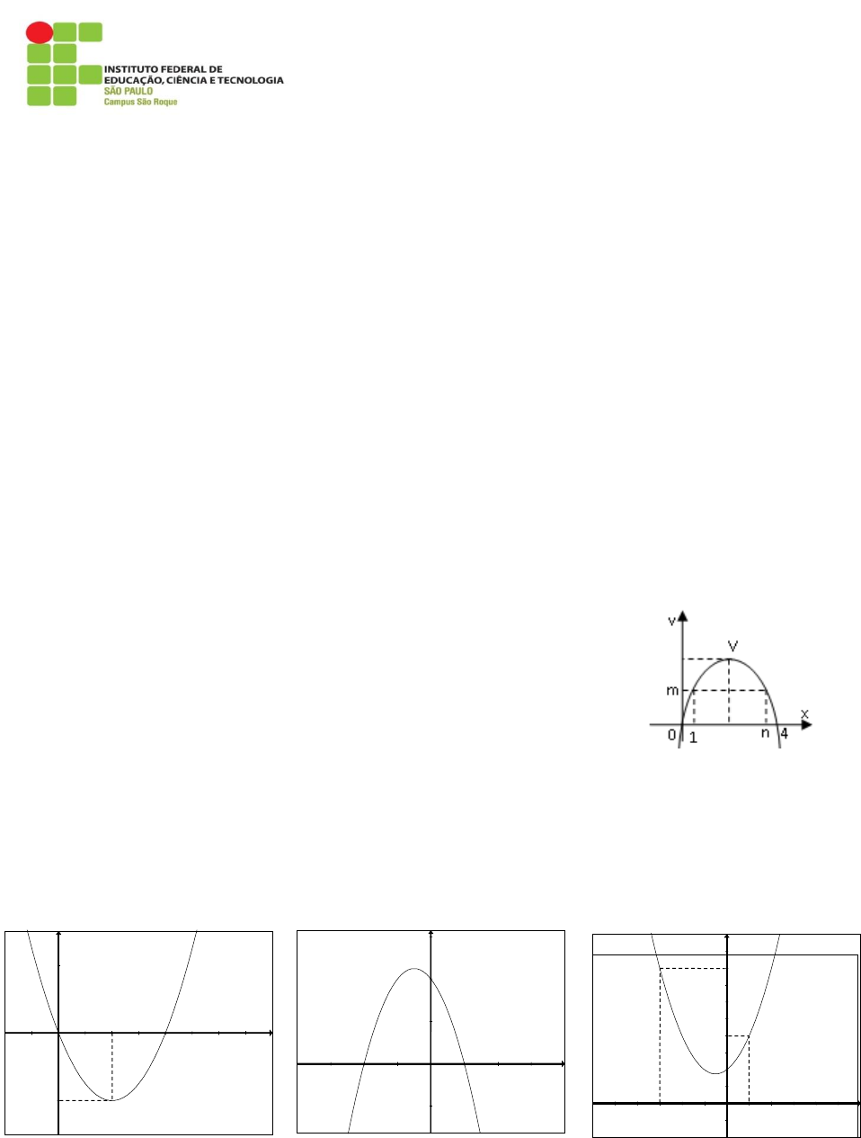 Disciplina: Matemática – 3º ano Profa.: Márcia de Oliveira Cruz x y -3 0 1 2 4 8 Exercícios: função do 2º grau 1. Quando uma pedra é abandonada em queda livre (sem considerar-se a resistência do ar ao movimento), a distância vertical d que ela percorre em queda é diretamente proporcional ao quadrado do tempo t de queda, ou seja, d = kt2. Observando-se que após 1 segundo de queda a pedra caiu 4,9 metros, pergunta-se: a) qual o valor da constante de proporcionalidade k? b) qual a distância vertical percorrida após 5 segundos? c) quanto tempo a pedra levará para cair 49m? 2. Construa o gráfico, identifique os pontos notáveis e dê o conjunto imagem das seguintes funções reais: a) f (x) = x² - 3x + 2 b) y = x² - 5x + 4 c) y = -x² + 7x - 12 3. Determine m sabendo que o vértice da parábola y = x² + 8x + m é o ponto (-4, 13). 4. Ao lado está representado o gráfico da função f(x) = - x2 + 4x. a) Quais são as coordenadas do ponto V, vértice da parábola? b) Quais são os valores de m e n, indicados na figura? 5. Determine b e c em f(x) = - x² + bx +c, sabendo que f(1) = 11 e f(-1) = 5. 6 Determine a expressão algébrica da função do 2º grau representada pelos seguintes gráficos: Gráfico 1 Gráfico 2 Gráfico 3 x y 0 2 4 -4 x y -4 0 2 8 7. O gráfico ao lado representa o Rendimento bruto R(q) de uma empresa em função da quantidade q de produtos fabricados mensalmente. Os valores de R são expressos em milhares de reais e a quantidade produzida q em milhares de unidades, e sabe-se que a curva representada é uma parábola. A partir das informações contidas no gráfico, responda: a) Qual é a expressão algébrica da função R(q)? b) Qual Rendimento bruto máximo? c) Qual a quantidade produzida que maximiza o Rendimento bruto da empresa? d) Qual o Rendimento bruto que a empresa obtém para a produção de 15.000 unidades? E de 20.000 unidades? Como interpretar este último resultado? 8. Enem 2013 – A temperatura T de um forno (em graus centígrados) é reduzida por um sistema a partir do instante de seu desligamento (t = 0) e varia de acordo com a expressão T(t) = – 𝑡2 4 + 400, com t em minutos. Por motivos de de segurança, a trava do forno só é liberada para abertura quando o forno atinge a temperatura de 39°C. Qual o tempo mínimo de espera, em minutos, após se desligar o forno, para que a porta possa ser aberta? a) 19,0 b) 19,8 c) 20,0 d) 38,0 e) 39,0 Solução: https://youtu.be/YH15J1JUr4c 9. Enem 2017 – 1ª Azul – 168 (M) A Igreja de São Francisco de Assis, obra arquitetônica modernista de Oscar Niemeyer, localizada na Lagoa da Pampulha, em Belo Horizonte, possui abóbadas parabólicas. A seta na Figura 1 ilustra uma das abóbadas na entrada principal da capela. A Figura 2 fornece uma vista frontal desta abóbada, com medidas hipotéticas para simplificar os cálculos. Qual a medida da altura H, em metro, indicada na Figura 2? a) 16/3 b) 31/5 c) 25/4 d) 25/3 e) 75/2 Resposta: D 10.Enem 2017 – 1ª Azul – 161 (M) Viveiros de lagostas são construídos, por cooperativas locais de pescadores, em formato de prismas reto- retangulares, fixados ao solo e com telas flexíveis de mesma altura, capazes de suportar a corrosão marinha. Para cada viveiro a ser construído, a cooperativa utiliza integralmente 100 metros lineares dessa tela, que é usada apenas nas laterais. Quais devem ser os valores de X e de Y, em metro, para que a área da base do viveiro seja máxima? a) 1 e 49 b) 1 e 99 c) 10 e 10 d) 25 E 25 e) 50 E 50 Resposta: D 11. Enem 2016 – 2ª Azul – 161 (M) TAGs: Perímetro, área de figuras planas. Dispondo de um grande terreno, uma empresa de entretenimento pretende construir um espaço retangular para shows e eventos, conforme a figura. A área para o público será cercada com dois tipos de materiais: • nos lados paralelos ao palco será usada uma tela do tipo A, mais resistente, cujo valor do metro linear é R$ 20,00; • nos outros dois lados será usada uma tela do tipo B, comum, cujo metro linear custa R$ 5,00. A empresa dispõe de R$ 5 000,00 para comprar todas as telas, mas quer fazer de tal maneira que obtenha a maior área possível para o público. A quantidade de cada tipo de tela que a empresa deve comprar é a) 50,0 m da tela tipo A e 800,0 m da tela tipo B. b) 62,5 m da tela tipo A e 250,0 m da tela tipo B. c) 100,0 m da tela tipo A e 600,0 m da tela tipo B. d) 125,0 m da tela tipo A e 500,0 m da tela tipo B. e) 200,0 m da tela tipo A e 200,0 m da tela tipo B. Resposta: D